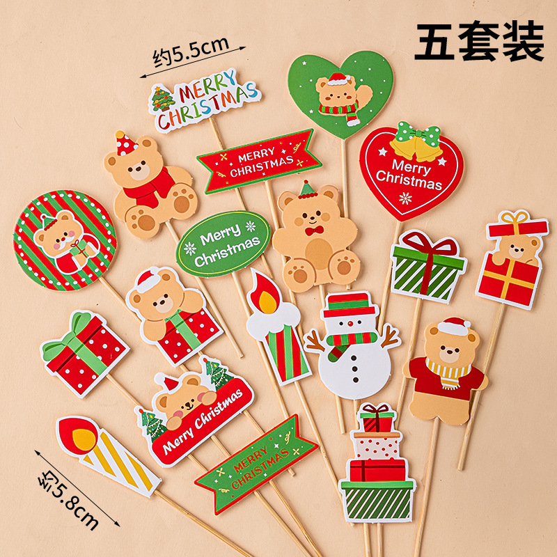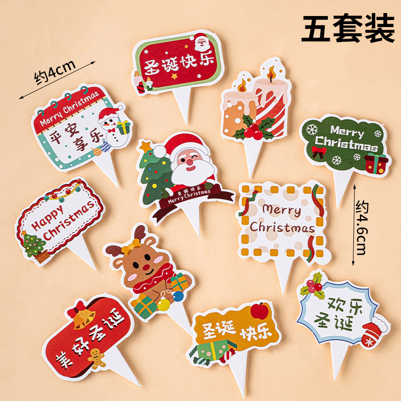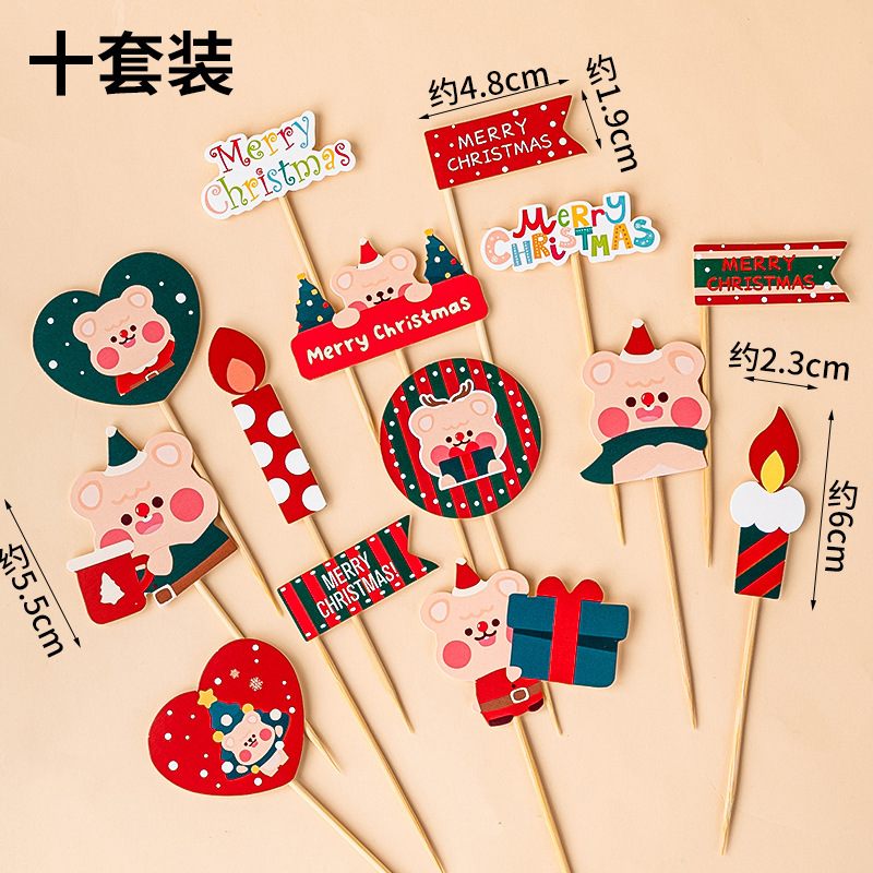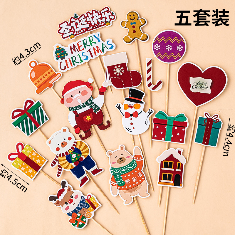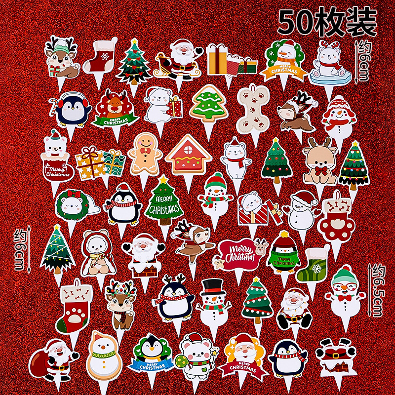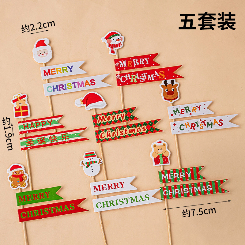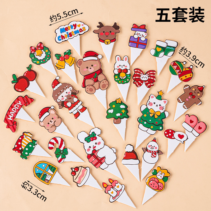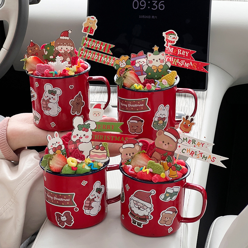 2025圣诞节网红搪瓷杯蛋糕装饰小熊小兔圣诞快乐小旗烘焙贴纸插件