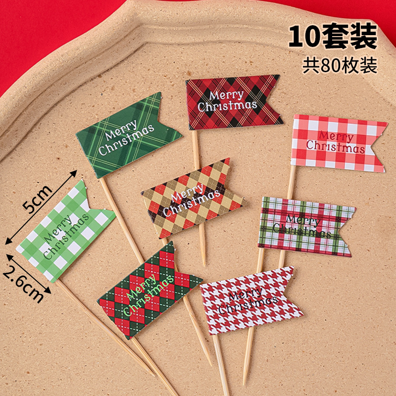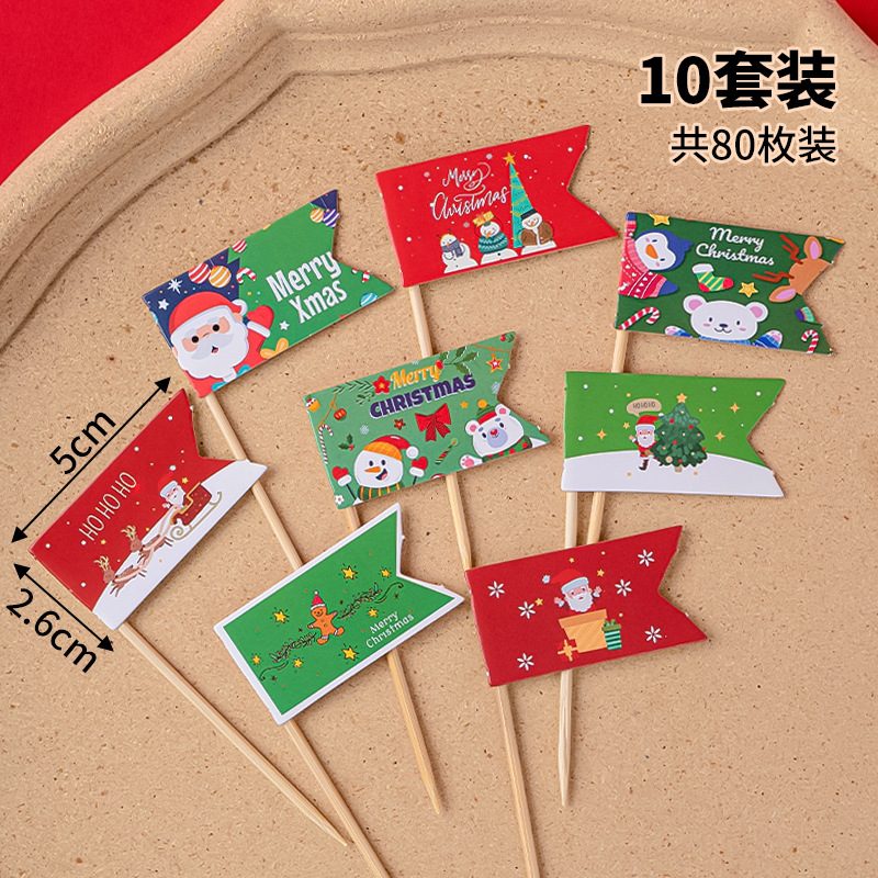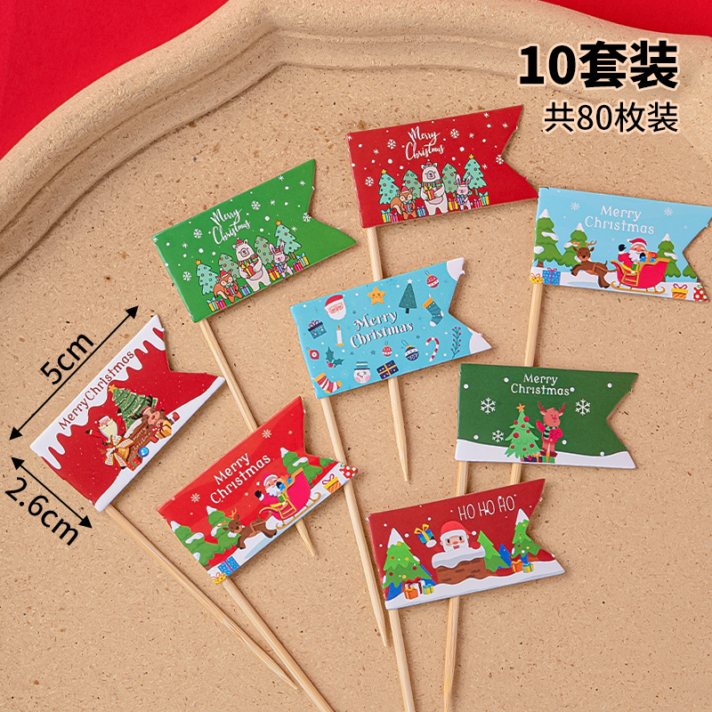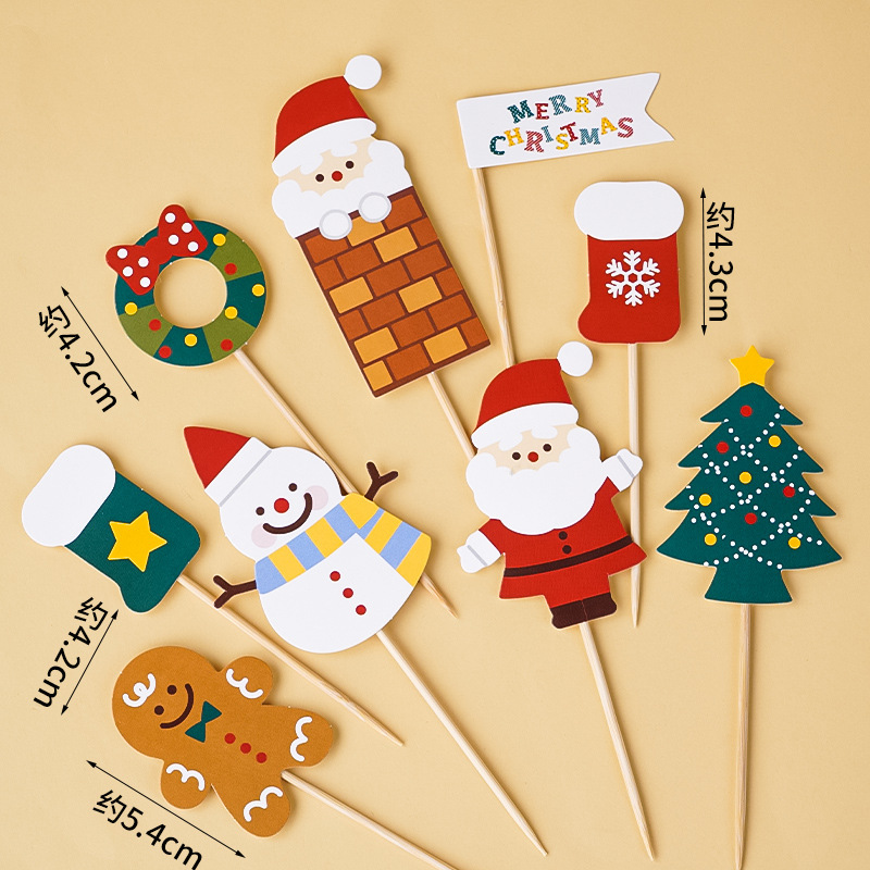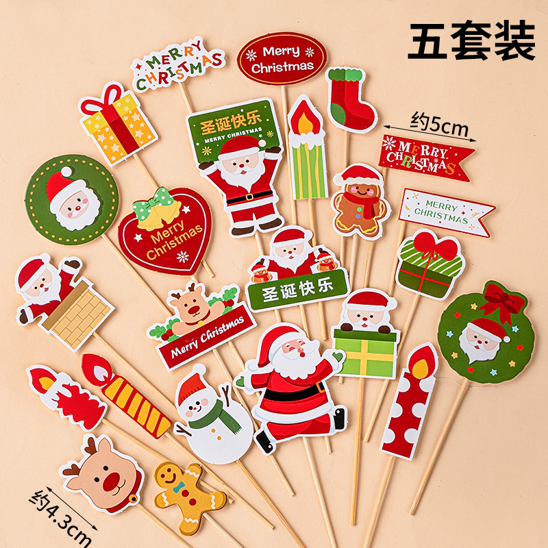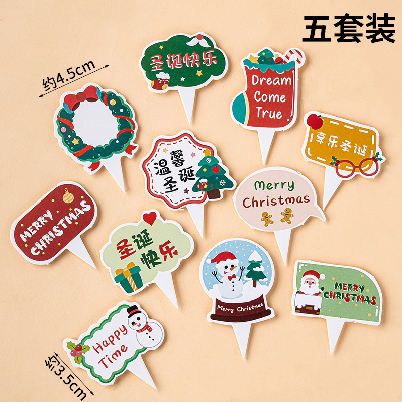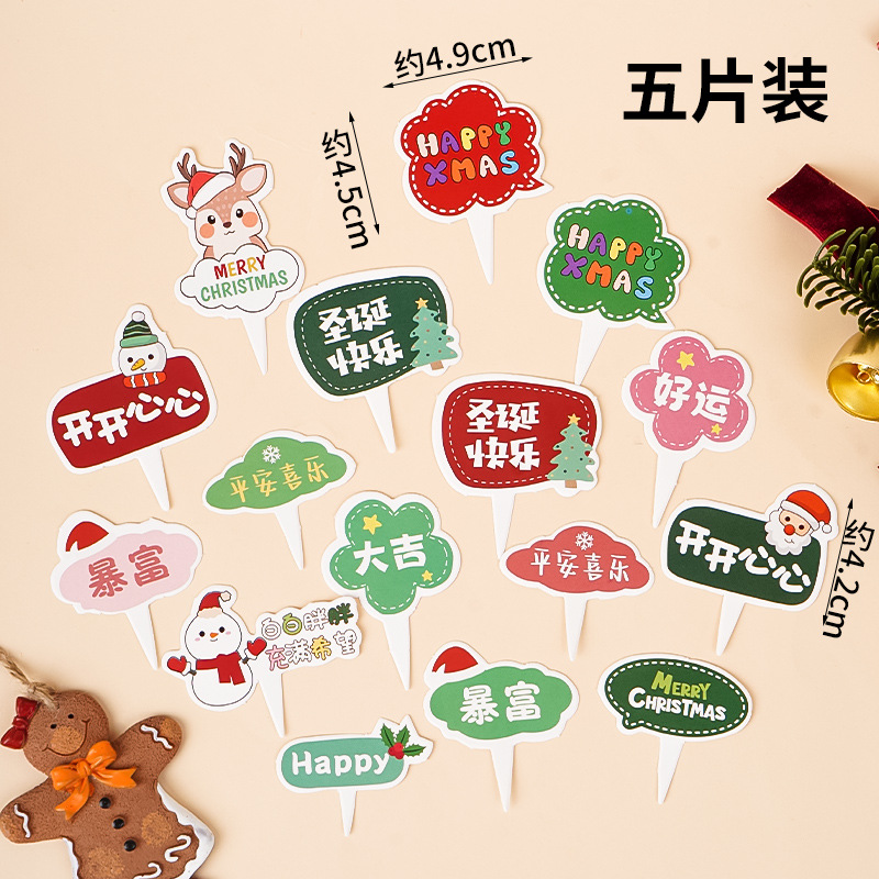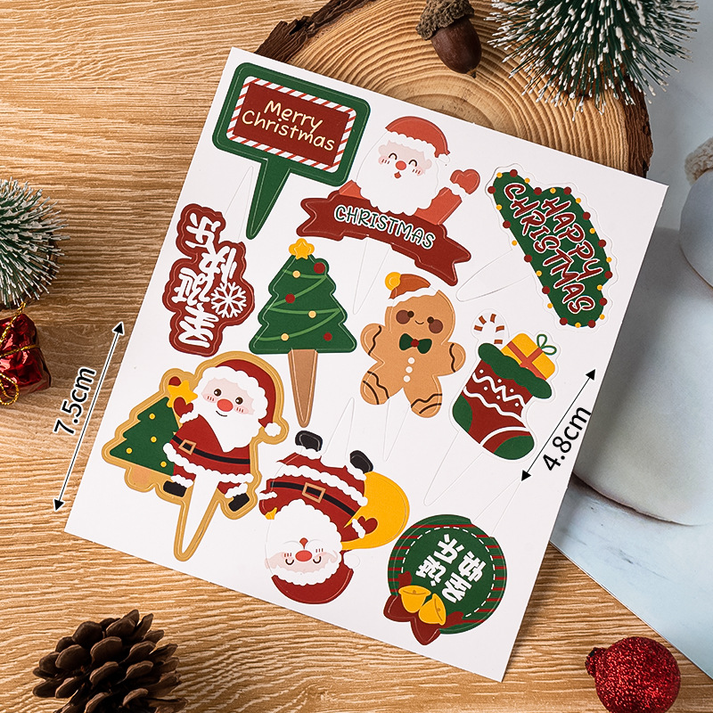 2025圣诞节网红搪瓷杯蛋糕装饰小熊小兔圣诞快乐小旗烘焙贴纸插件