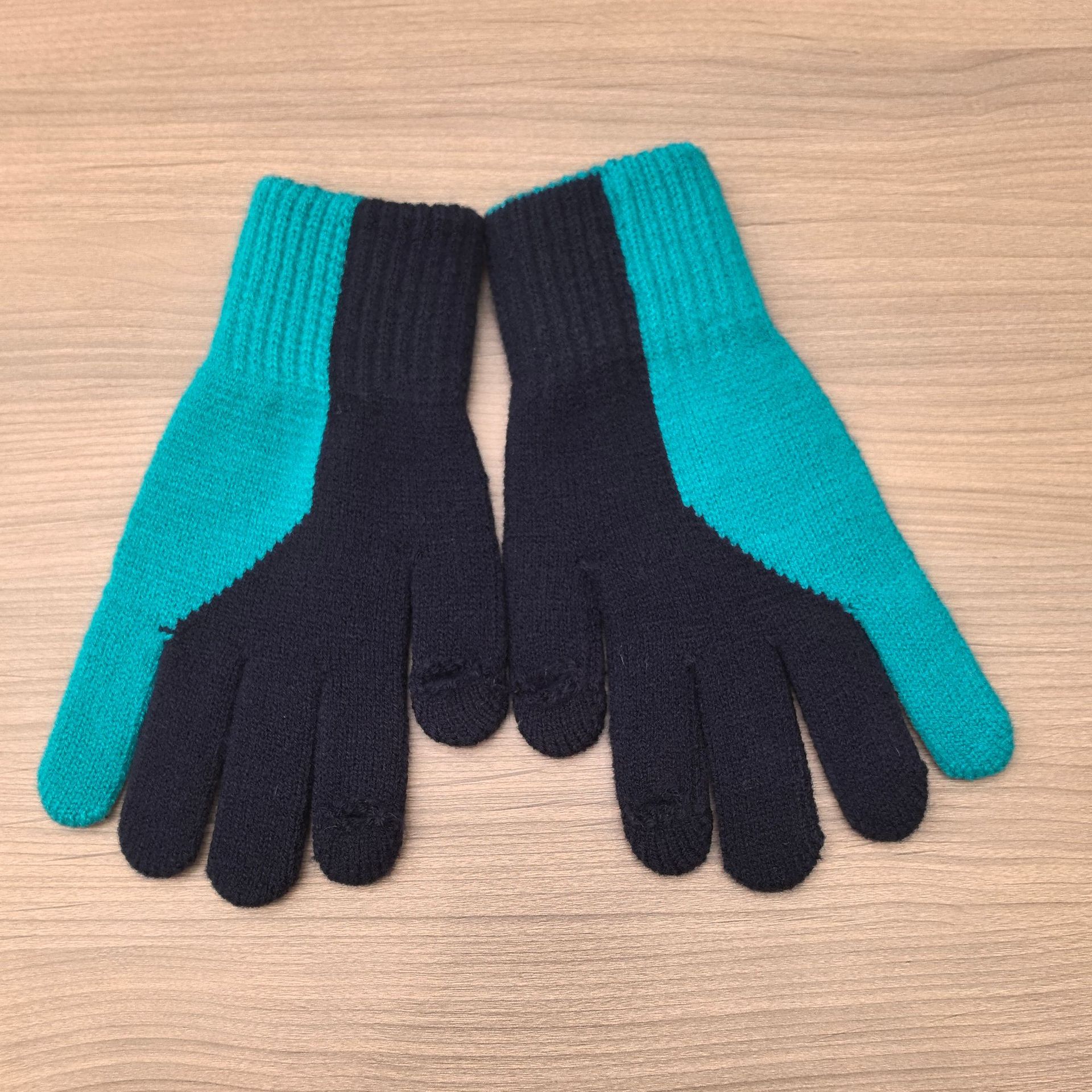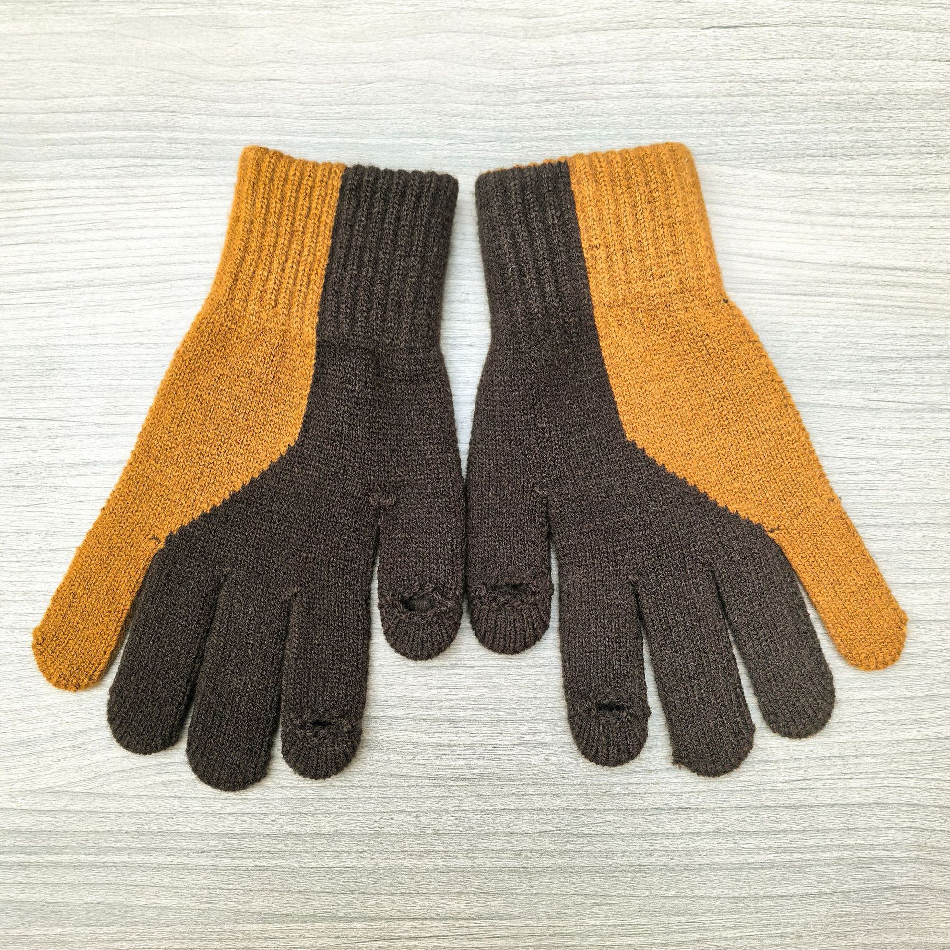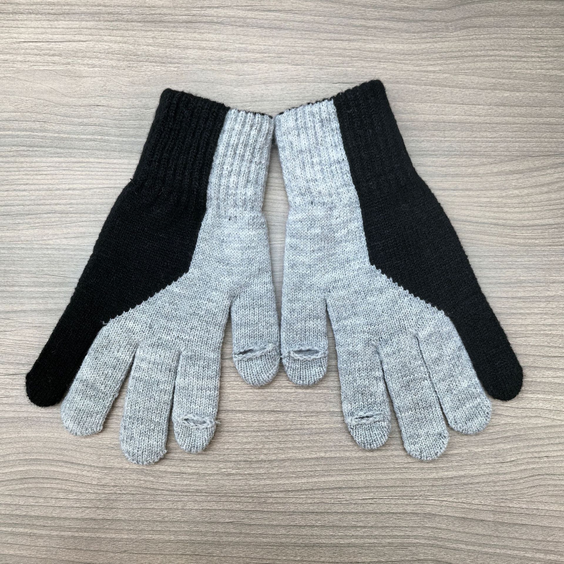 跨境秋冬拼色针织手套户外加绒防寒毛线露两指触屏保暖手套女