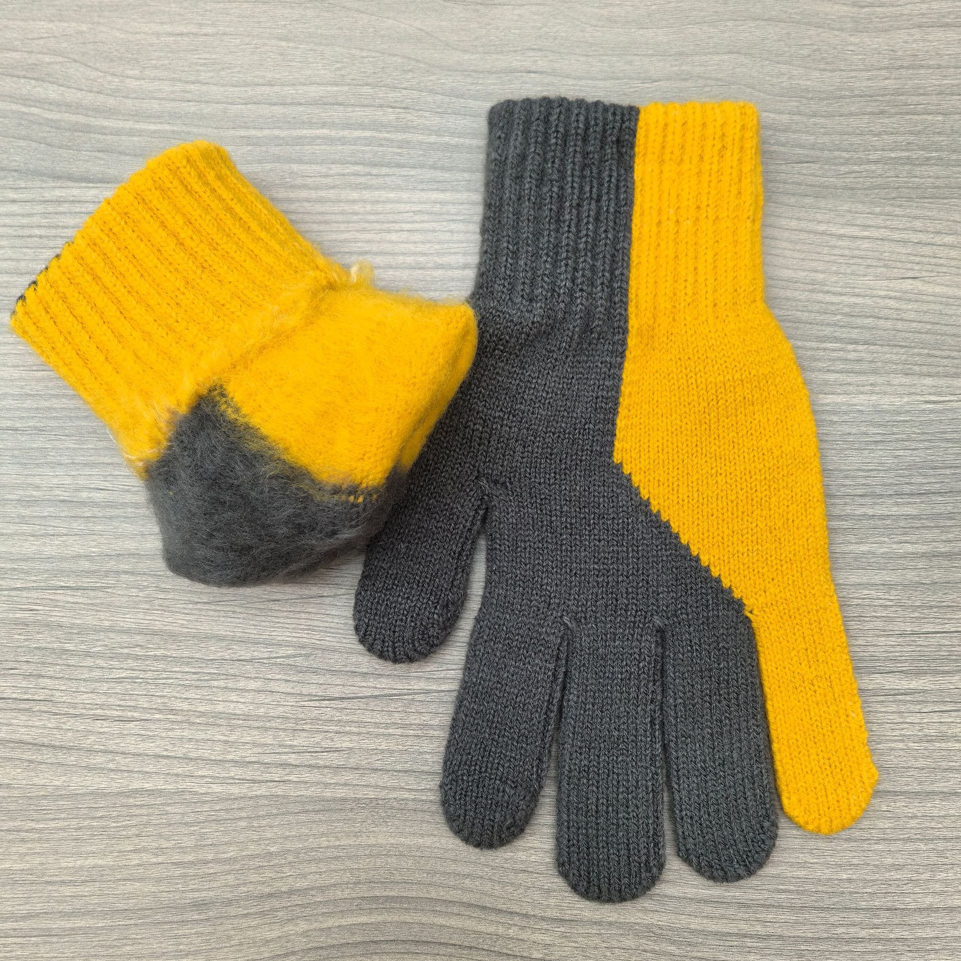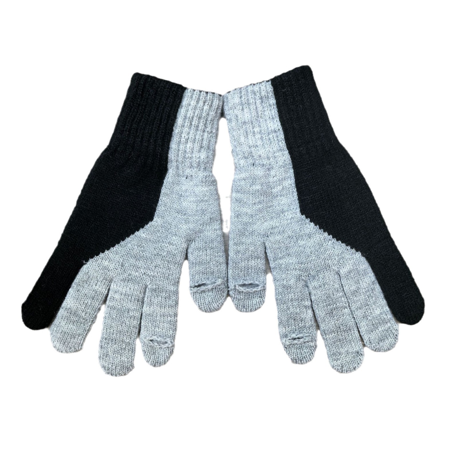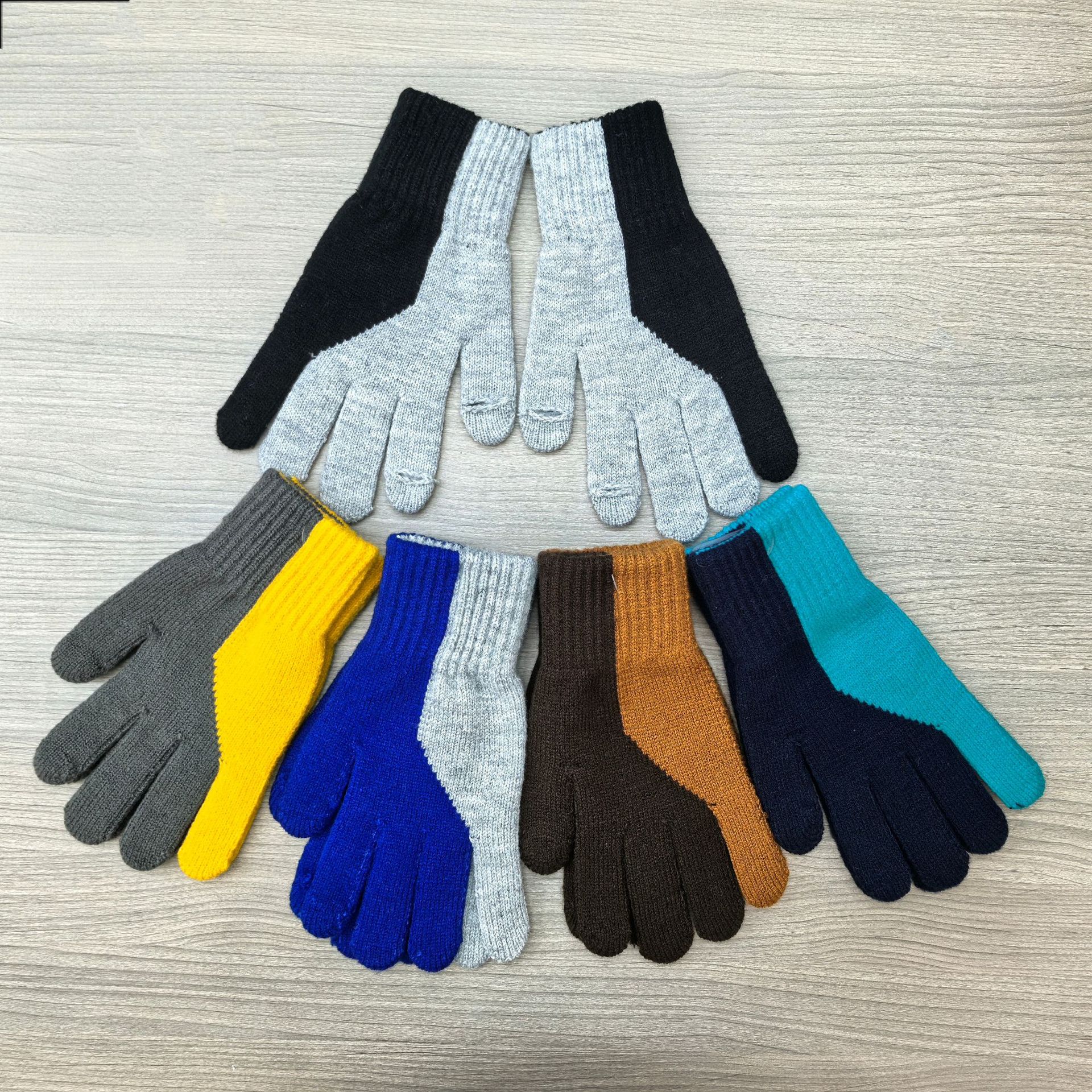 跨境秋冬拼色针织手套户外加绒防寒毛线露两指触屏保暖手套女
