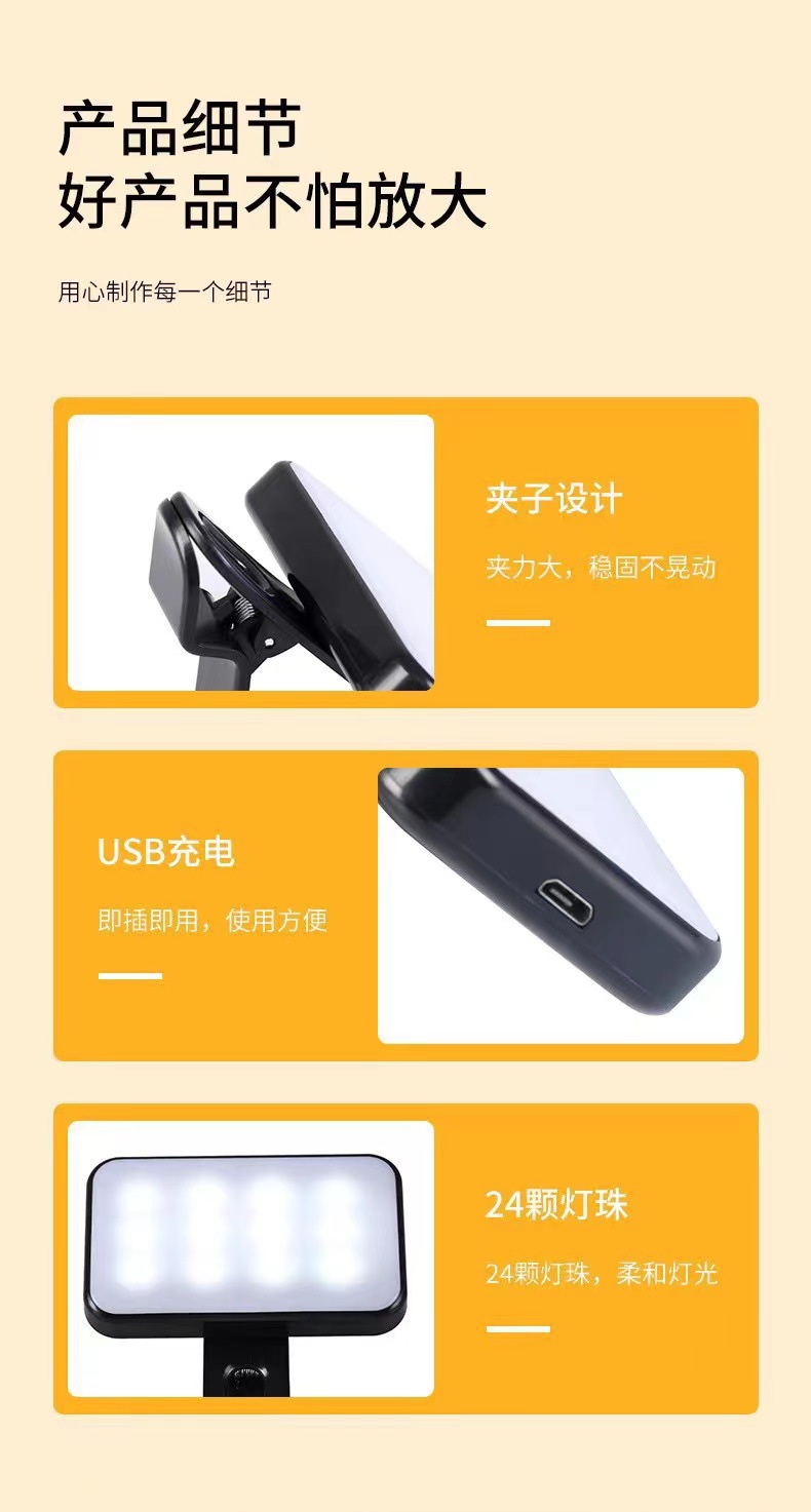 爆款跨境手机电脑平板视频会议补光灯直播自拍拍照夹子双色温光灯