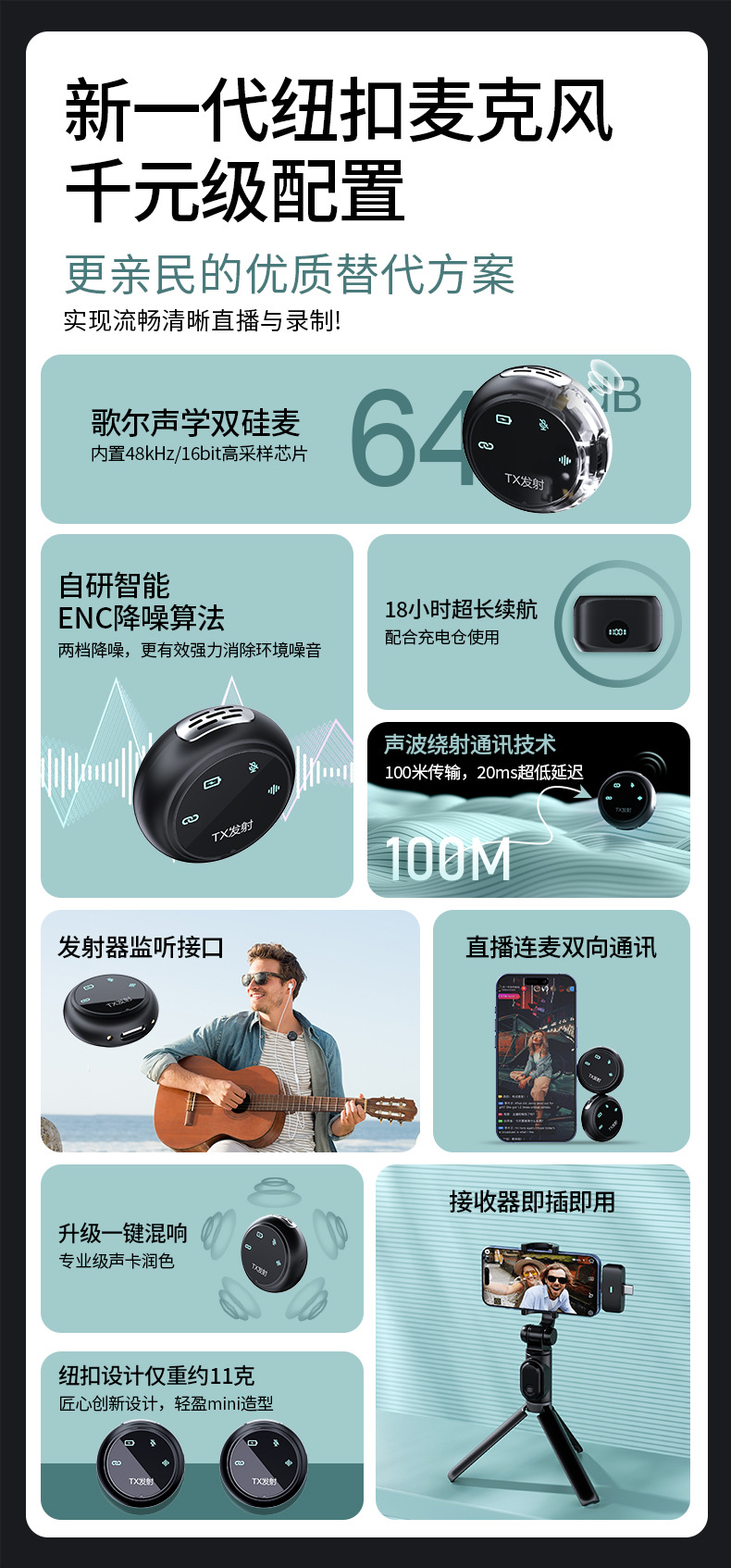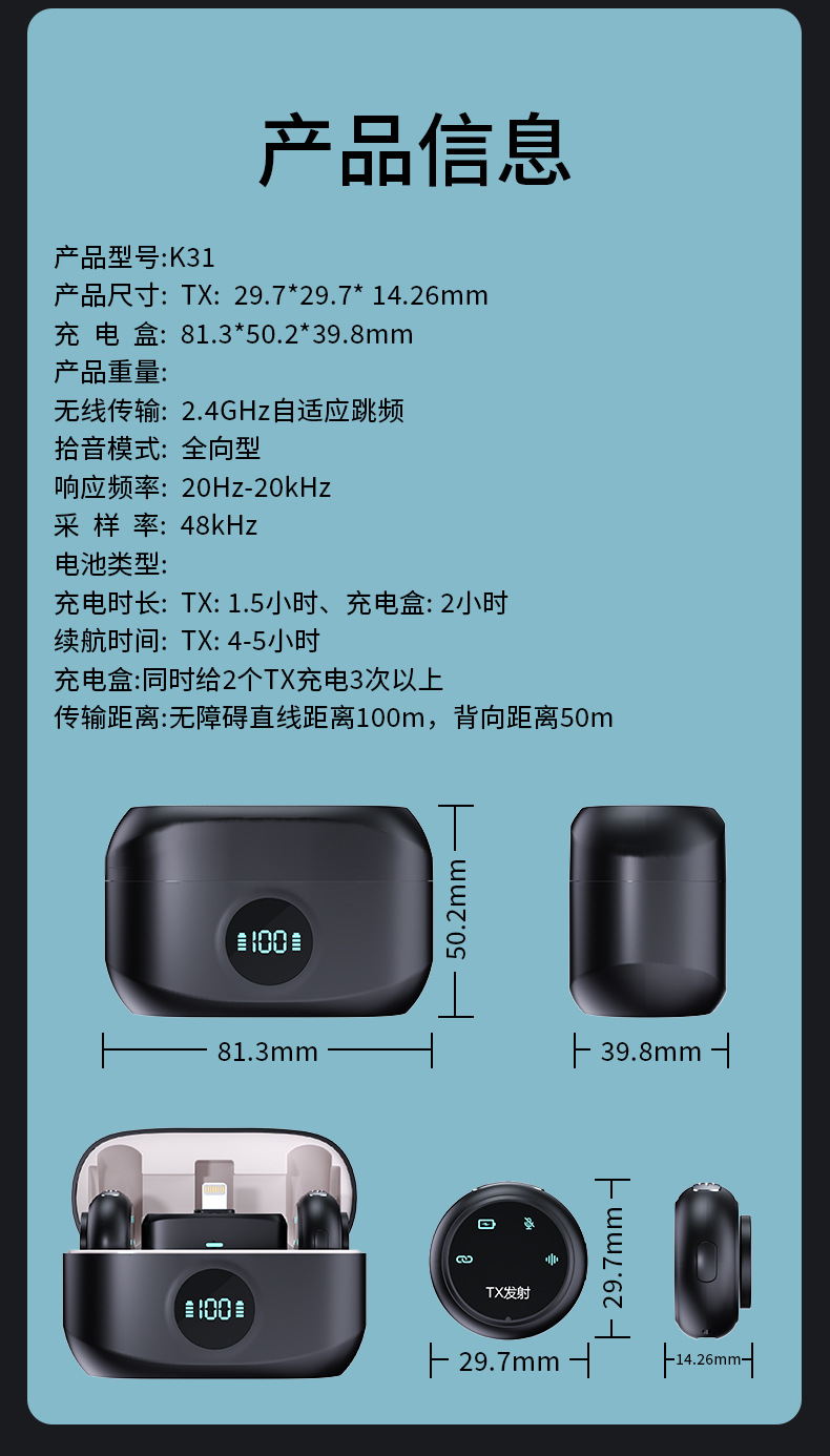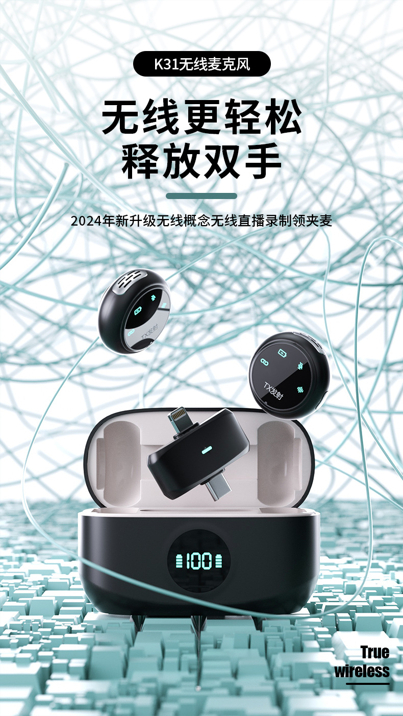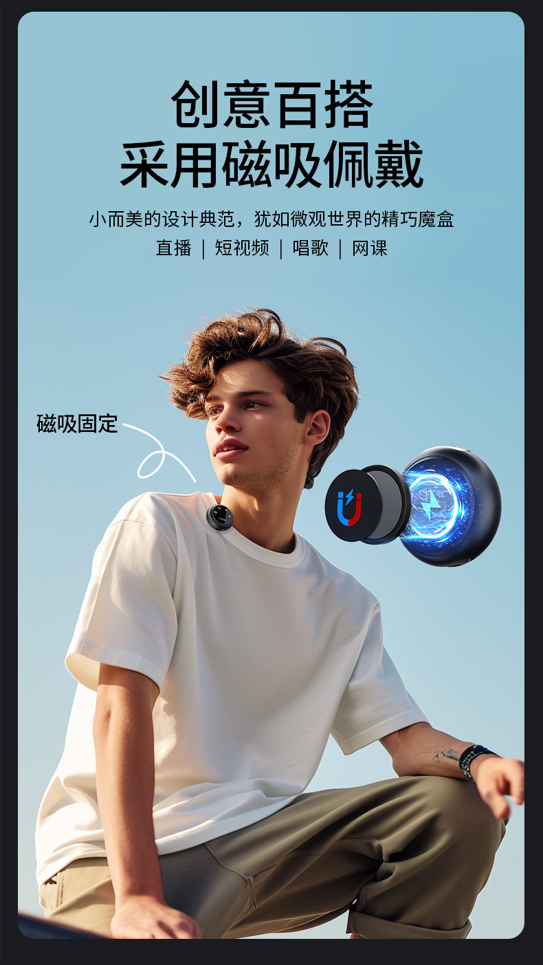 K31纽扣磁吸无线领夹麦克风夹领式直播收音麦专用手机降噪录音
