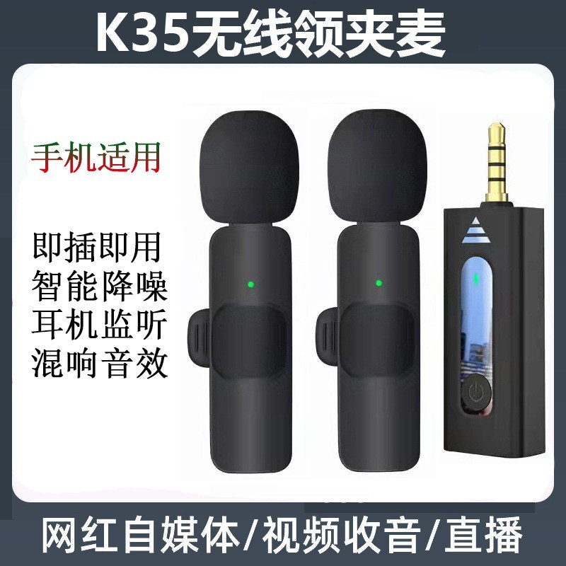 k35无线麦克风教师抖音直播话筒3.5直播小蜜蜂领夹麦一拖二领夹麦