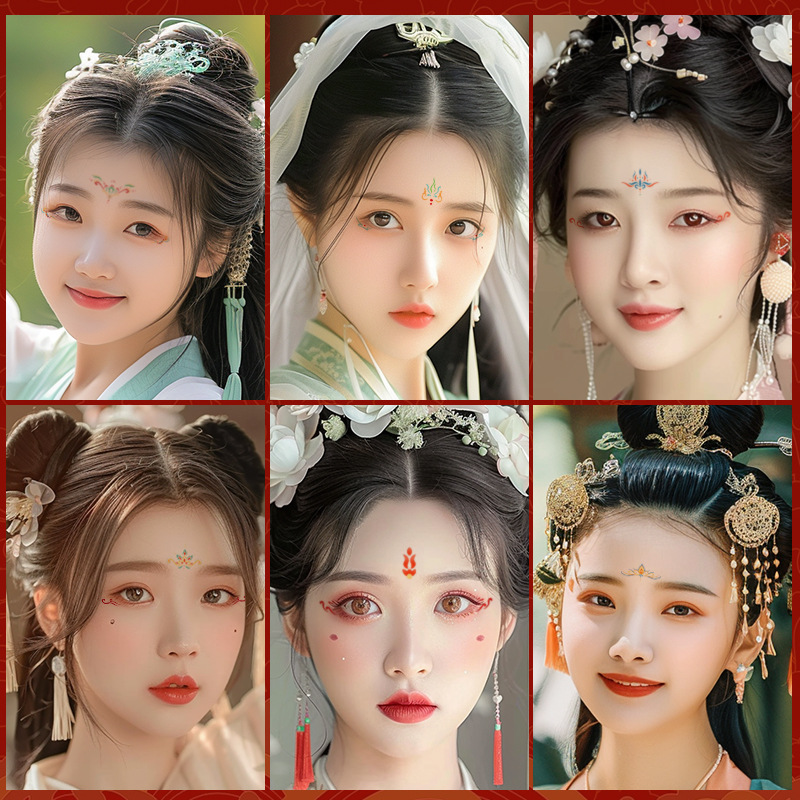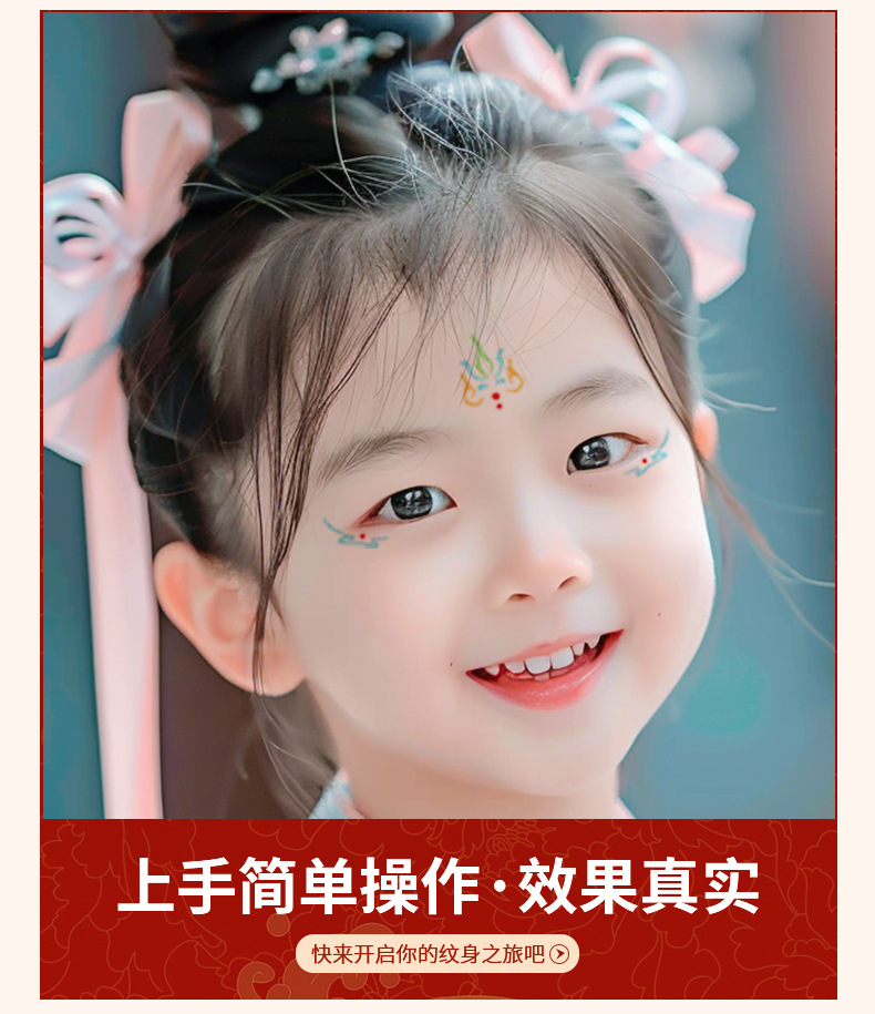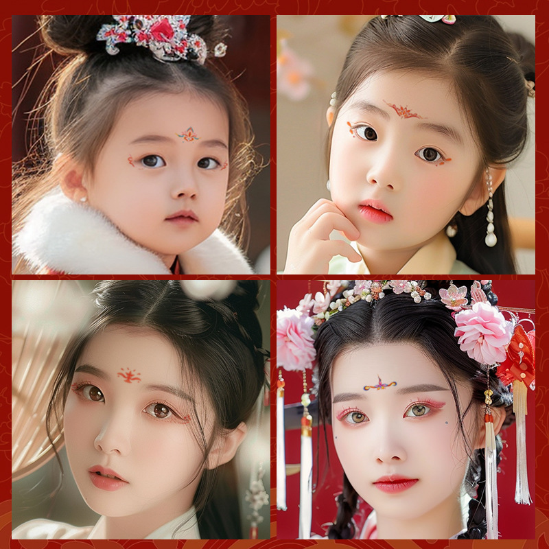 儿童眉心贴汉服额贴古风男女童额头印花纹身防水活动演出宝宝贴纸