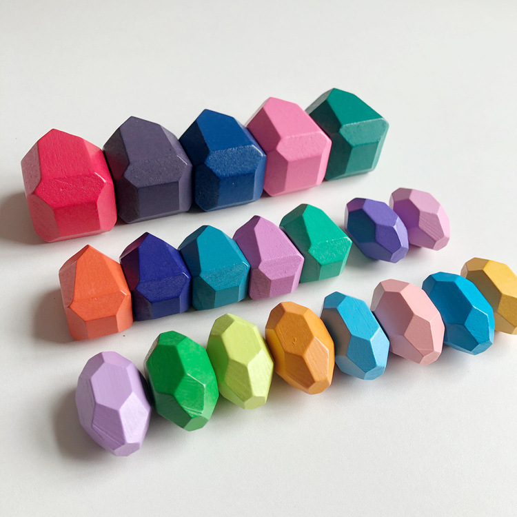 儿童早教多彩叠石积木耐心专注力玩具手眼协调木质叠叠乐石头玩具