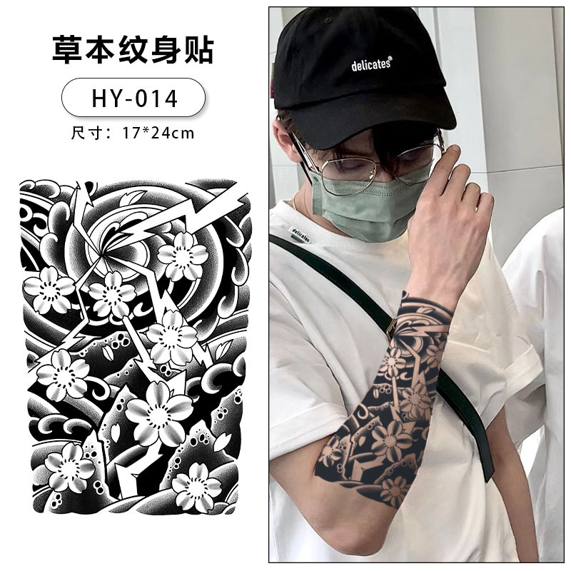 花臂草本纹身贴男女高级感防水手臂腿部刺青半永久仿真不反光贴纸