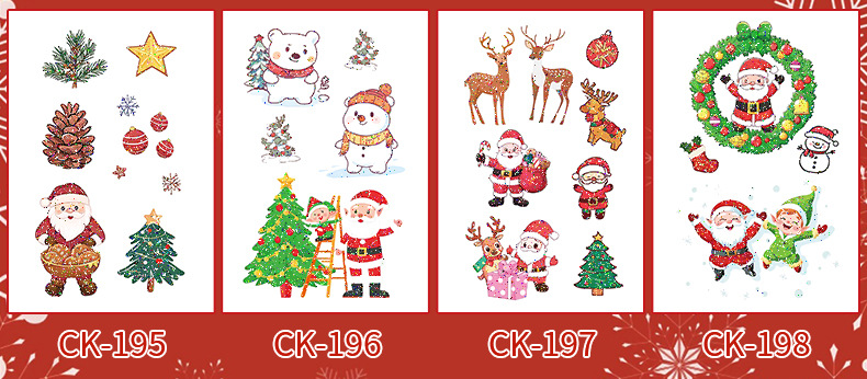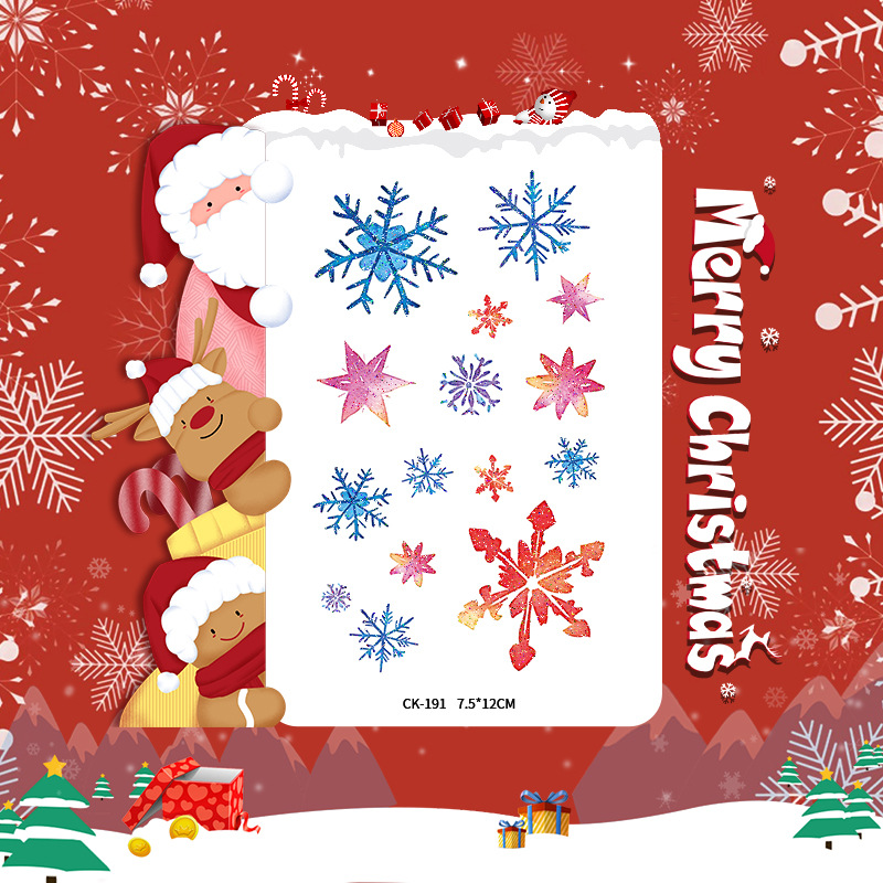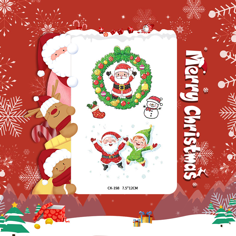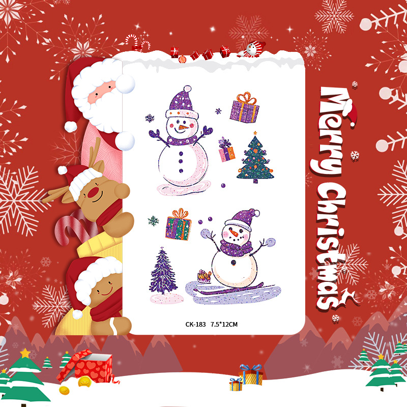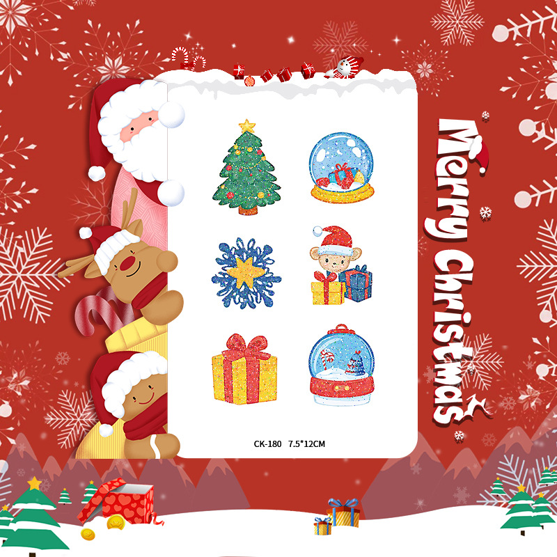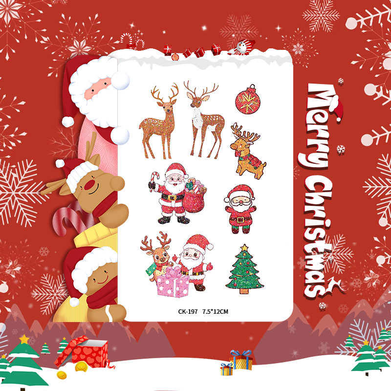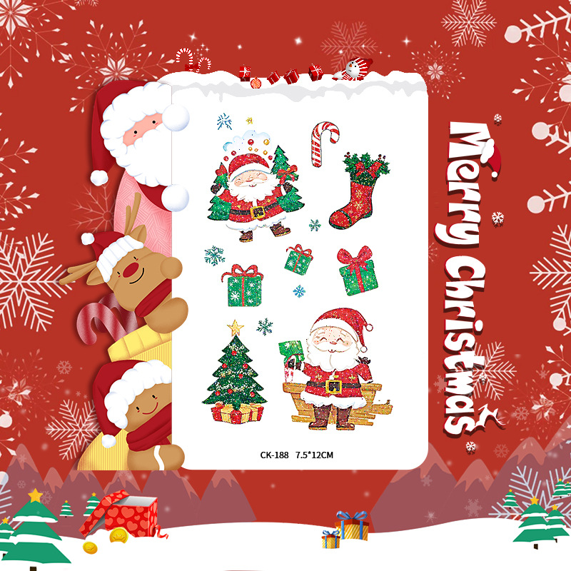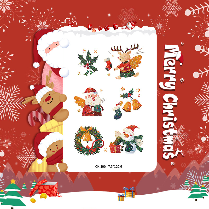 圣诞节贴纸儿童卡通可爱彩色纹身贴防水铃铛袜子雪人麋鹿礼物星星