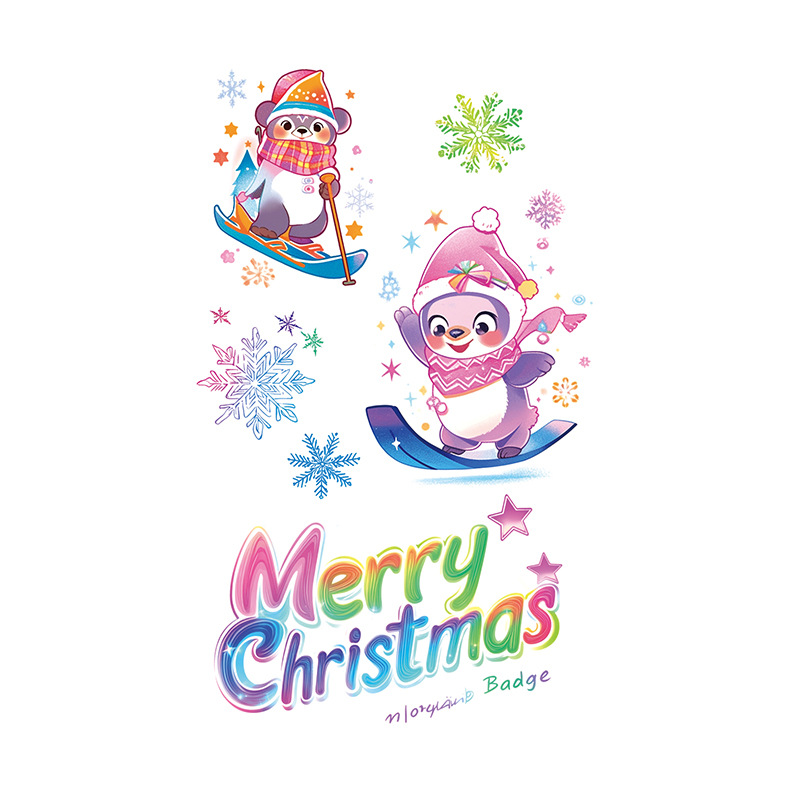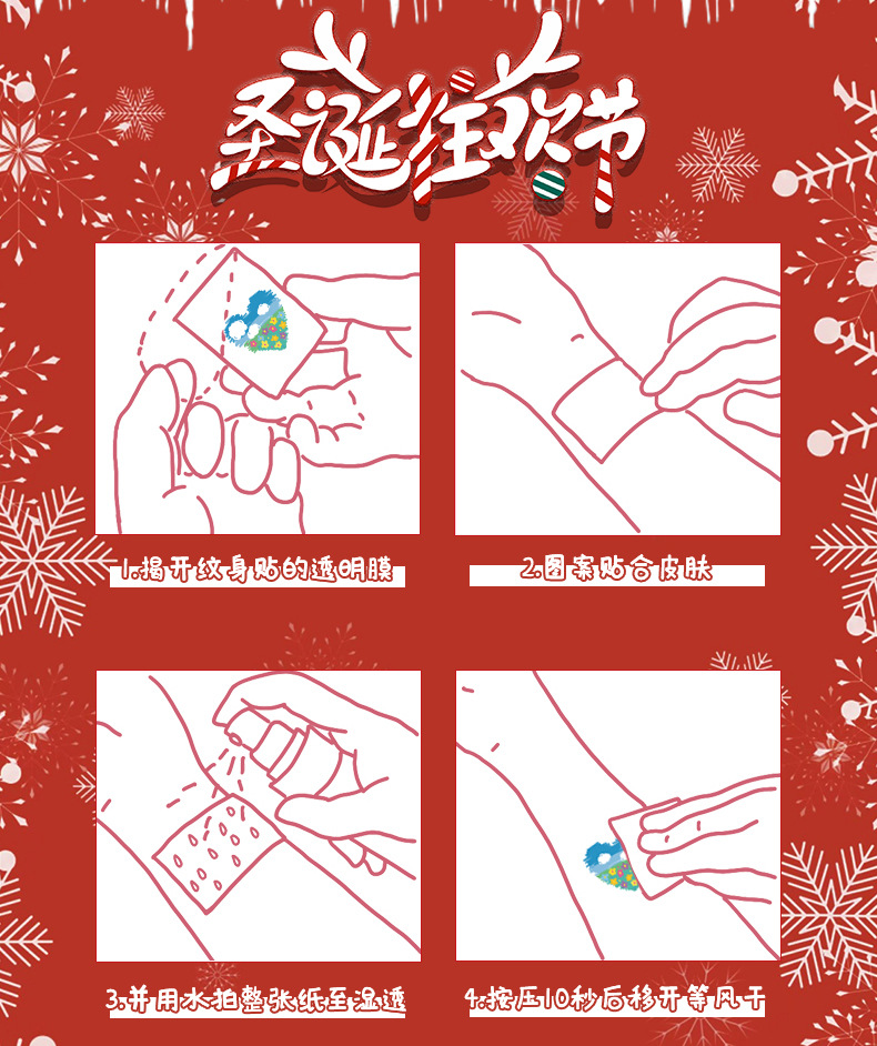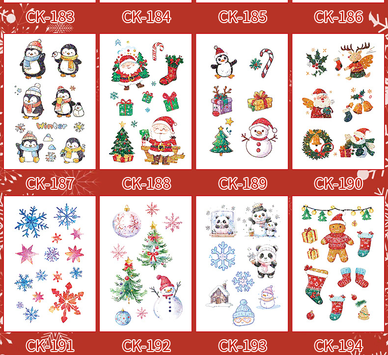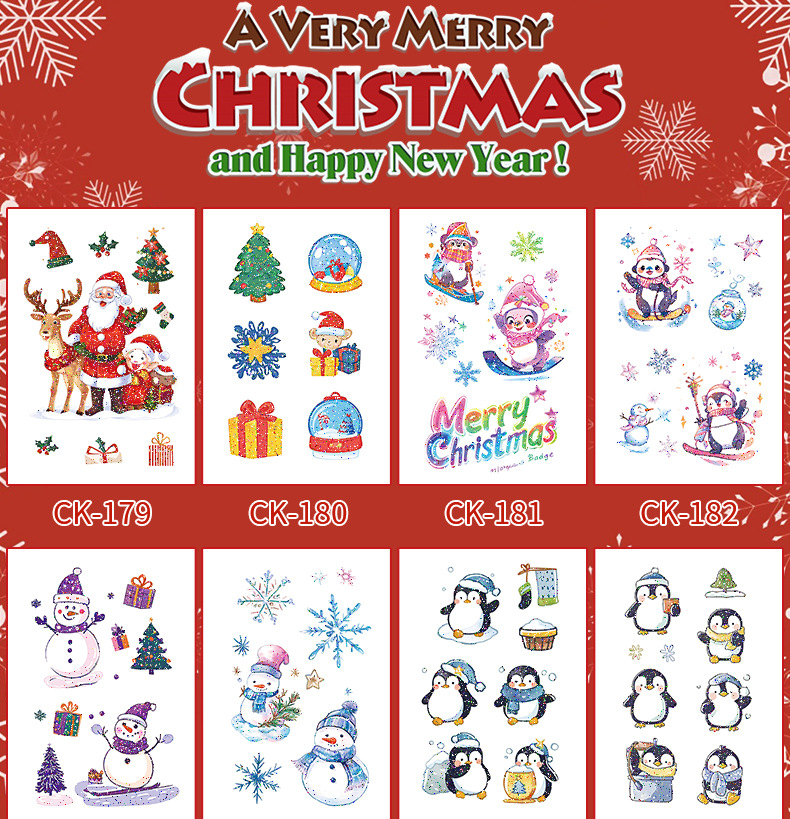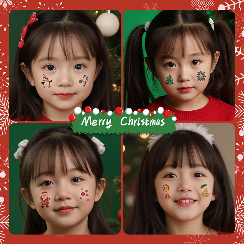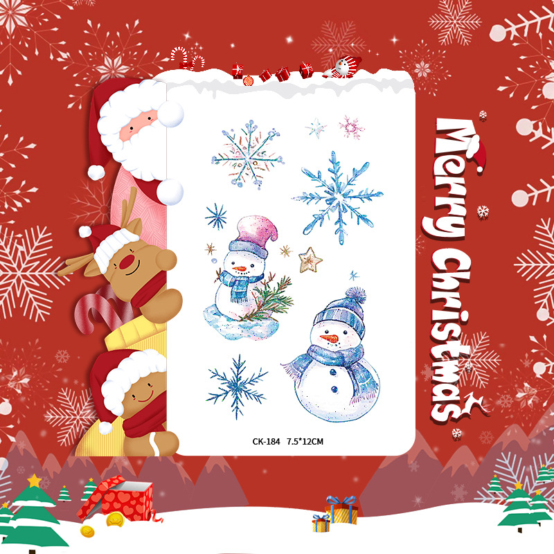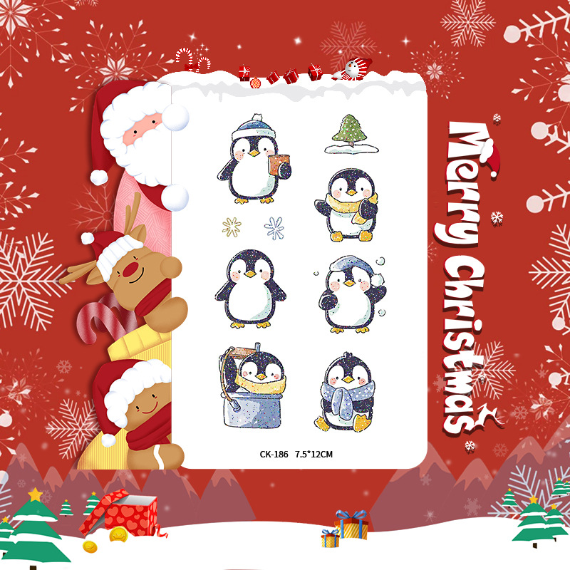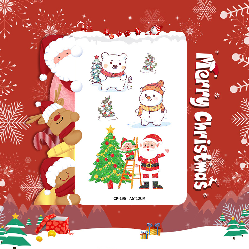 圣诞节贴纸儿童卡通可爱彩色纹身贴防水铃铛袜子雪人麋鹿礼物星星