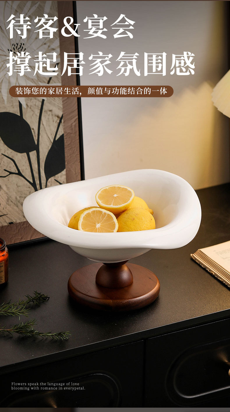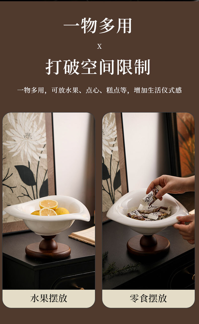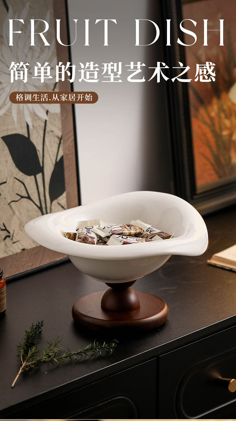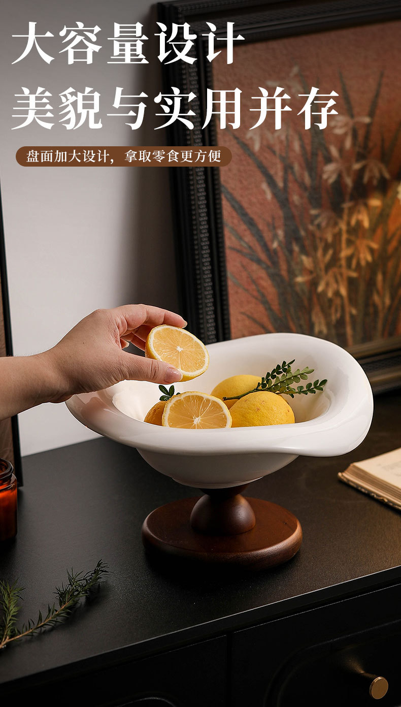 陶瓷水果盘高脚复古木质高档轻奢水果零食收纳客厅茶几玄关装饰盆