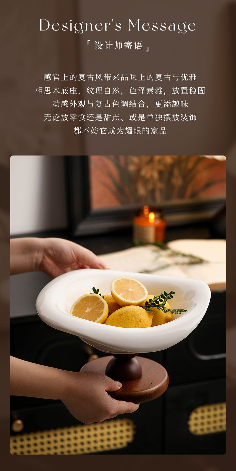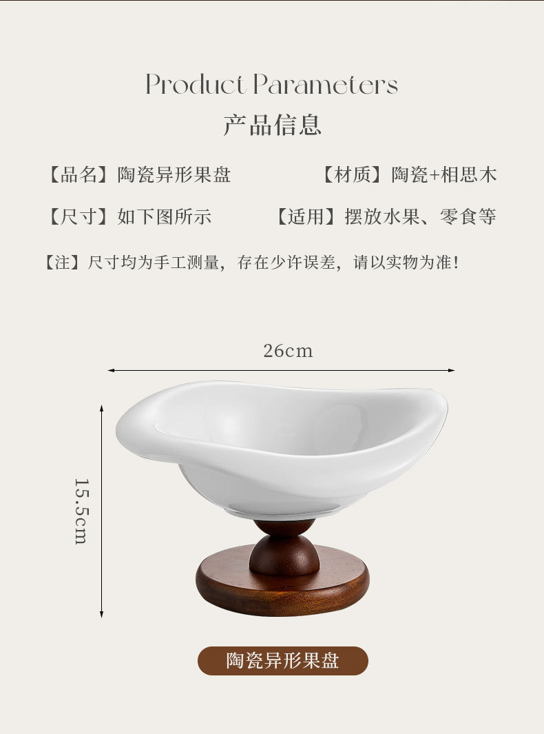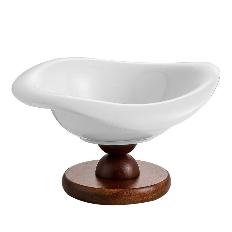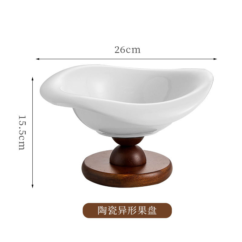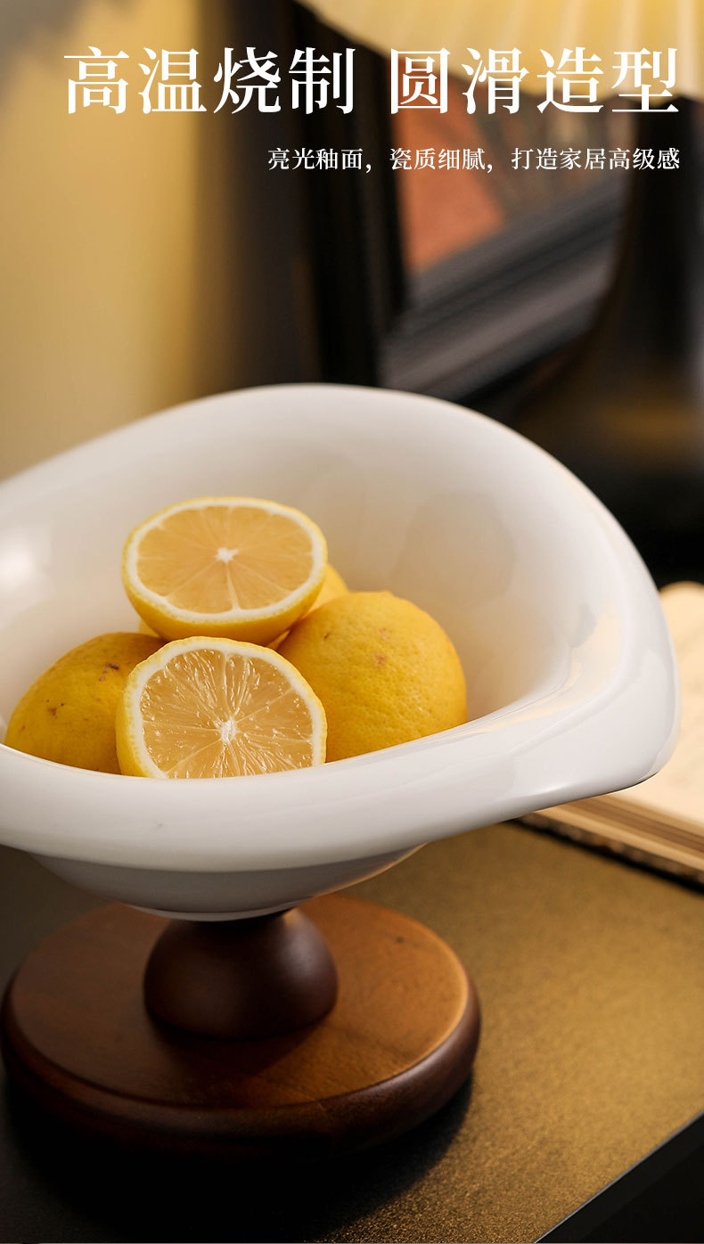 陶瓷水果盘高脚复古木质高档轻奢水果零食收纳客厅茶几玄关装饰盆