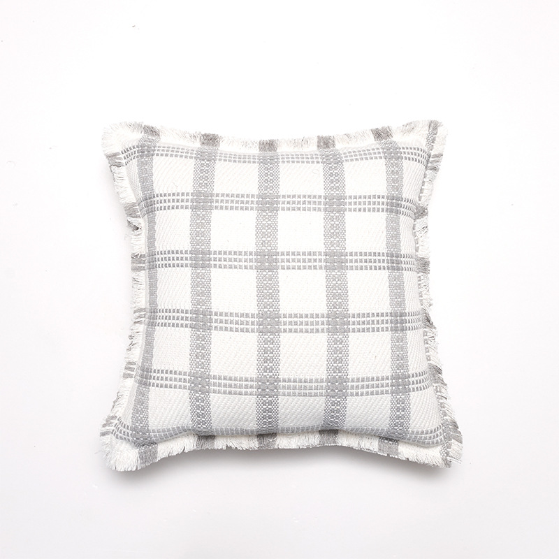 加工定制新款小香风涤棉格子须须边抱枕沙发客厅卧室抱枕靠垫套