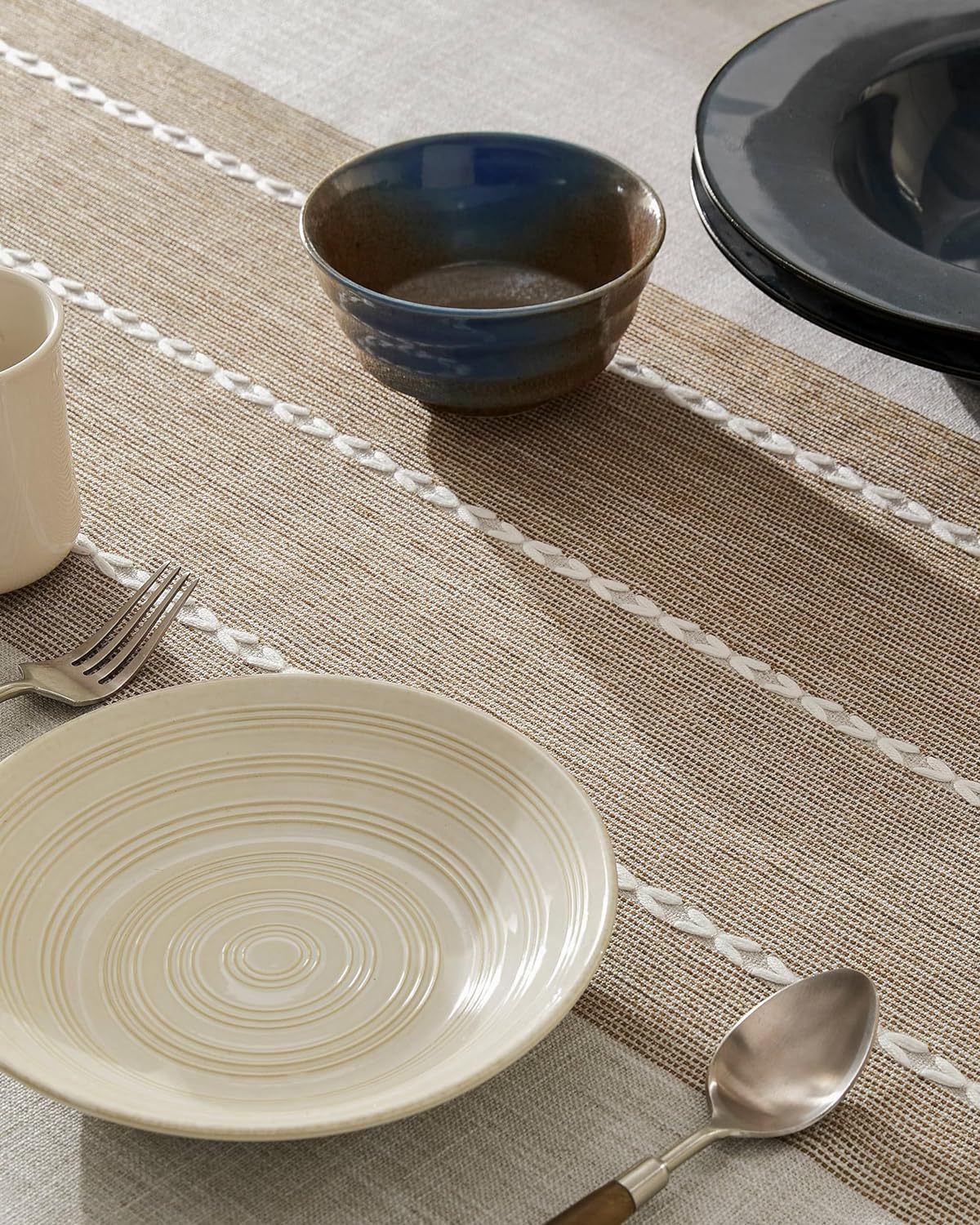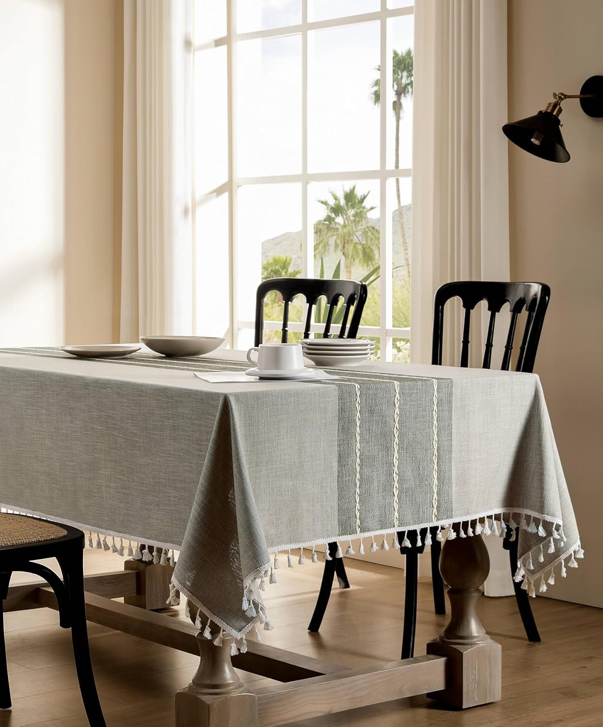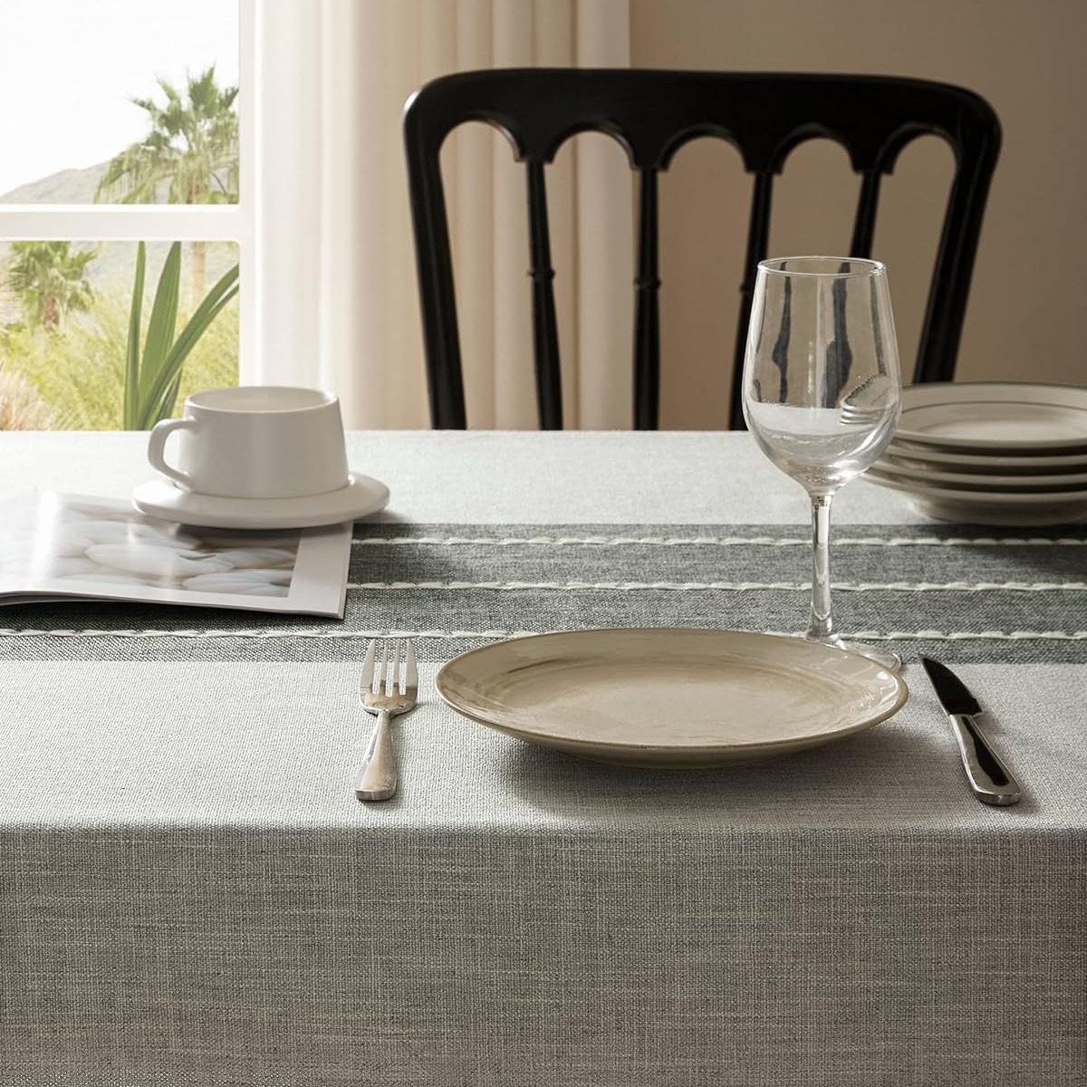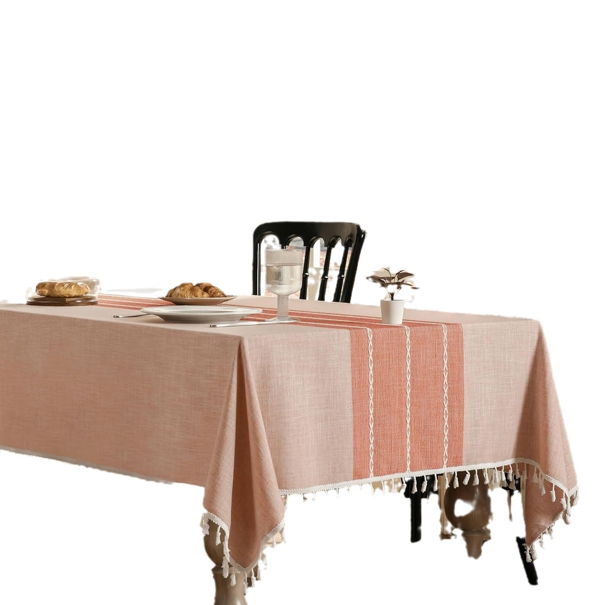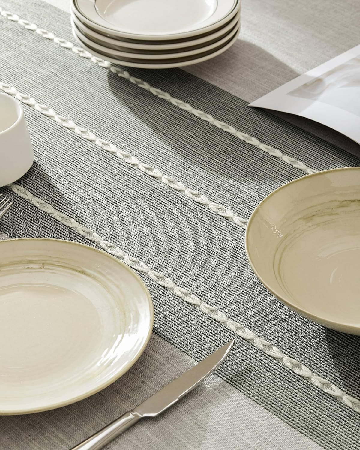 跨境欧洲美国热卖棉麻矩形餐桌布艺灰色条纹厨房餐厅派对台布批发