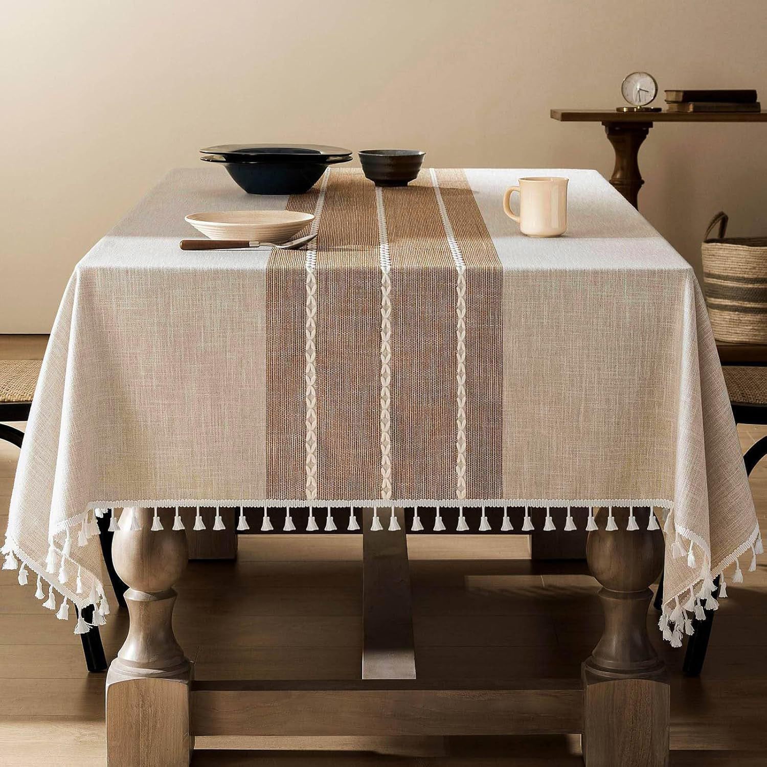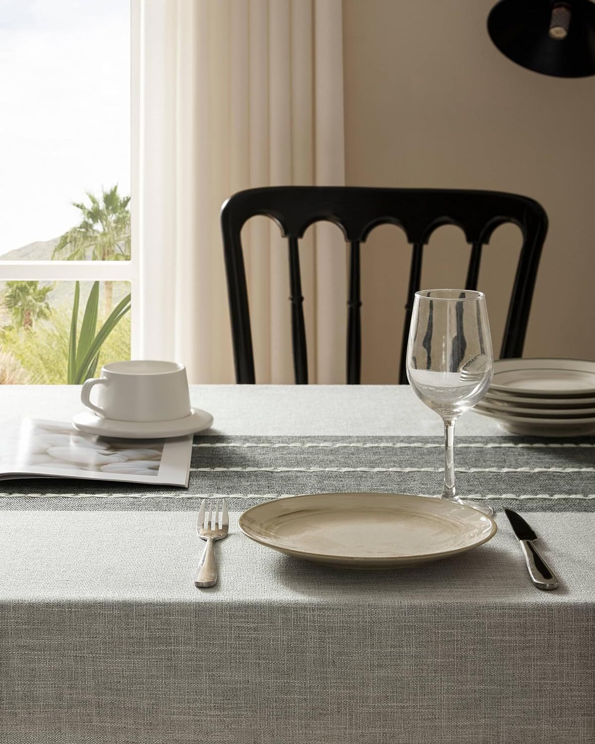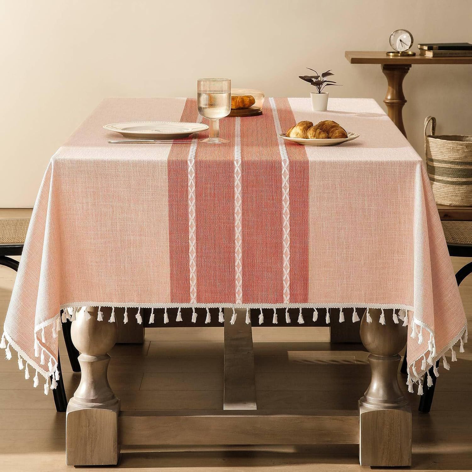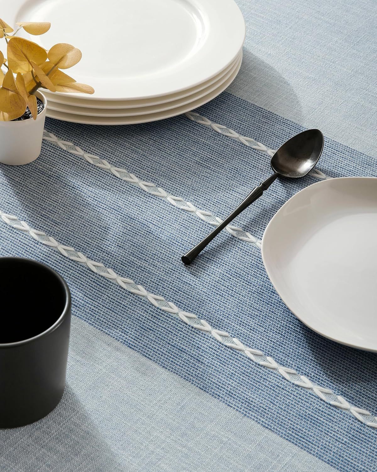跨境欧洲美国热卖棉麻矩形餐桌布艺灰色条纹厨房餐厅派对台布批发