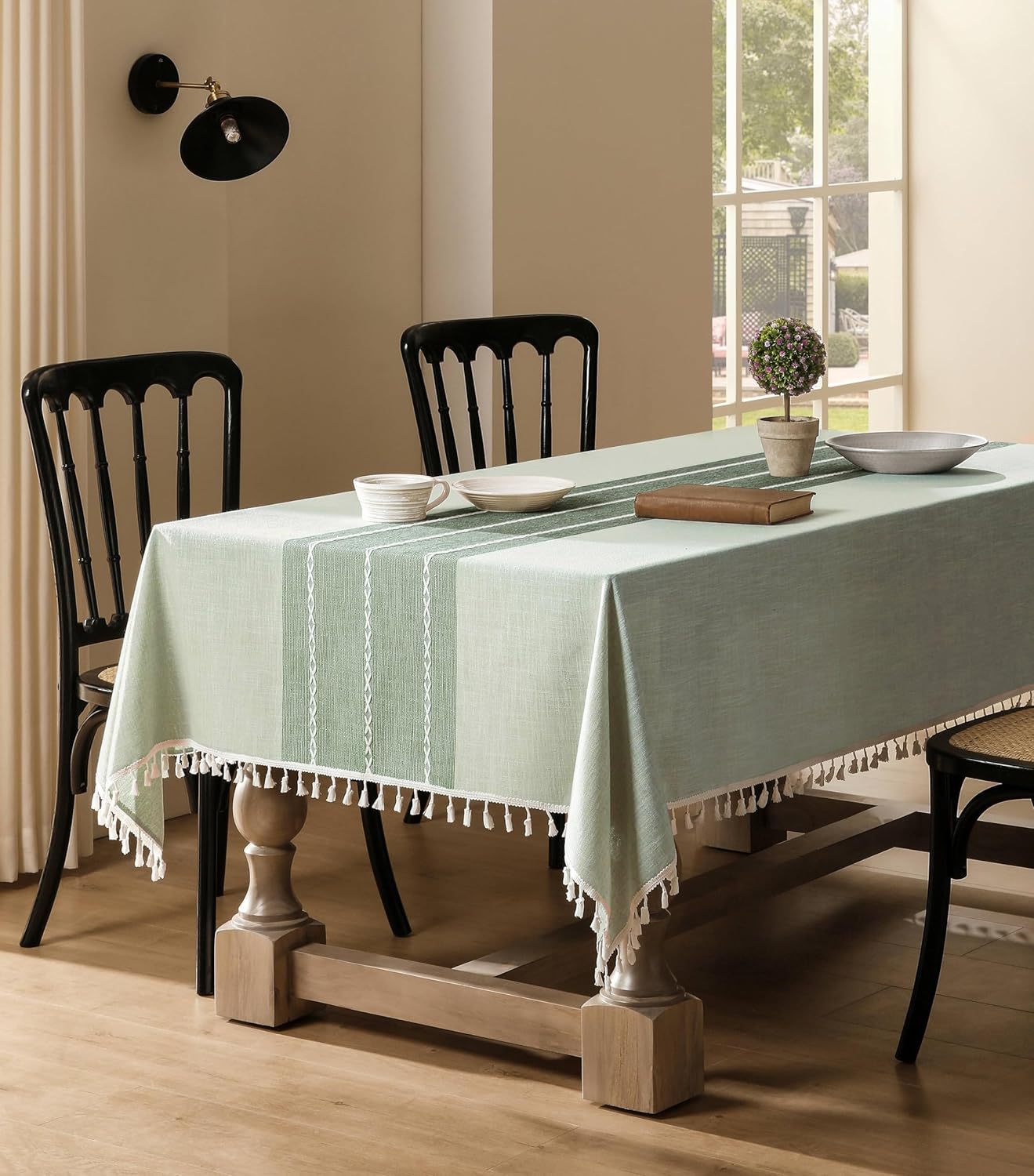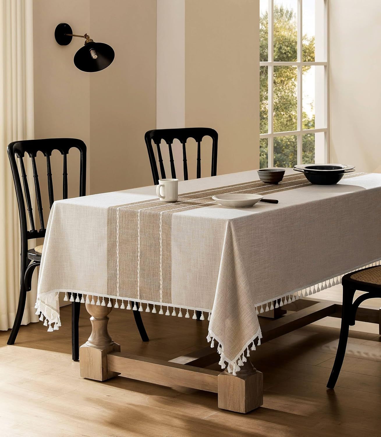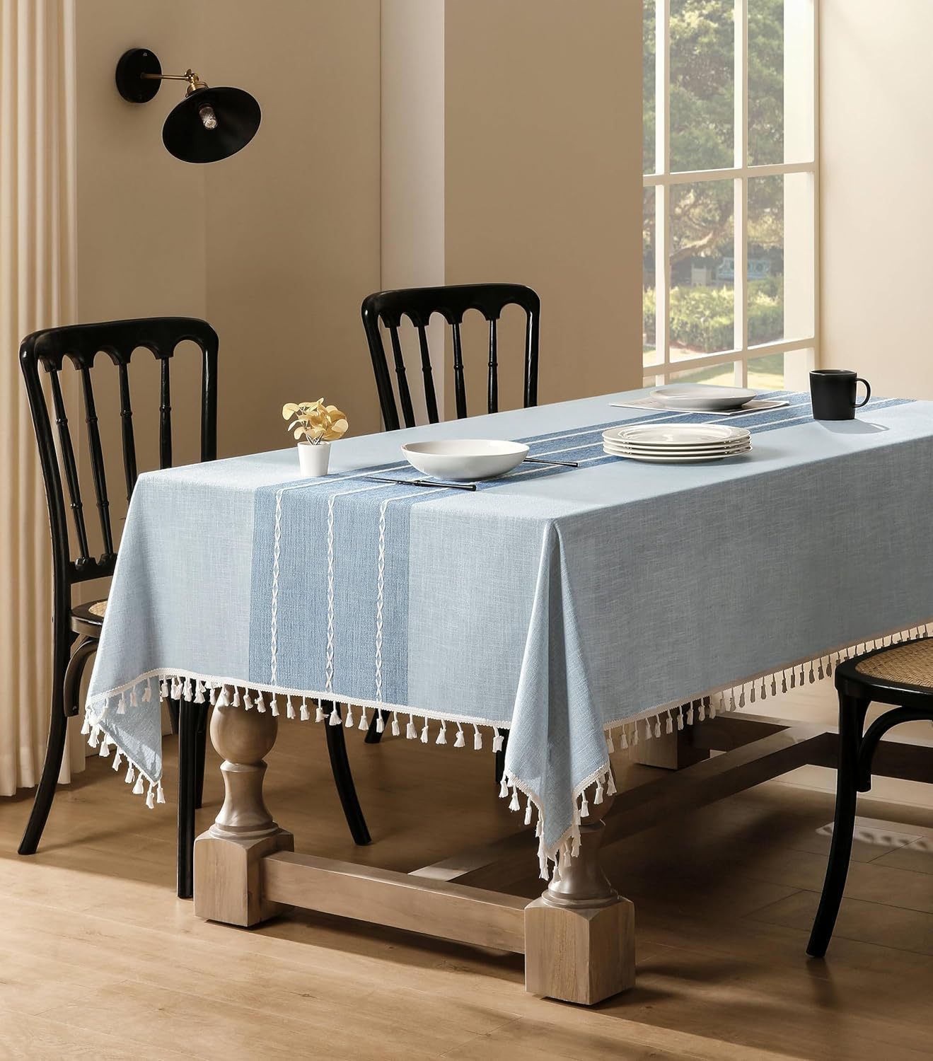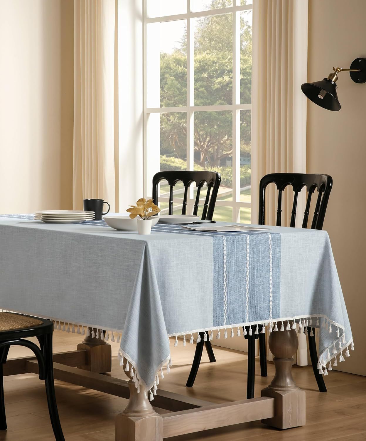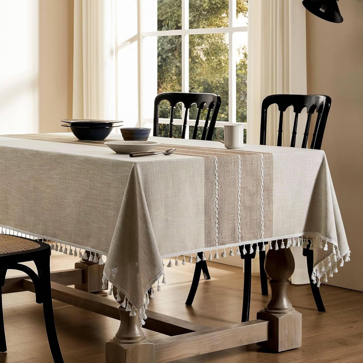 跨境欧洲美国热卖棉麻矩形餐桌布艺灰色条纹厨房餐厅派对台布批发