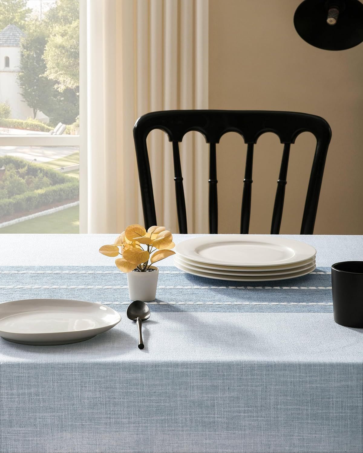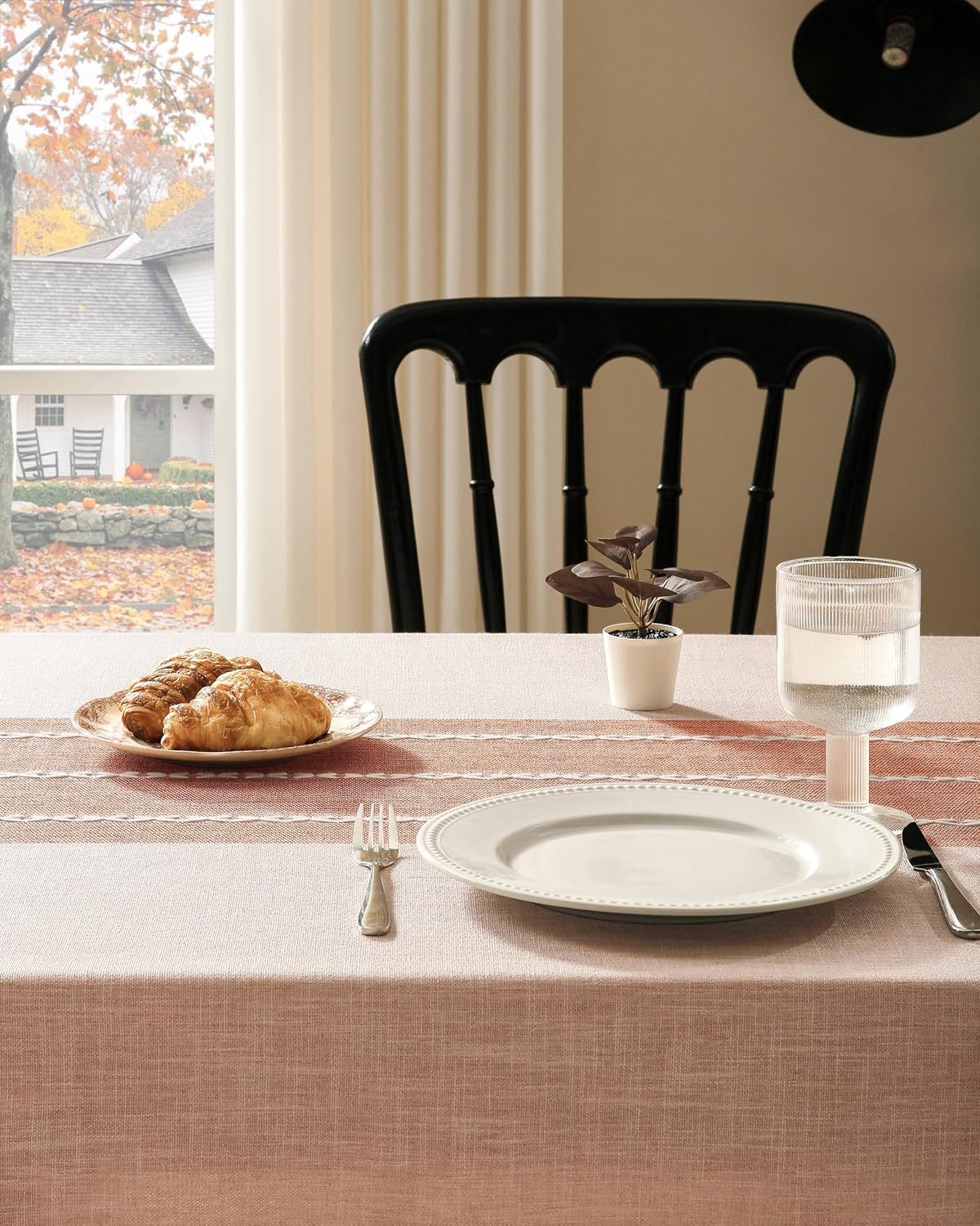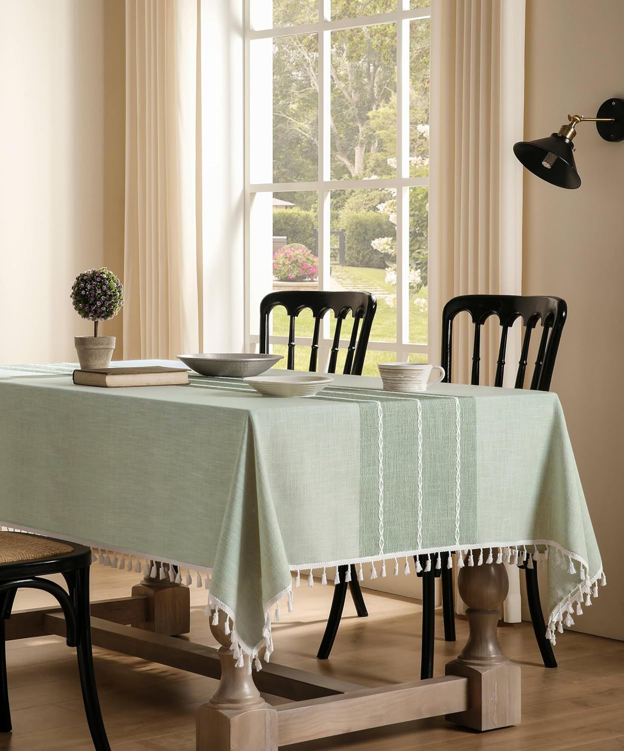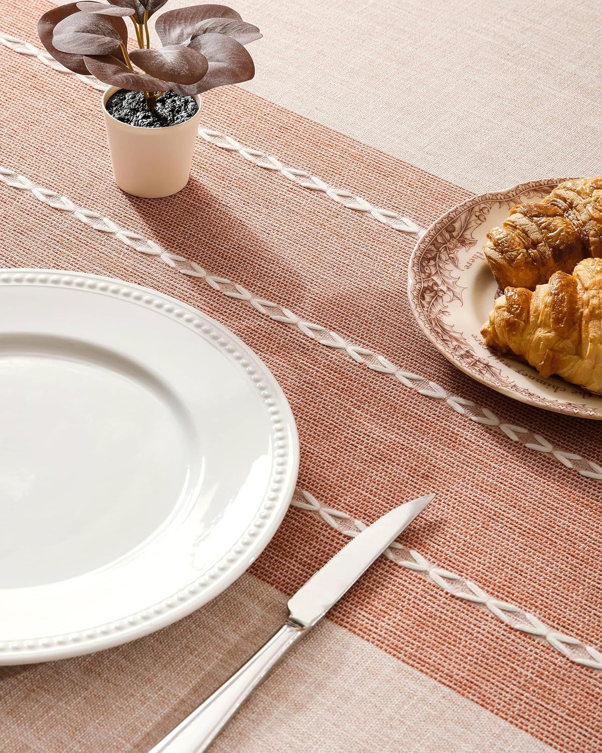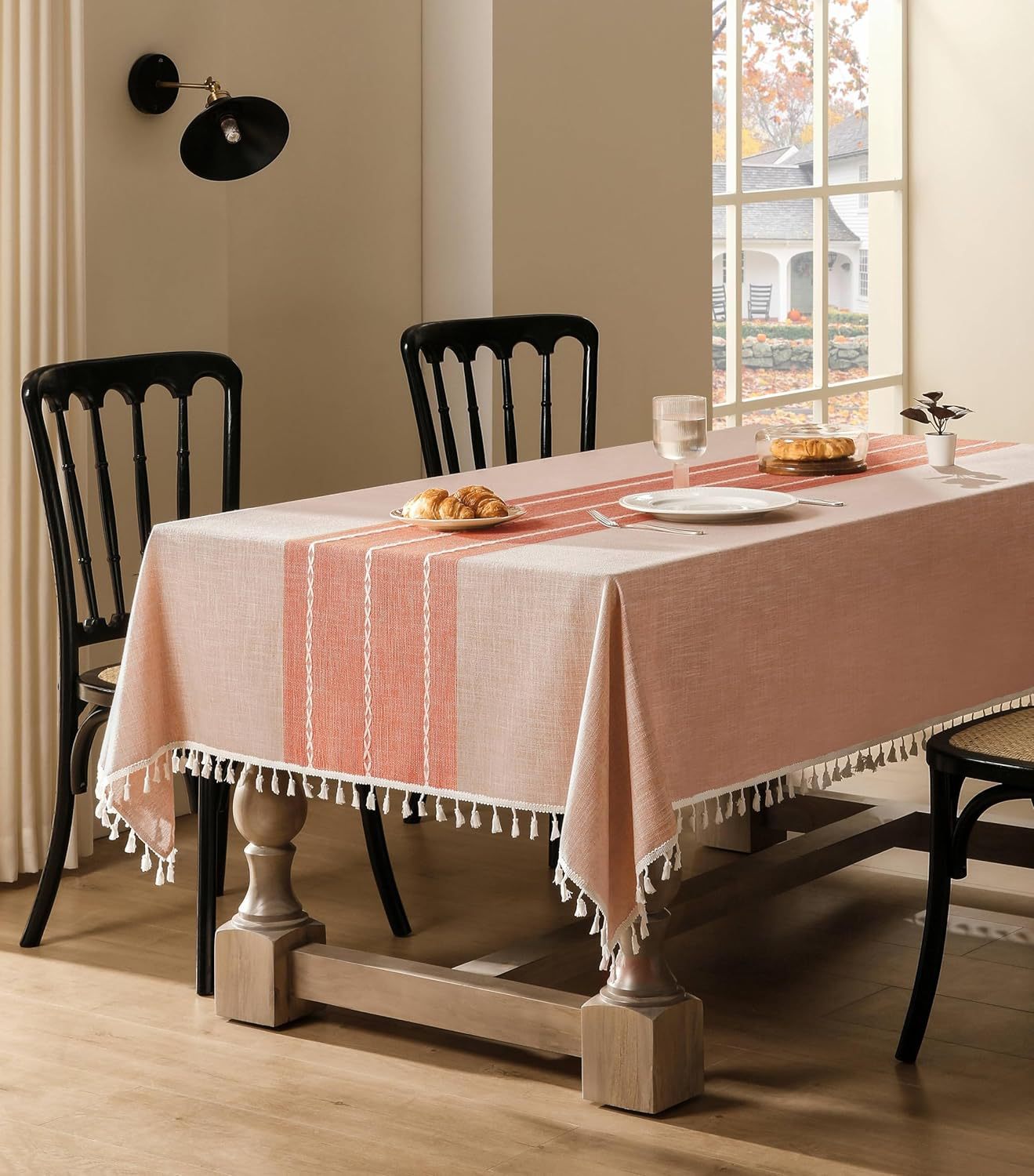 跨境欧洲美国热卖棉麻矩形餐桌布艺灰色条纹厨房餐厅派对台布批发