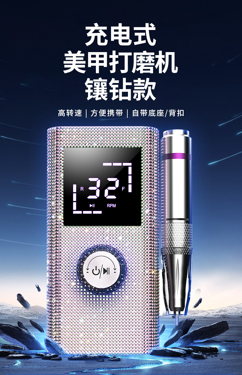 跨境新款记忆功能贴钻美甲打磨机专业卸美甲充电蓄电卸甲抛光器