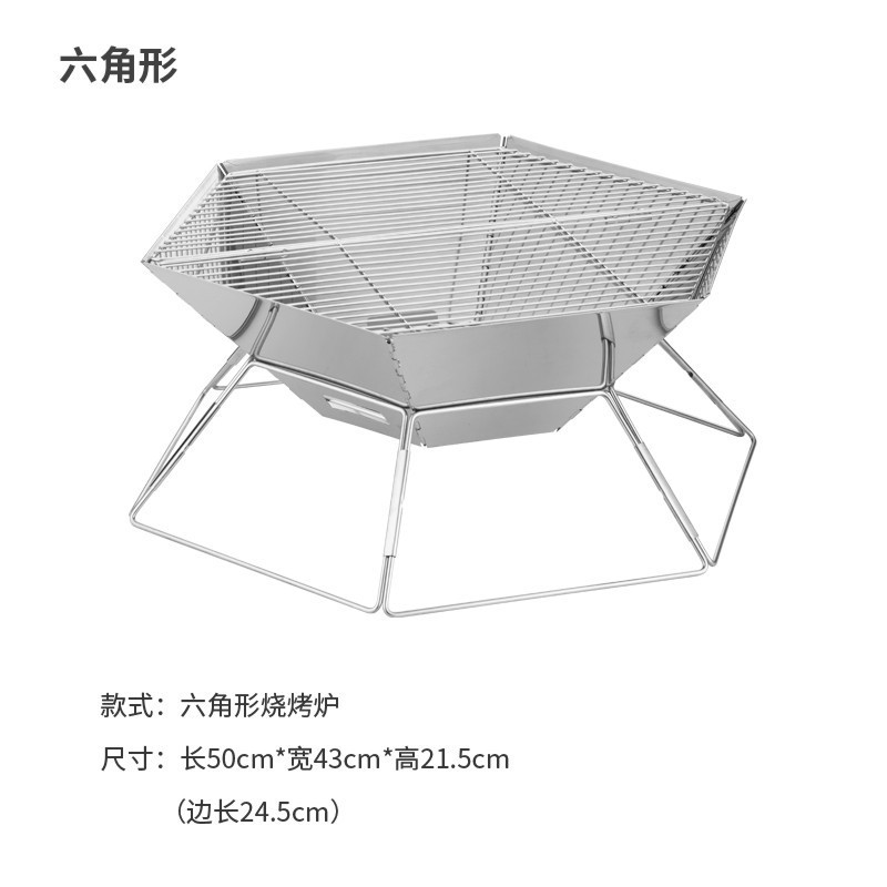 批发户外露营折叠不锈钢烧烤炉 木炭5人野外折叠碳烤工具烧烤架子