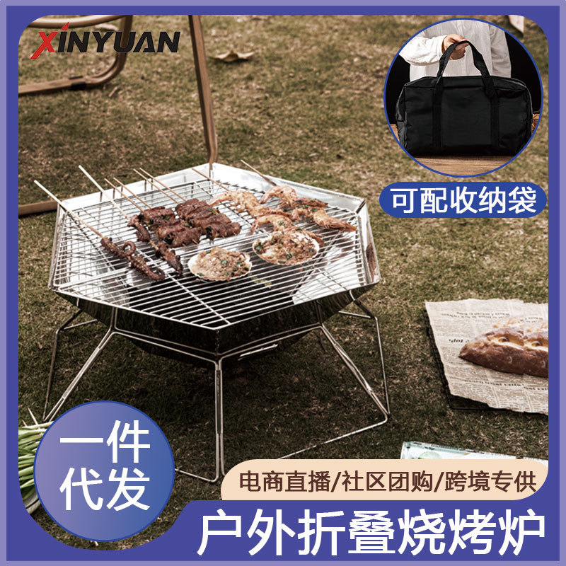 不锈钢烧烤炉户外家用木炭便携烧烤架野外野营装备炉子折叠碳烤炉