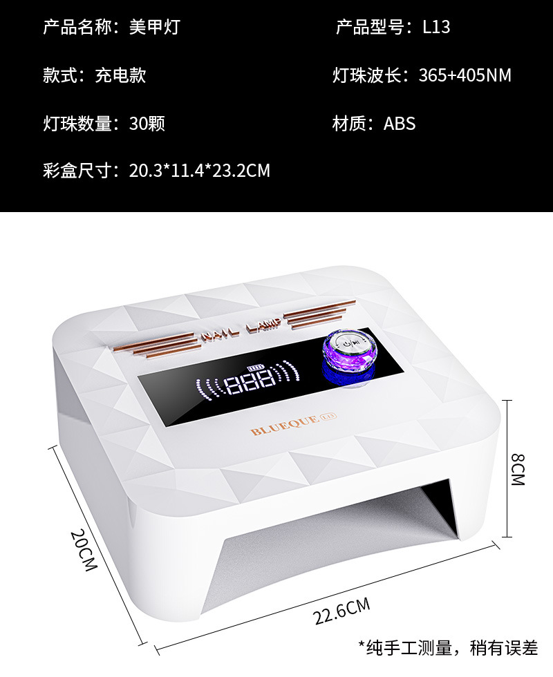 旋钮定时充电款美甲灯UV固化灯指甲油胶照灯速干烤甲光疗机