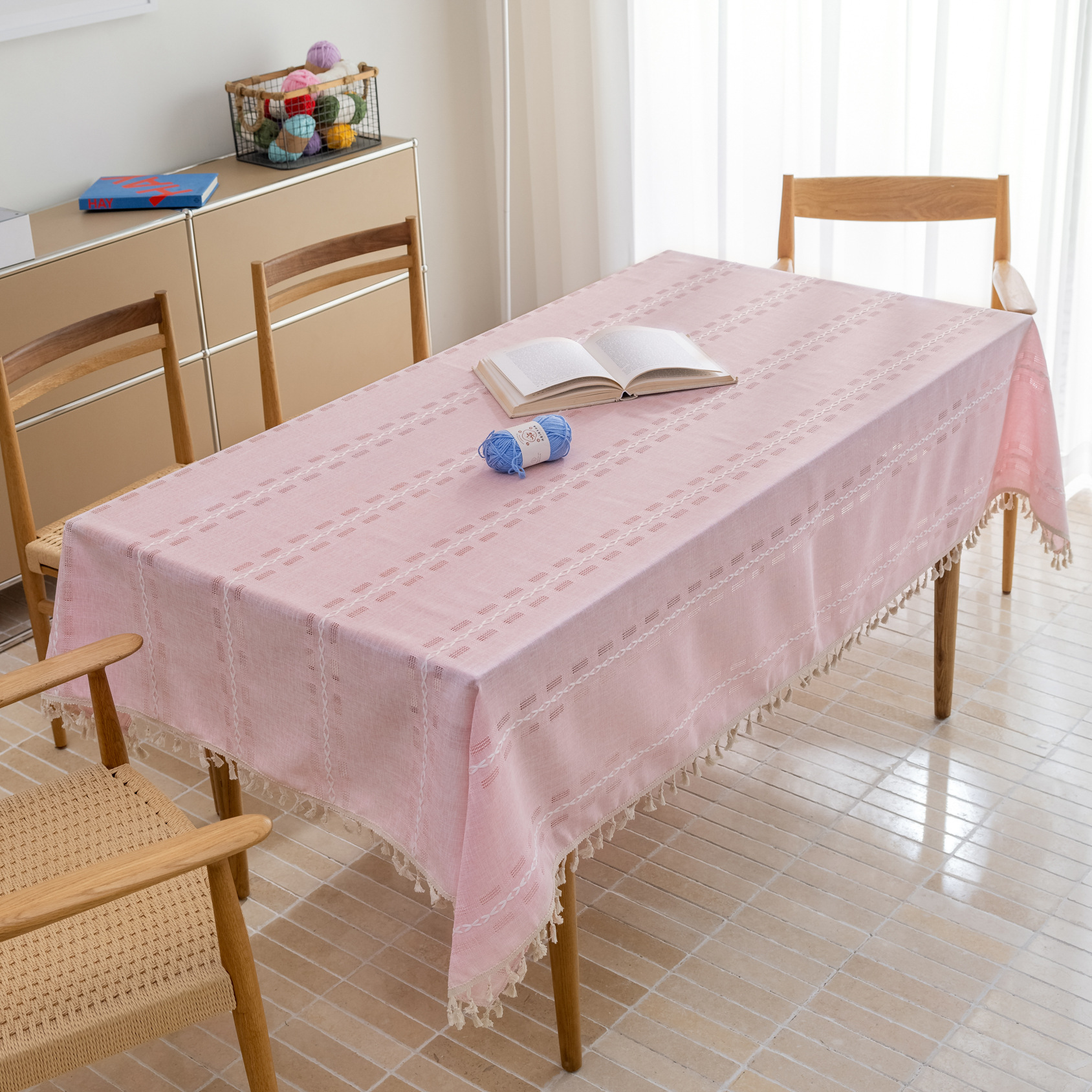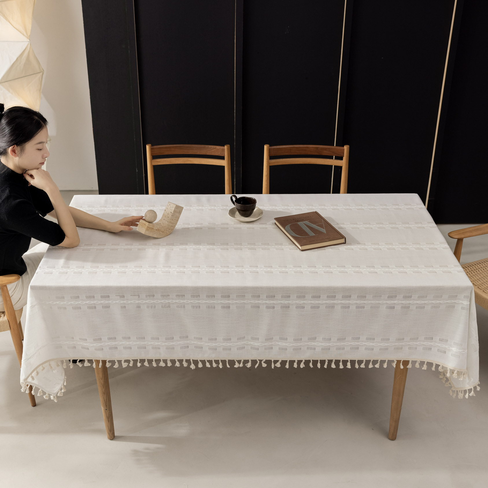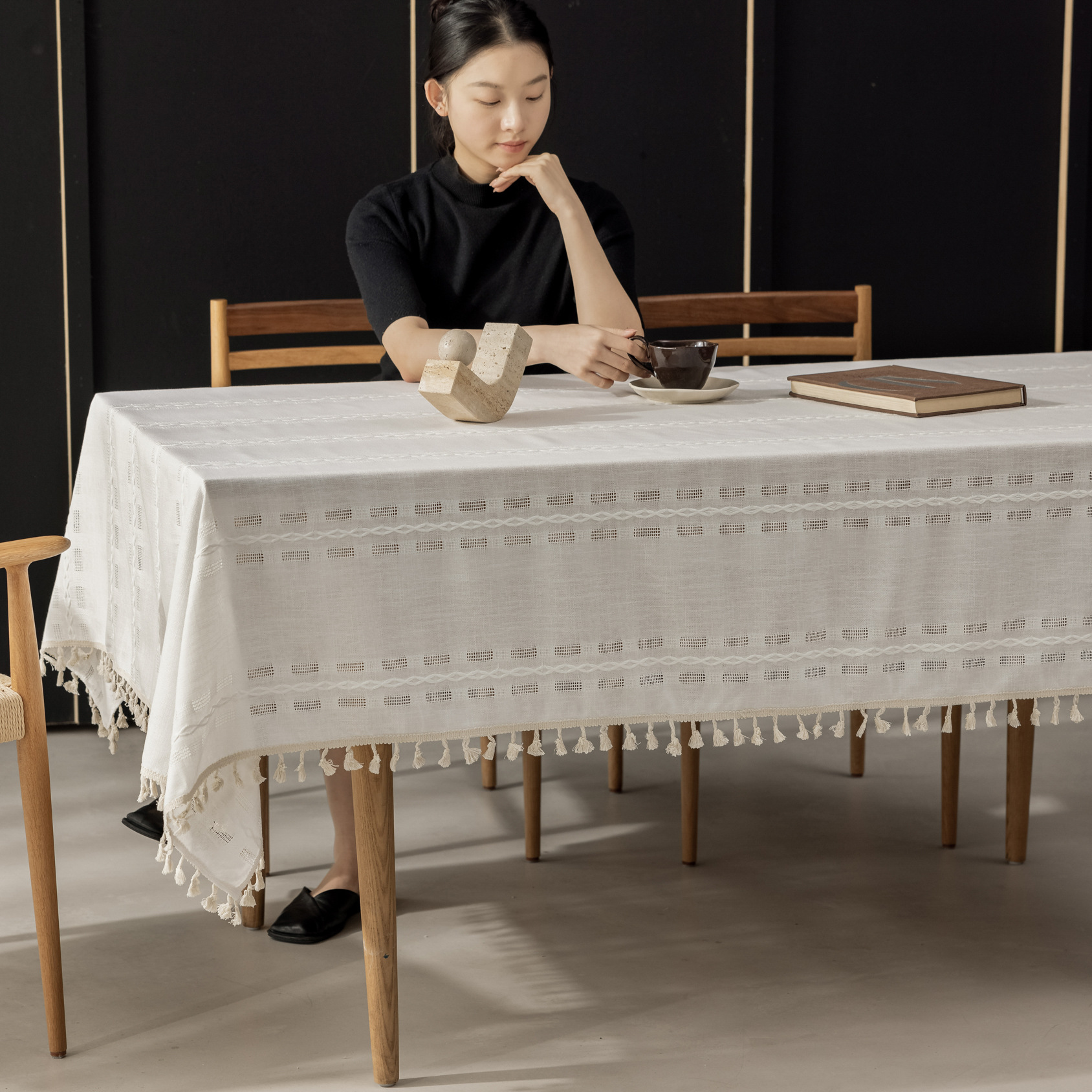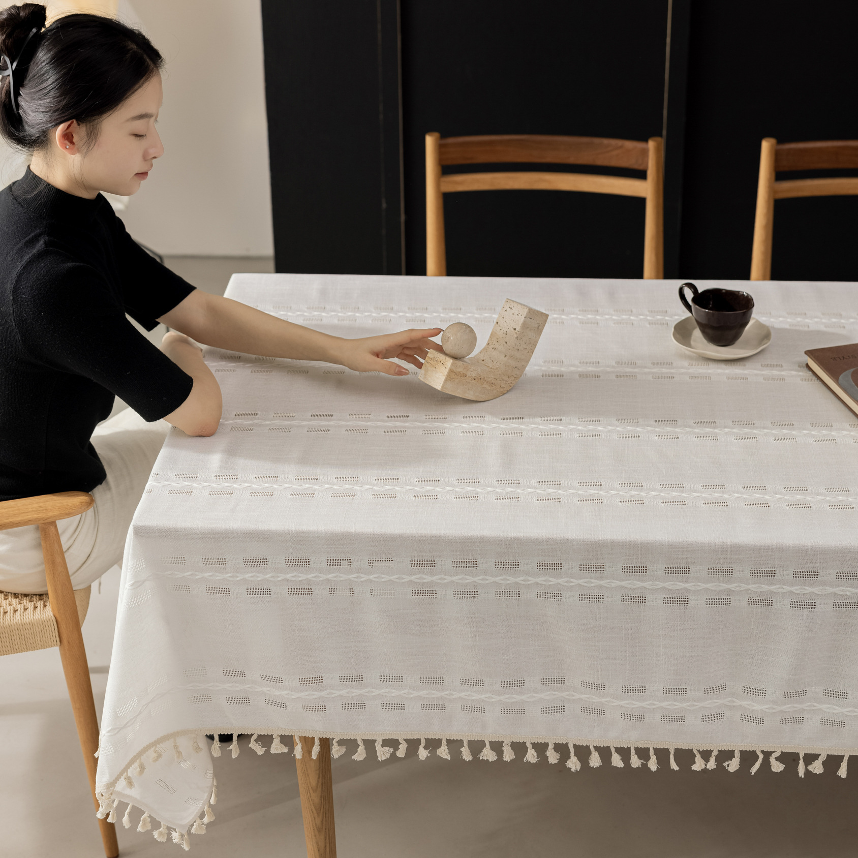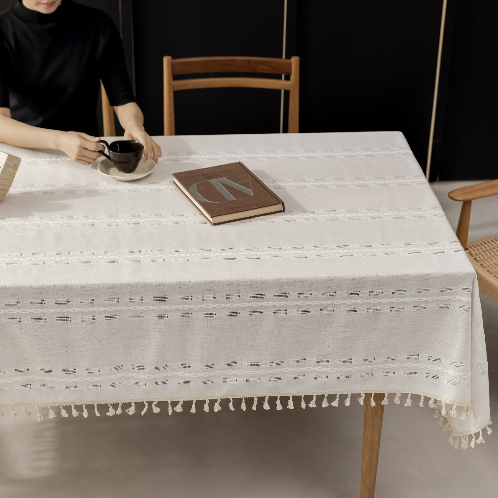 桌布深咖镂空美式乡村布艺高级条纹网红 ins长方形餐桌布跨境现货