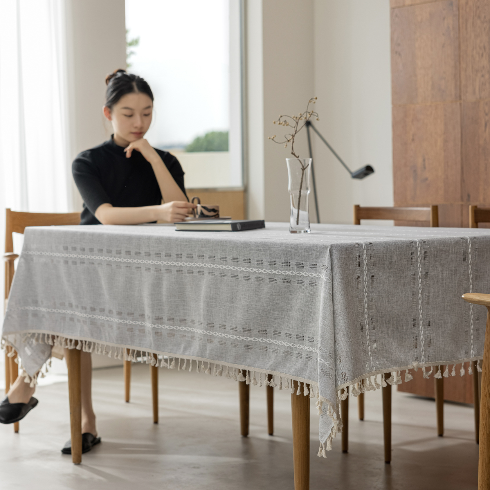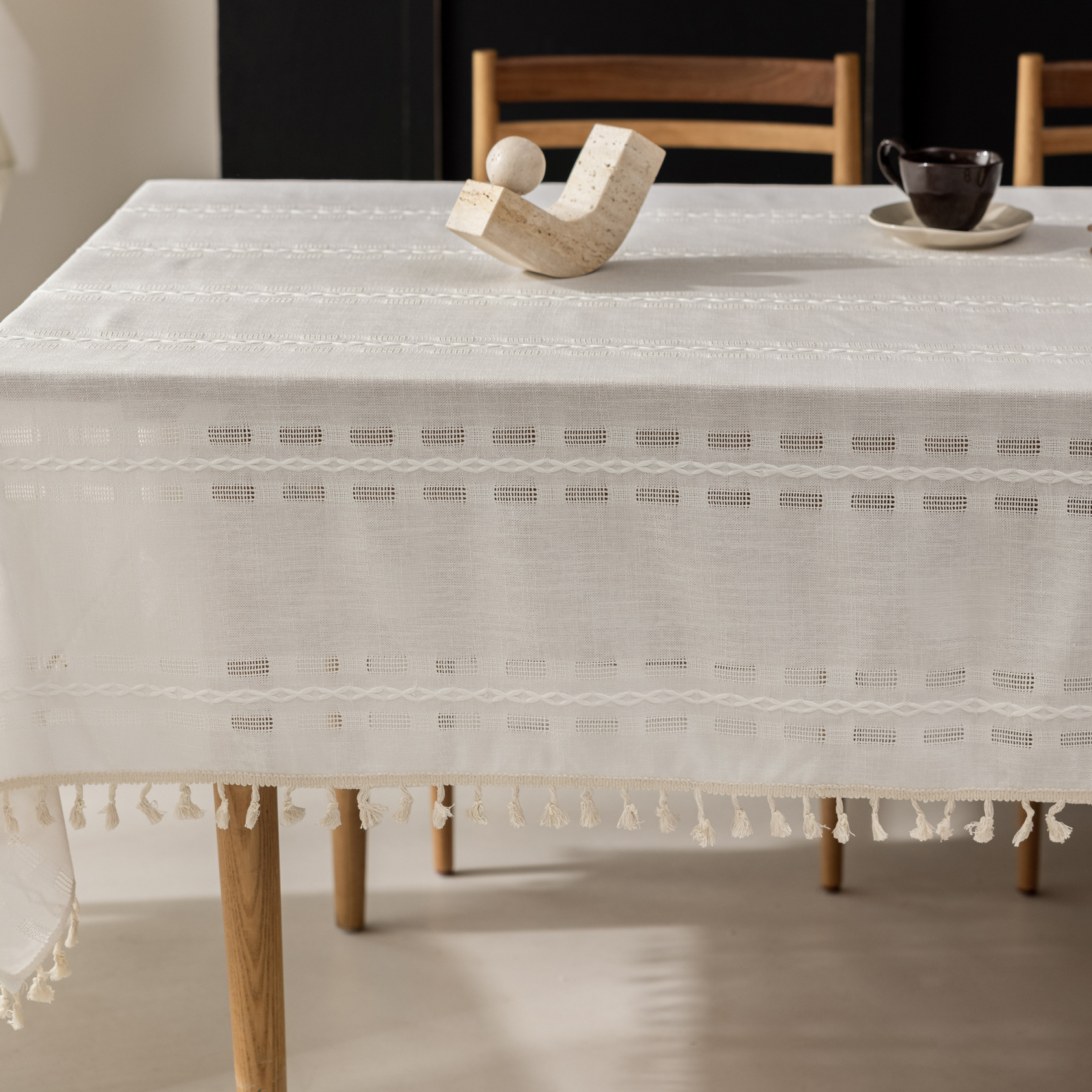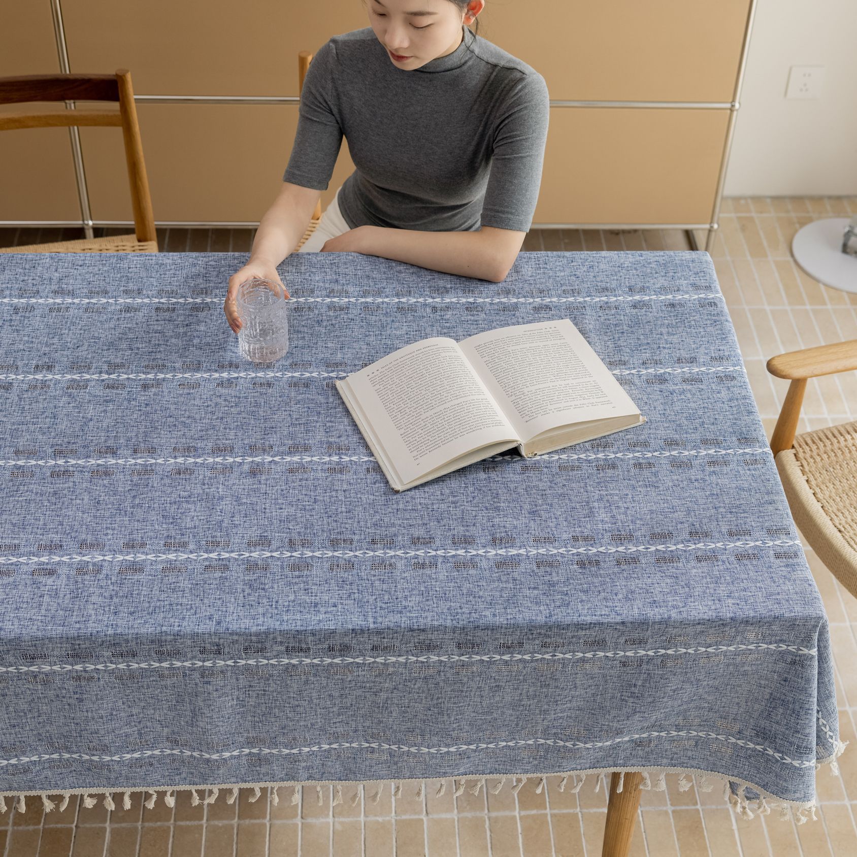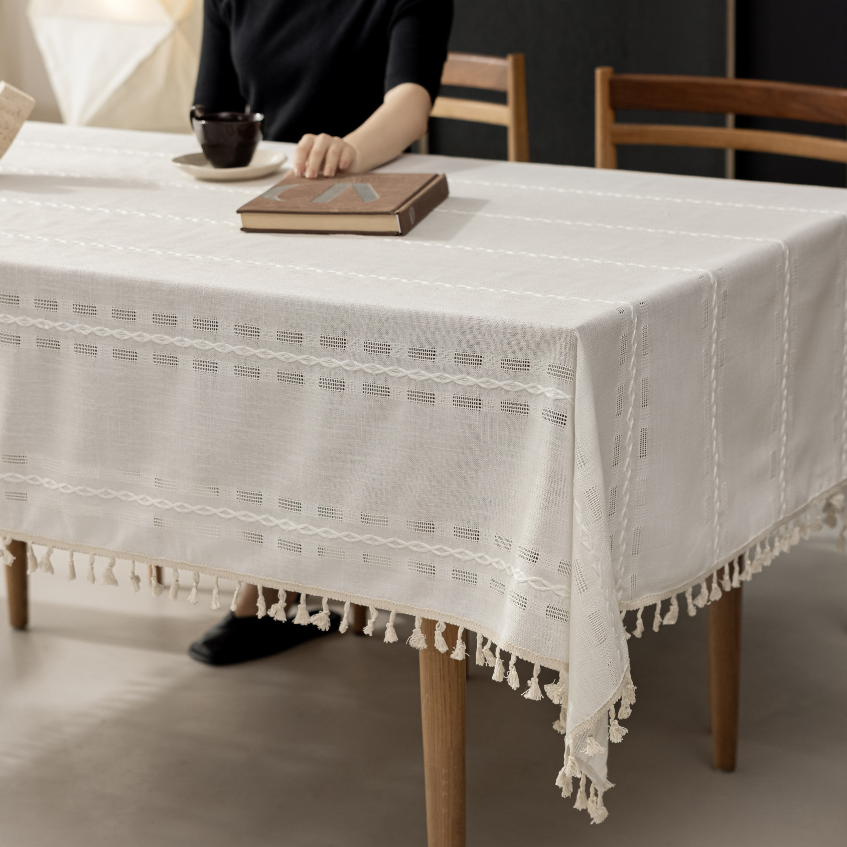 桌布深咖镂空美式乡村布艺高级条纹网红 ins长方形餐桌布跨境现货