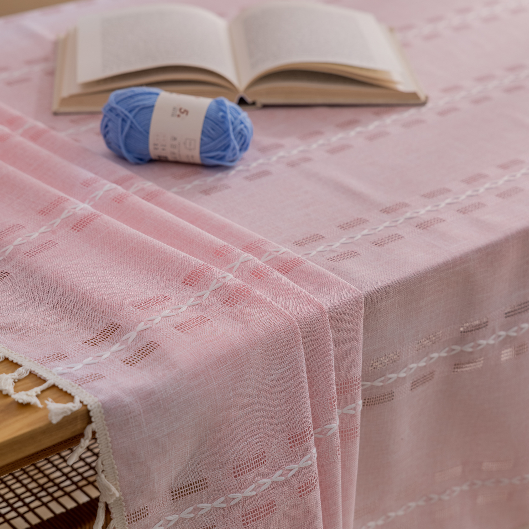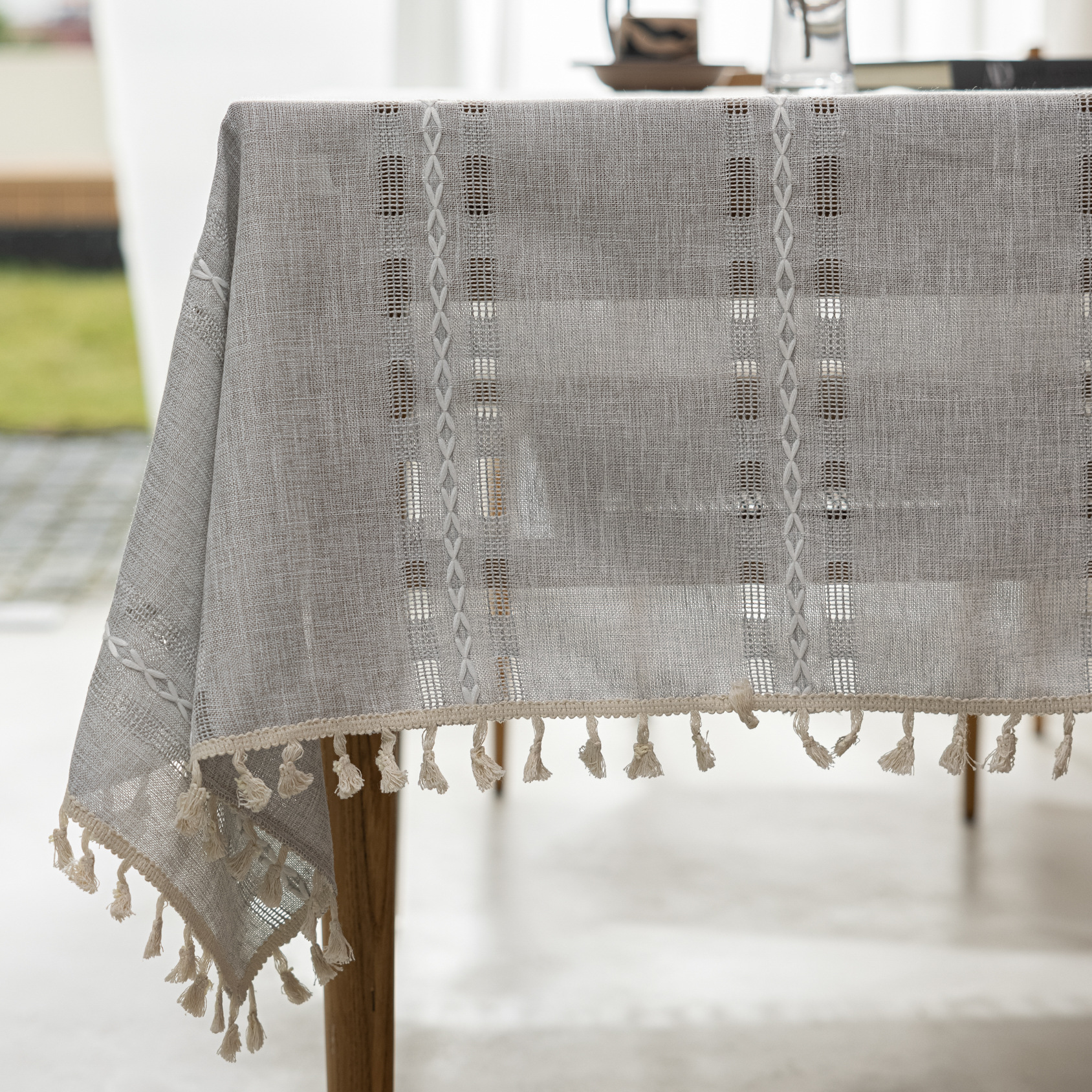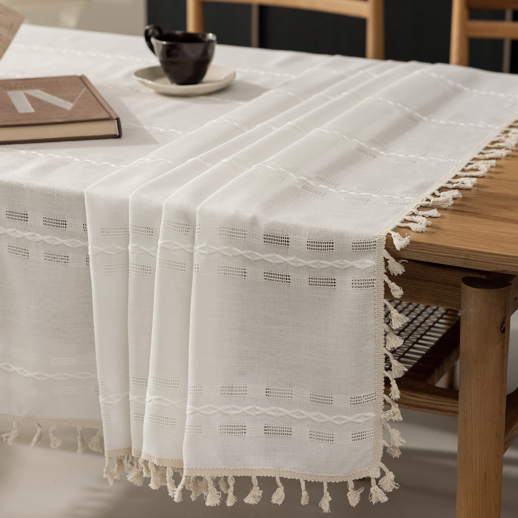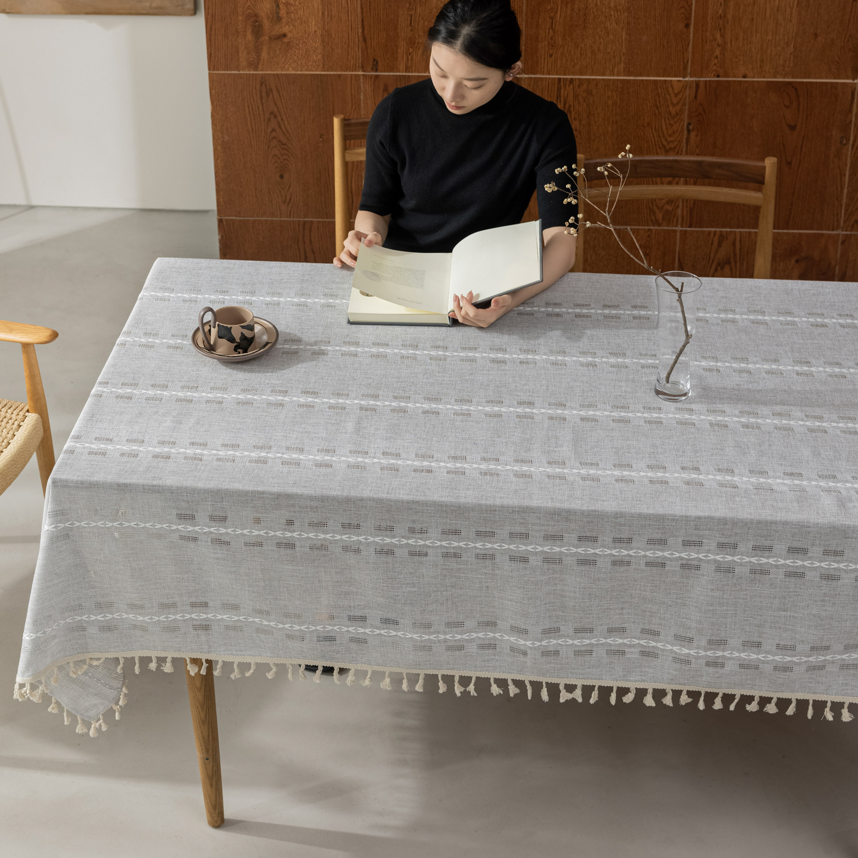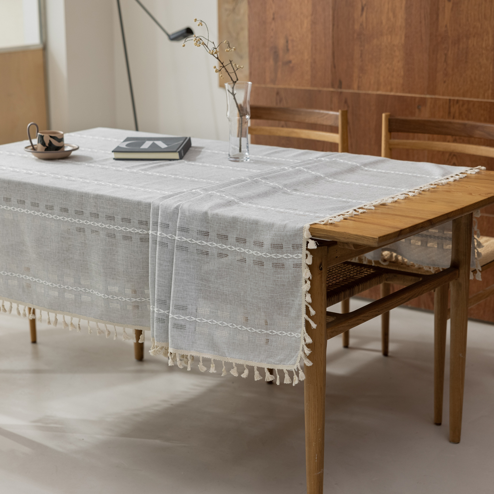 桌布深咖镂空美式乡村布艺高级条纹网红 ins长方形餐桌布跨境现货