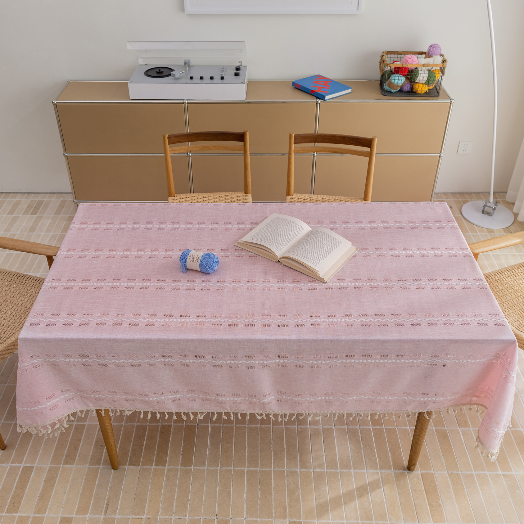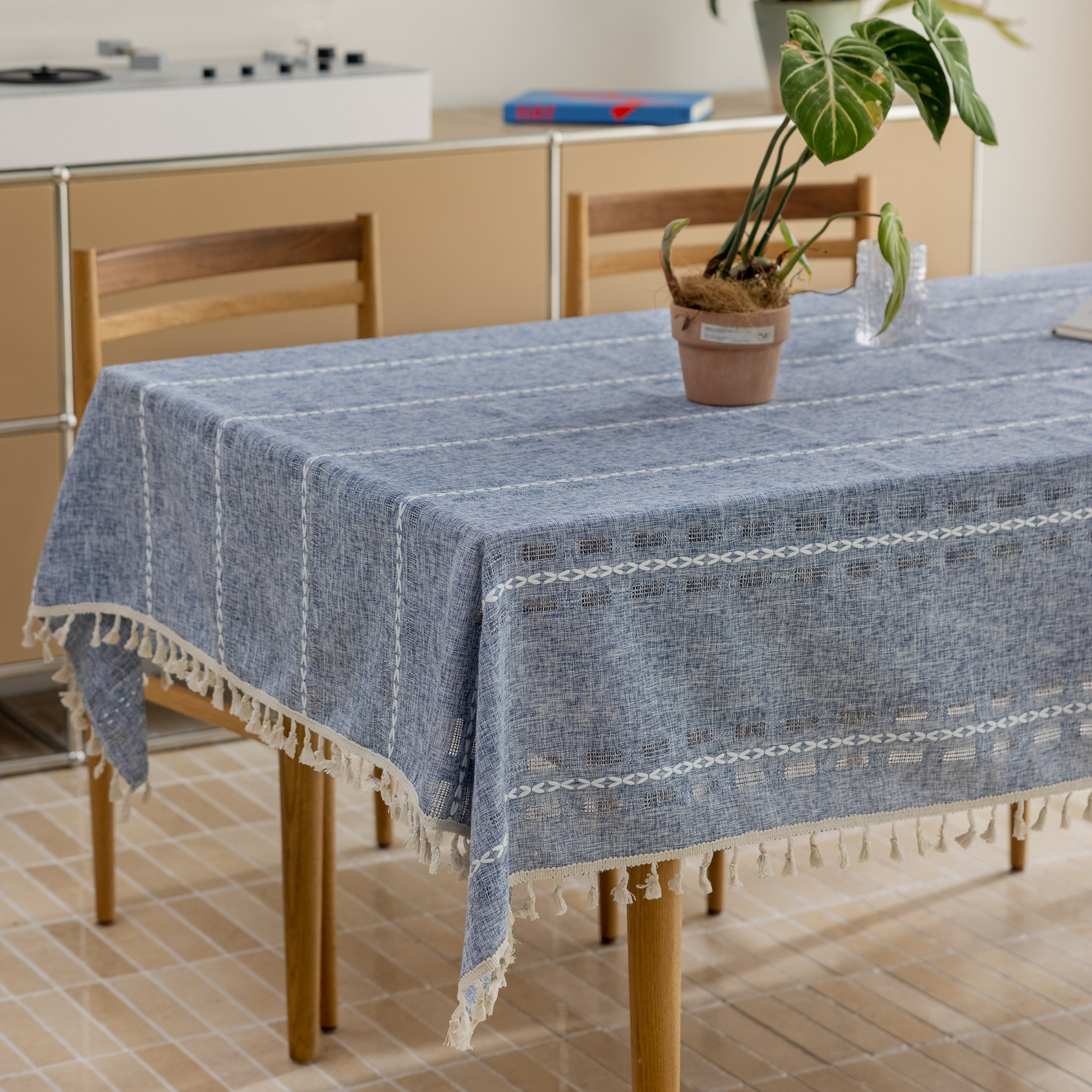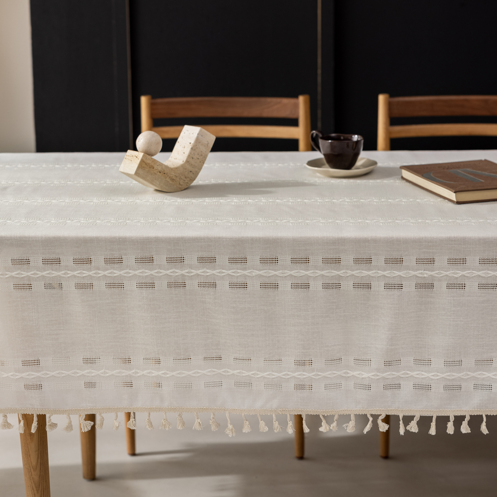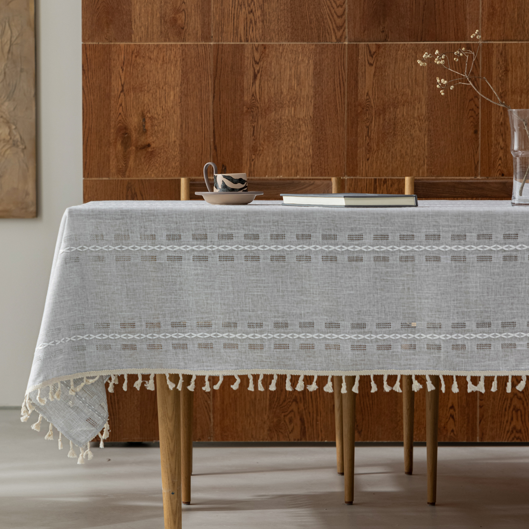 桌布深咖镂空美式乡村布艺高级条纹网红 ins长方形餐桌布跨境现货