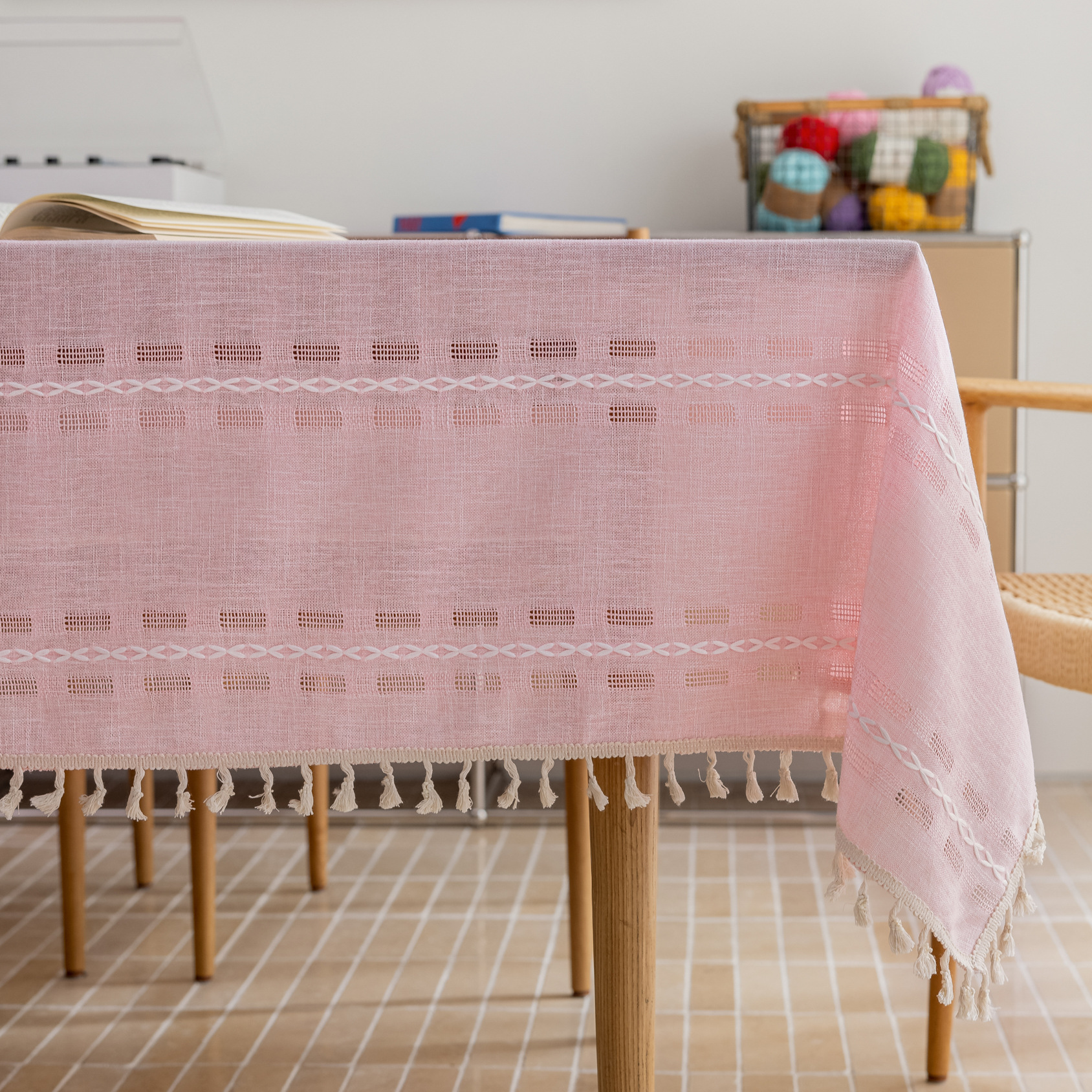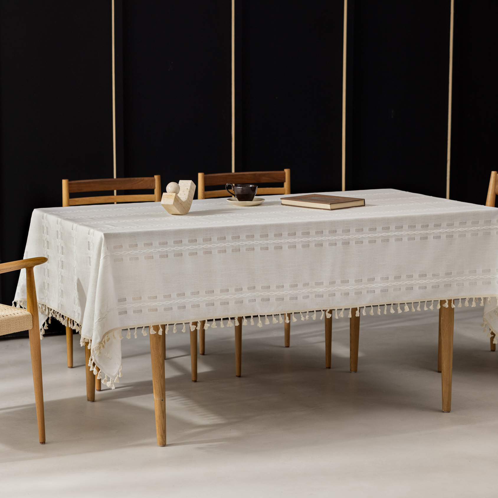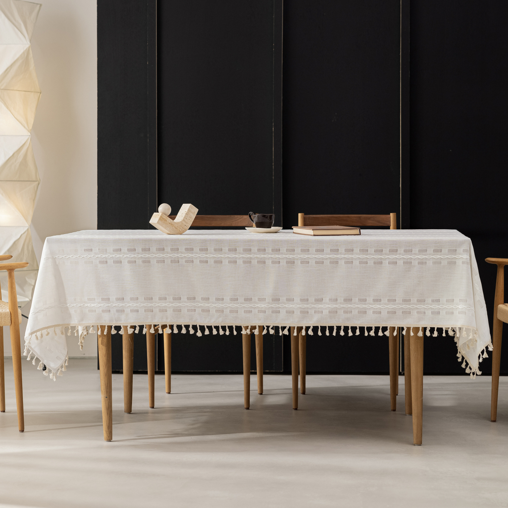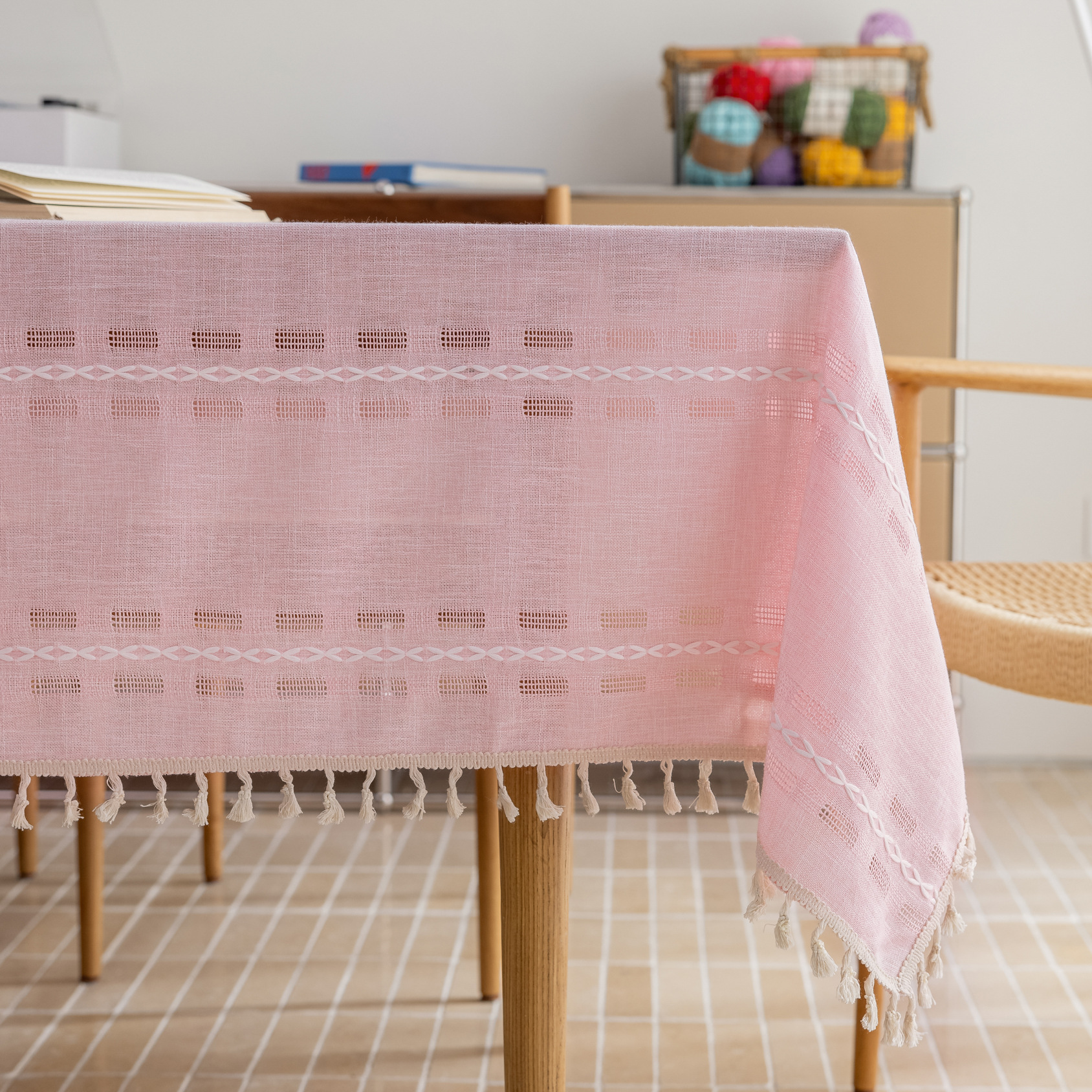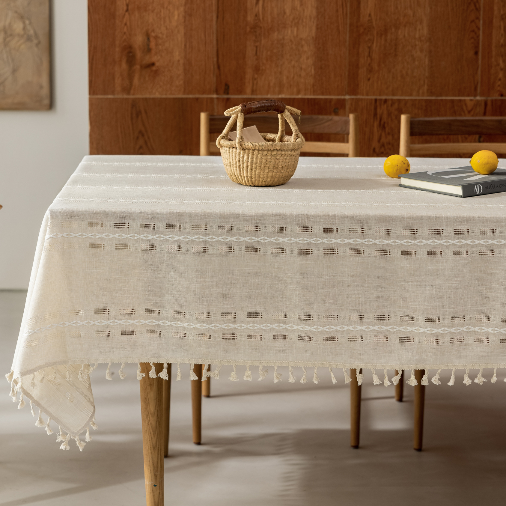 桌布深咖镂空美式乡村布艺高级条纹网红 ins长方形餐桌布跨境现货