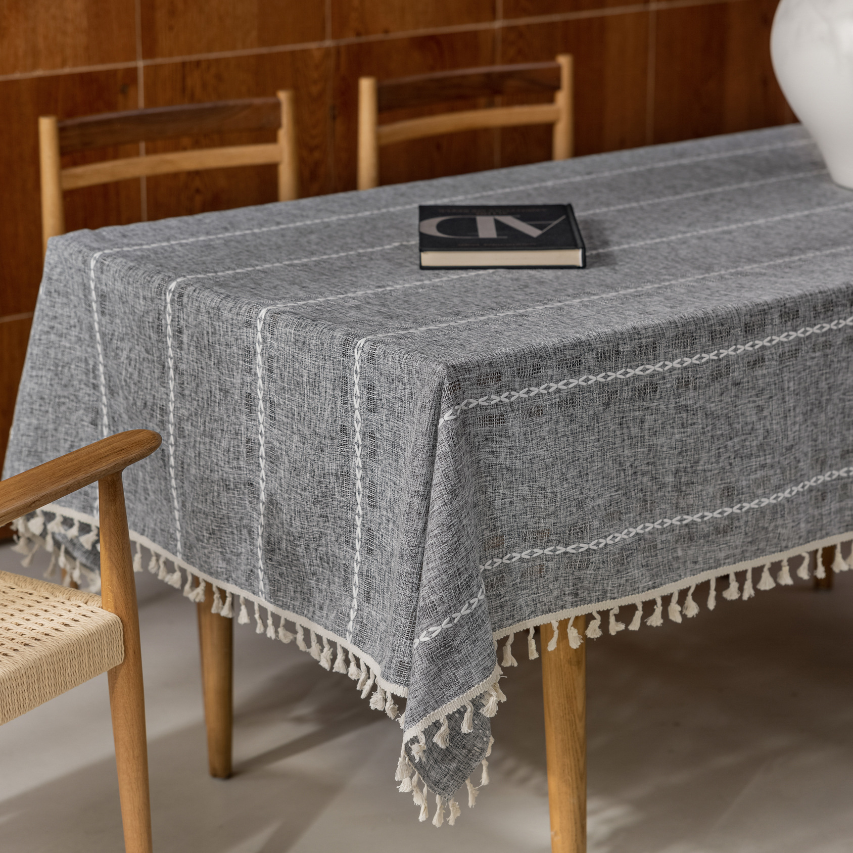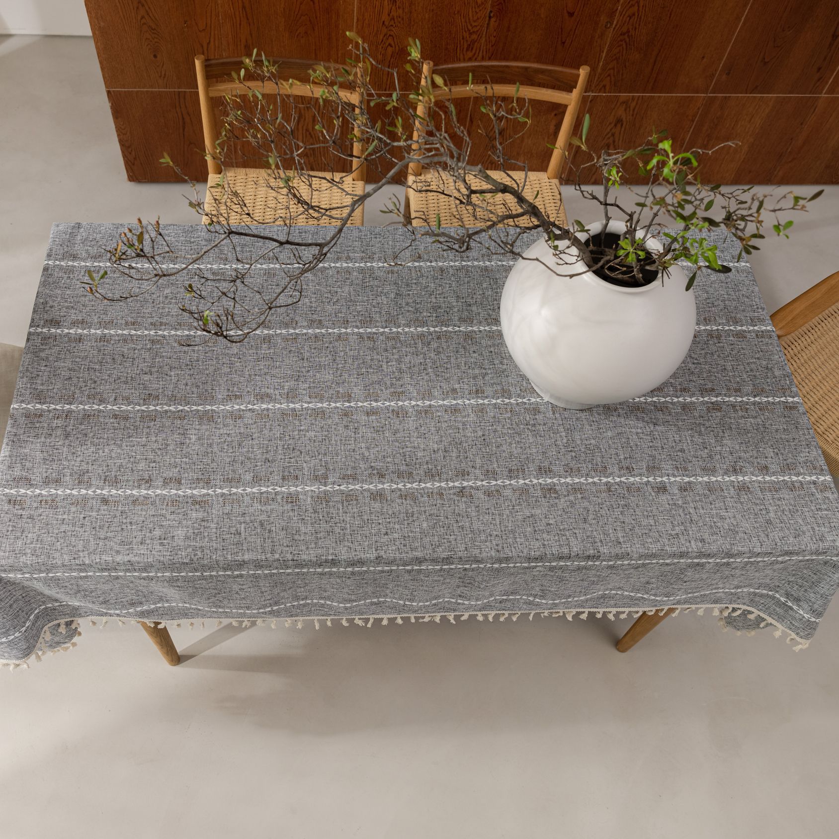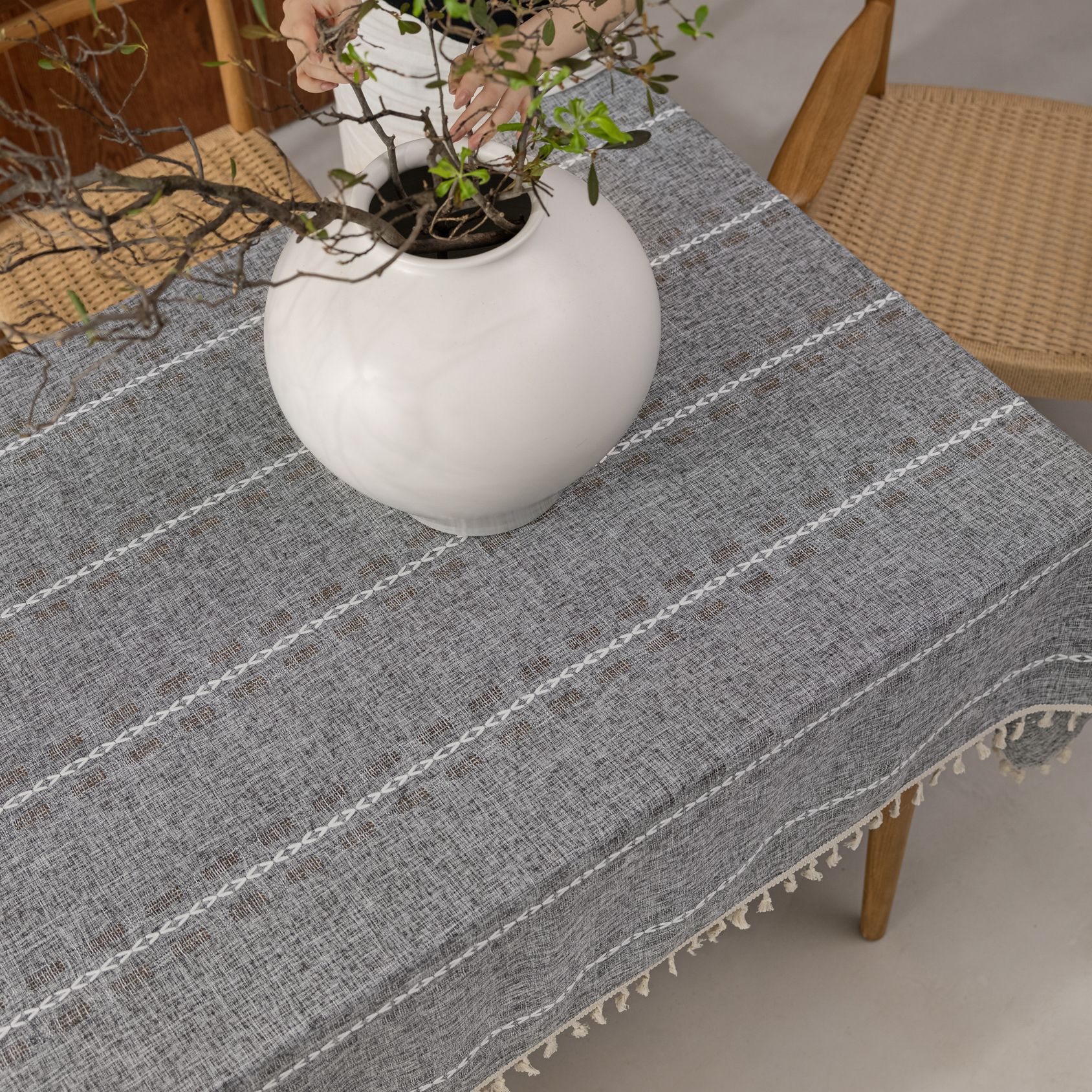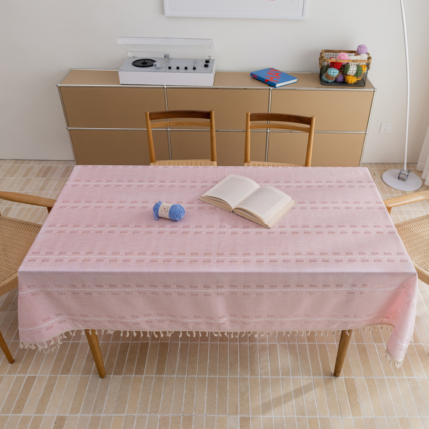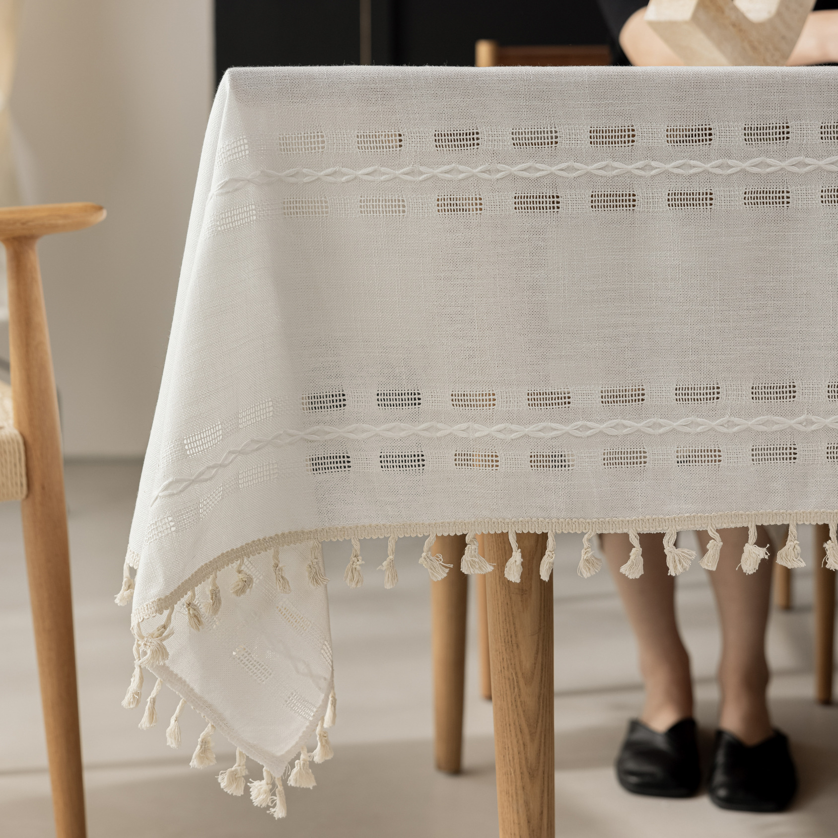 桌布深咖镂空美式乡村布艺高级条纹网红 ins长方形餐桌布跨境现货