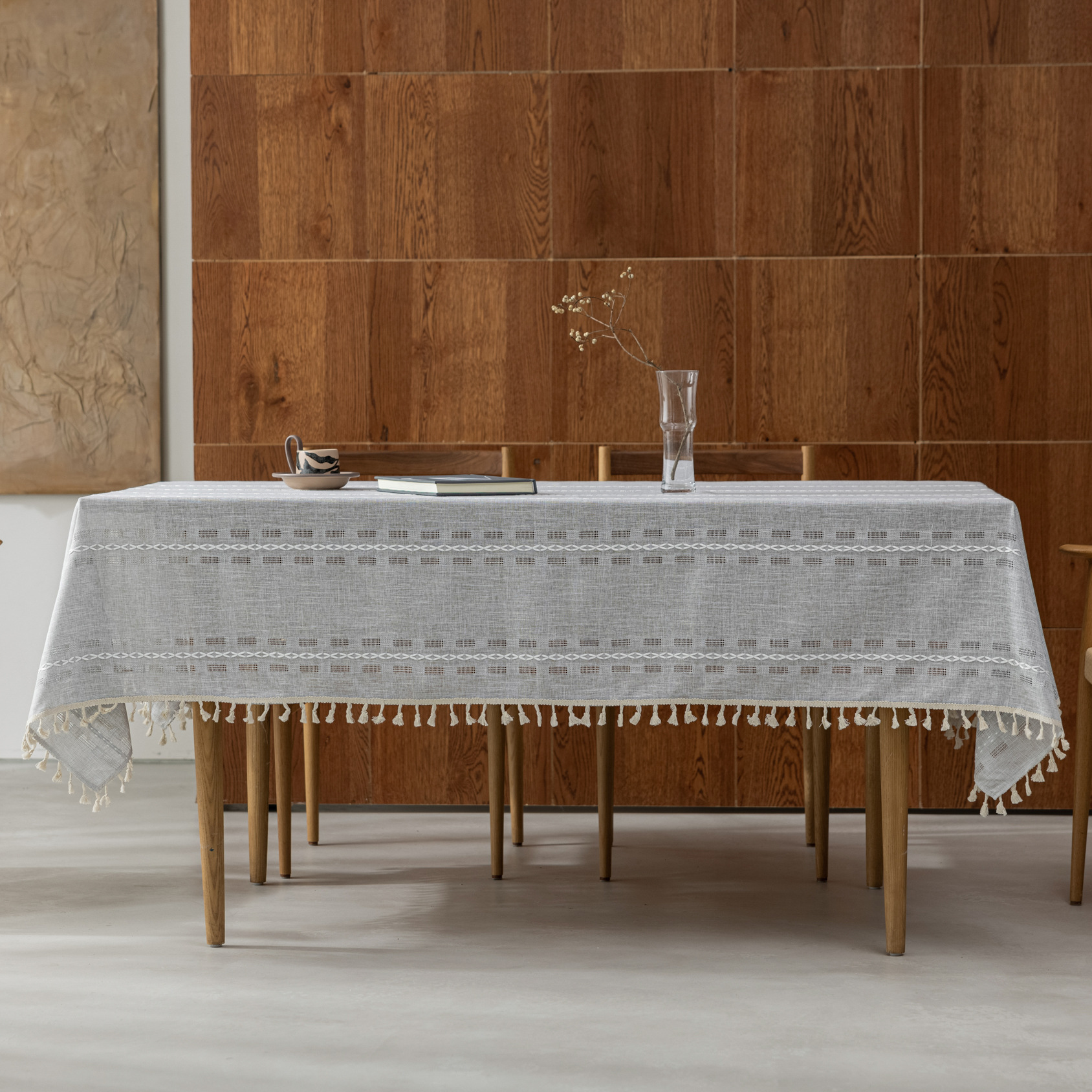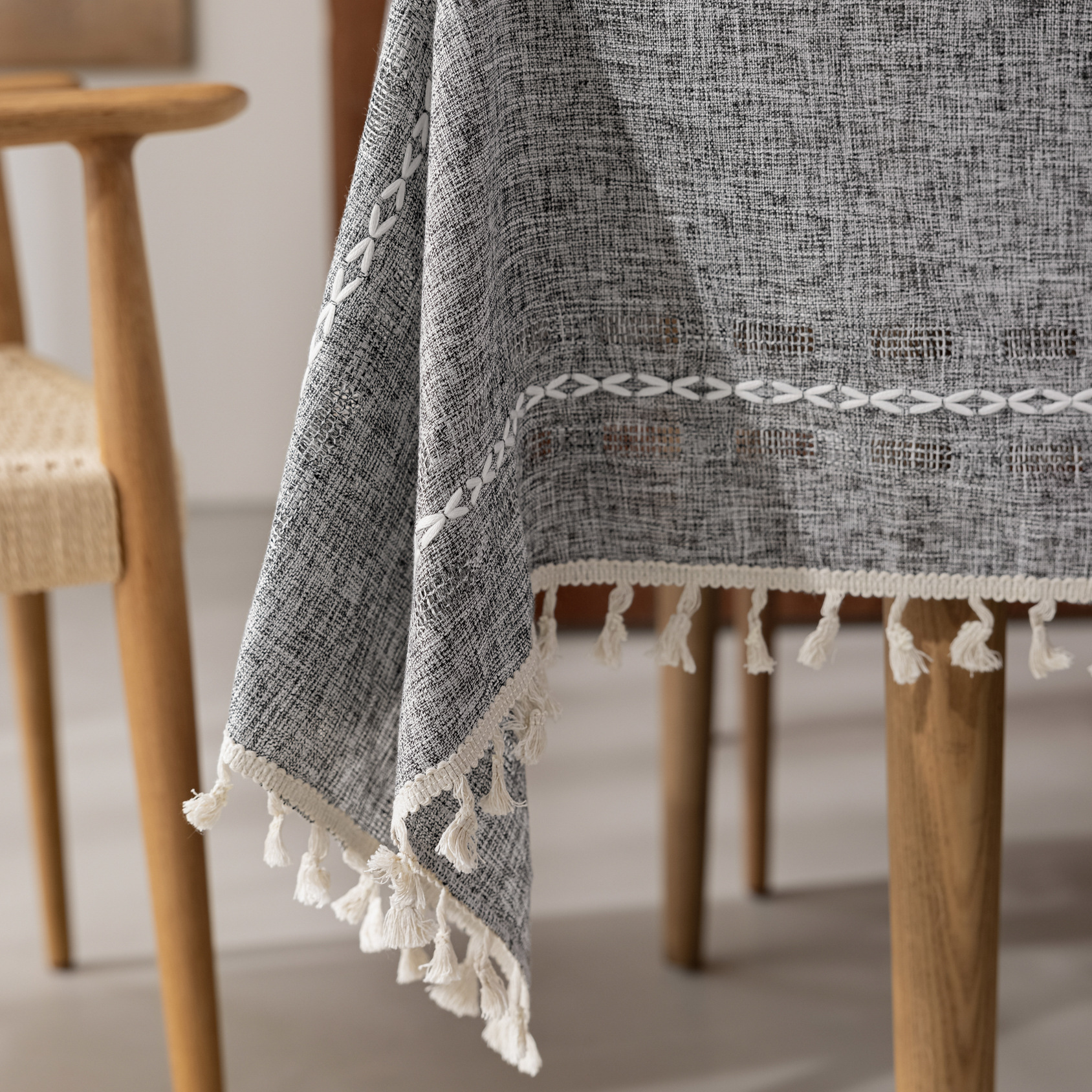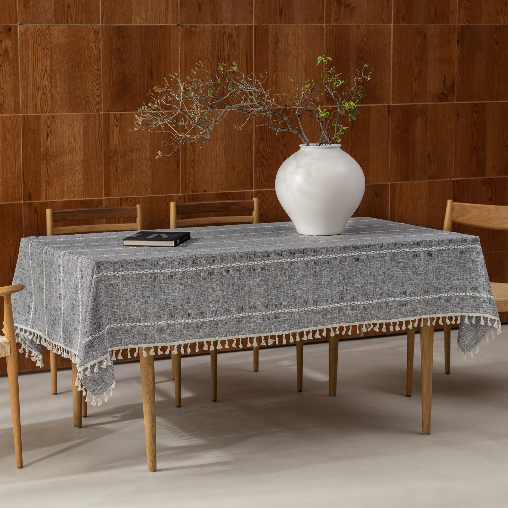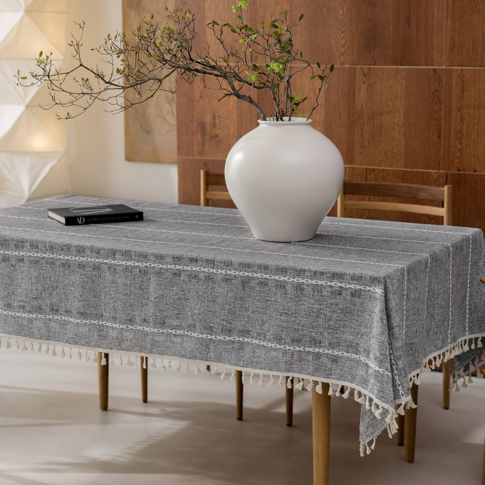桌布深咖镂空美式乡村布艺高级条纹网红 ins长方形餐桌布跨境现货