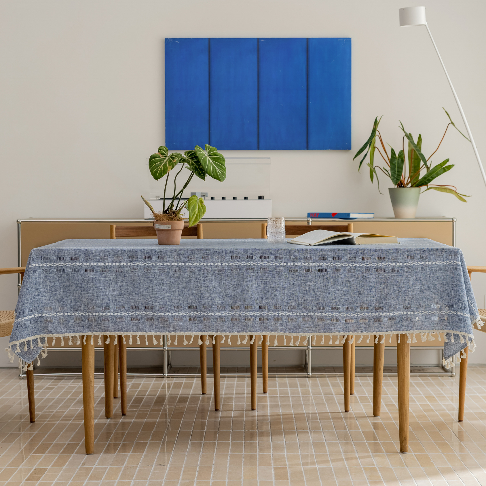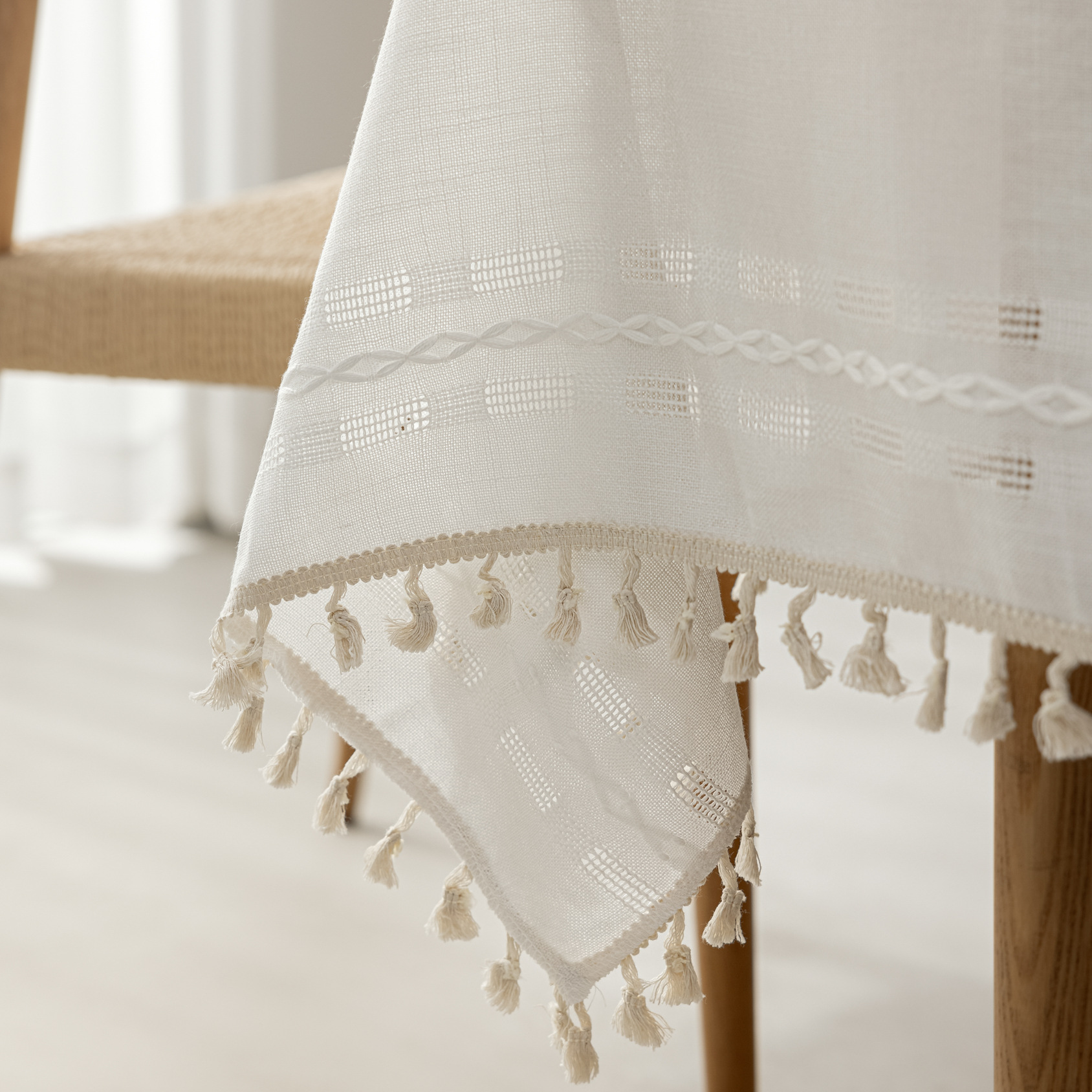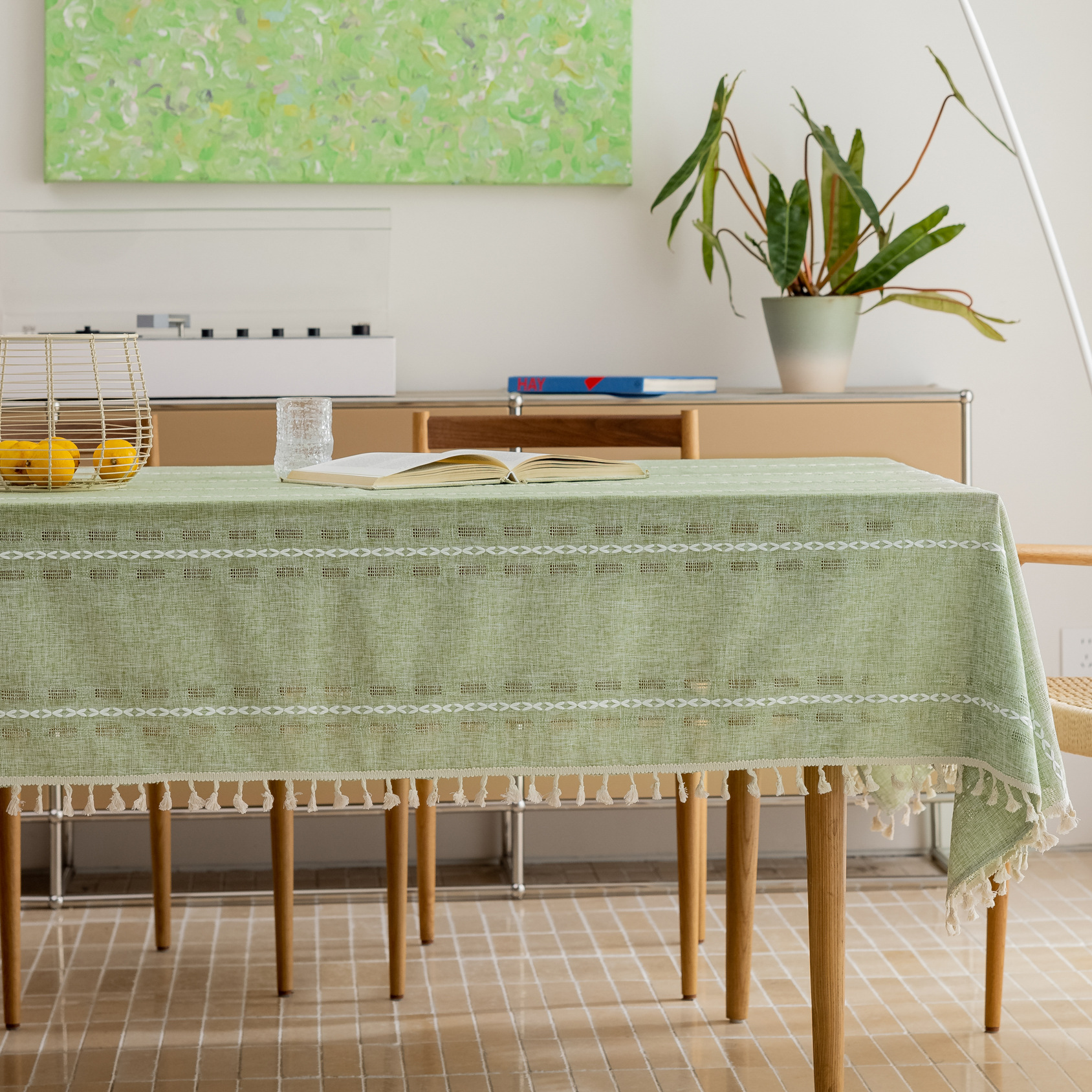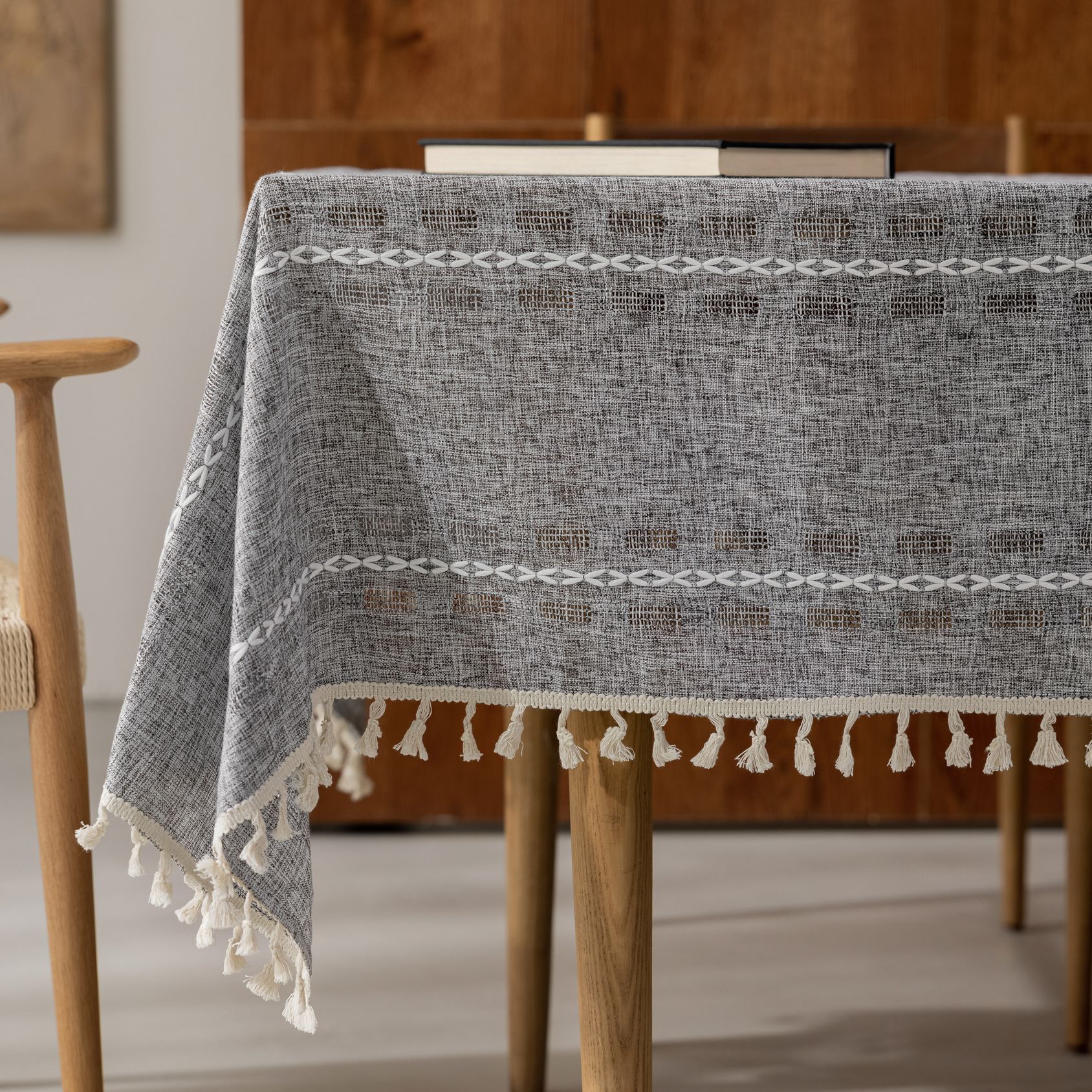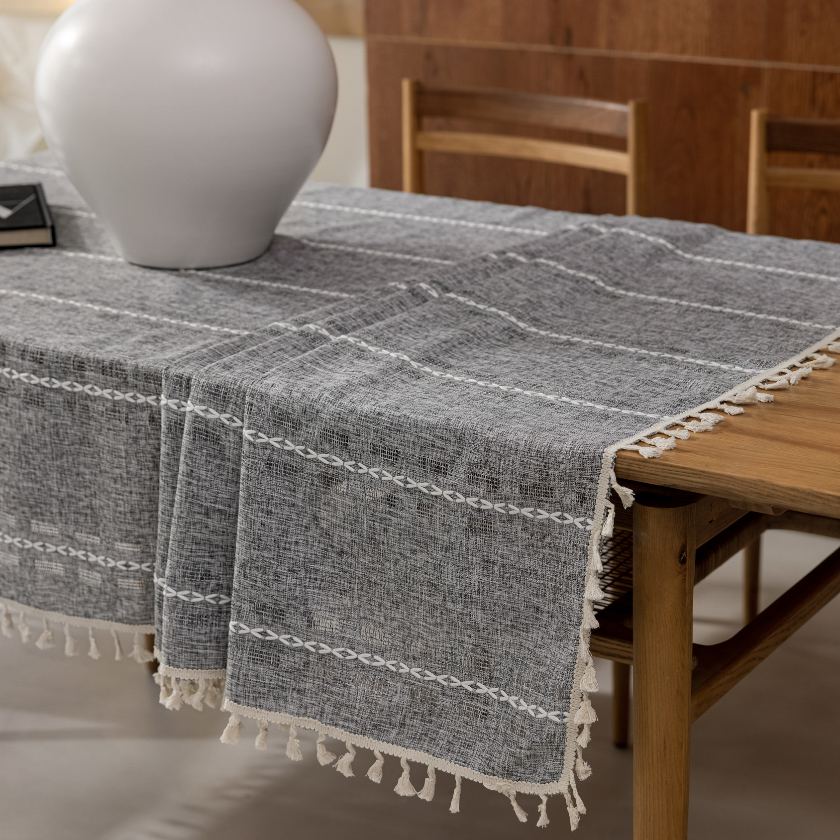 桌布深咖镂空美式乡村布艺高级条纹网红 ins长方形餐桌布跨境现货