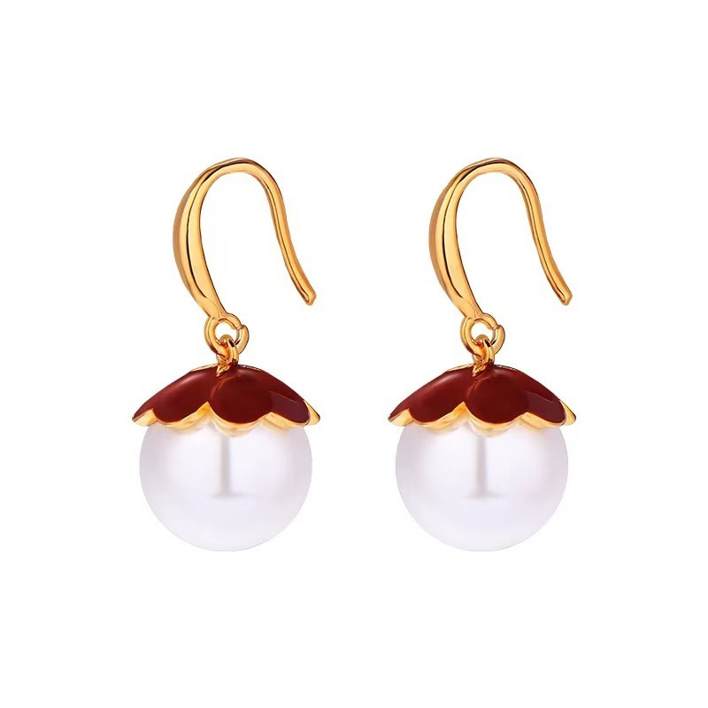 轻奢小众高级感设计师款滴釉耳环耳饰真金电镀施家澳白珍珠耳钉女