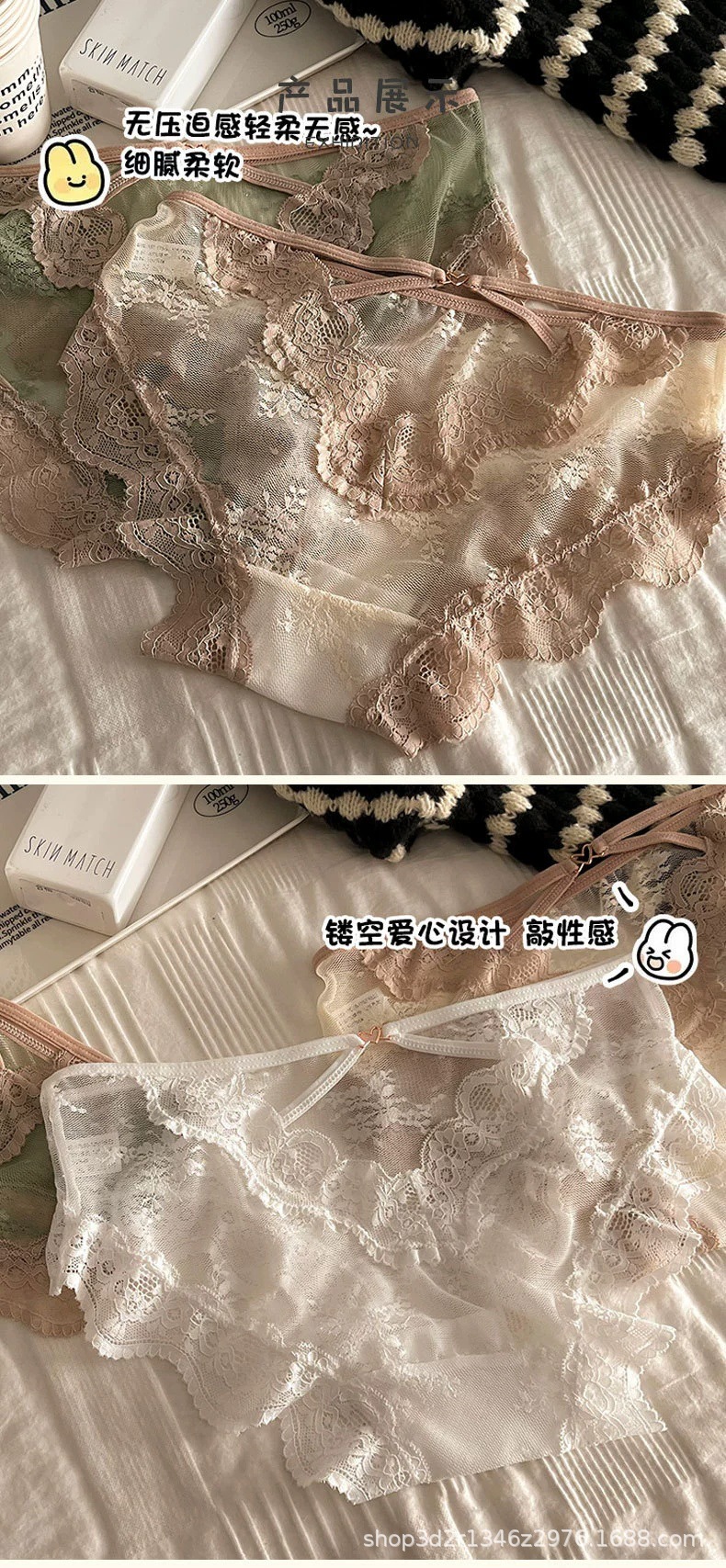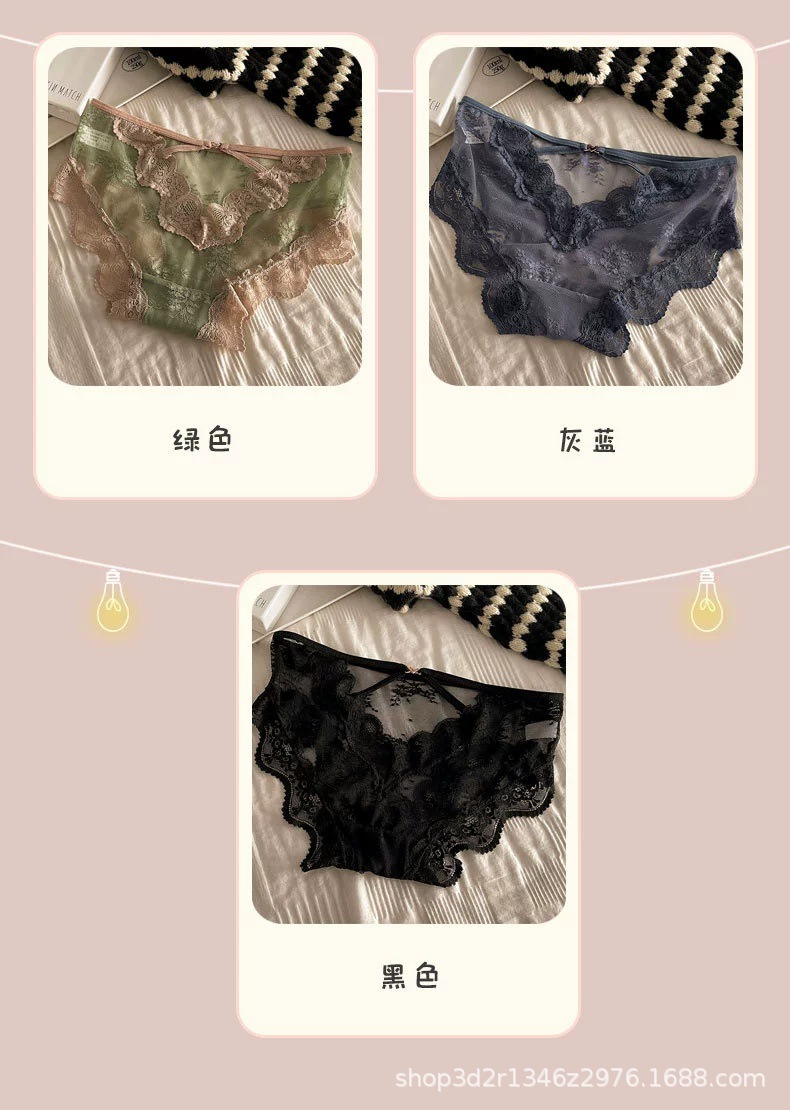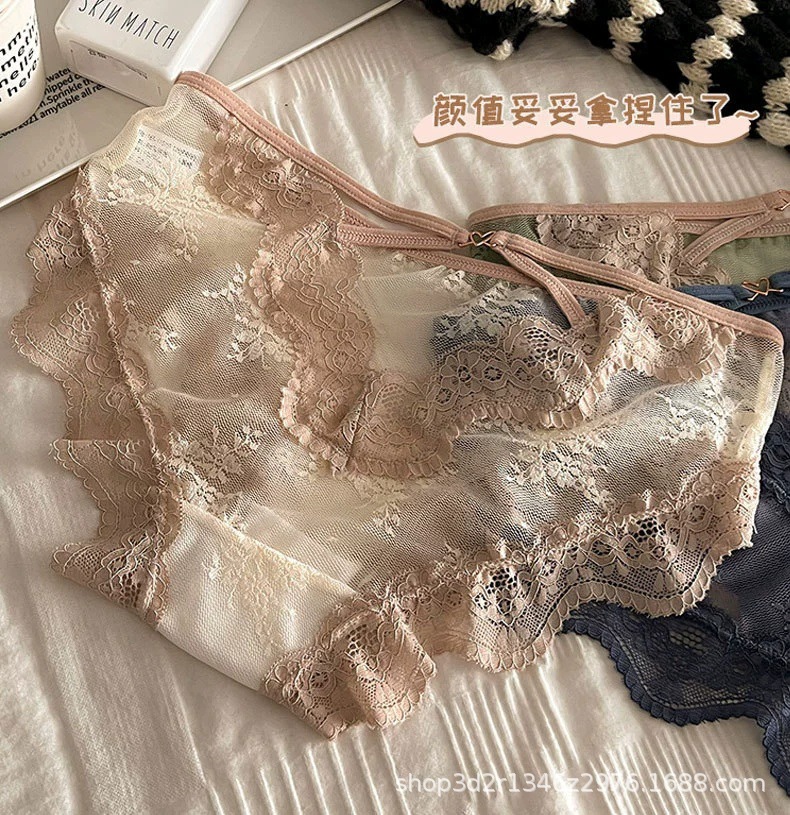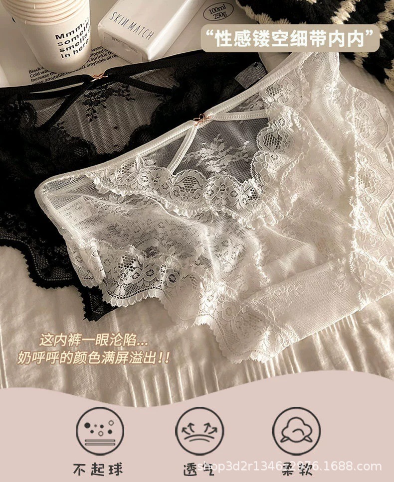 性感交叉镂空透明提花纯欲风蕾丝内裤女低腰抗J透气网纱细带裤头
