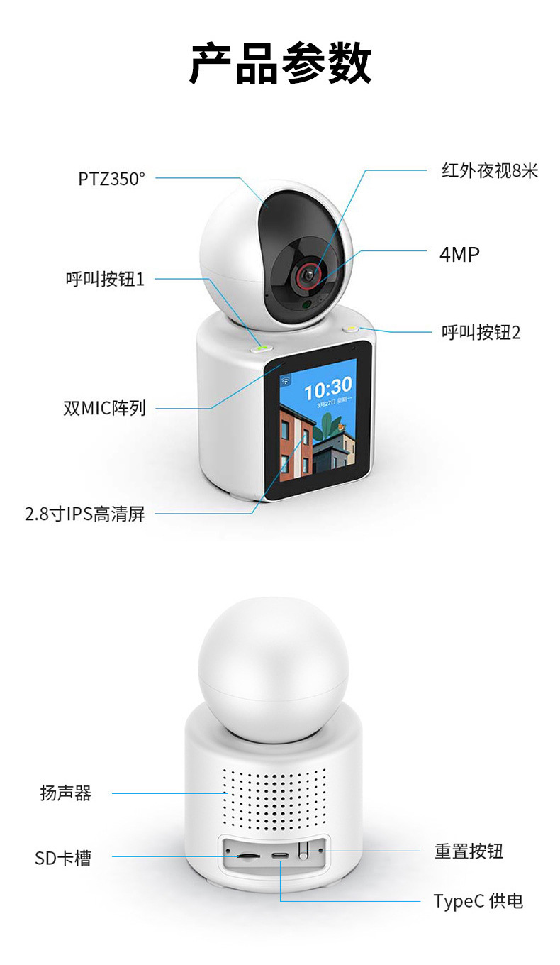老人可视摄像头360度家用监控看护老人儿童远程一键呼叫婴儿监护