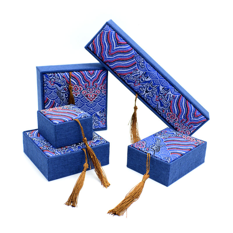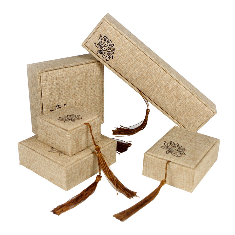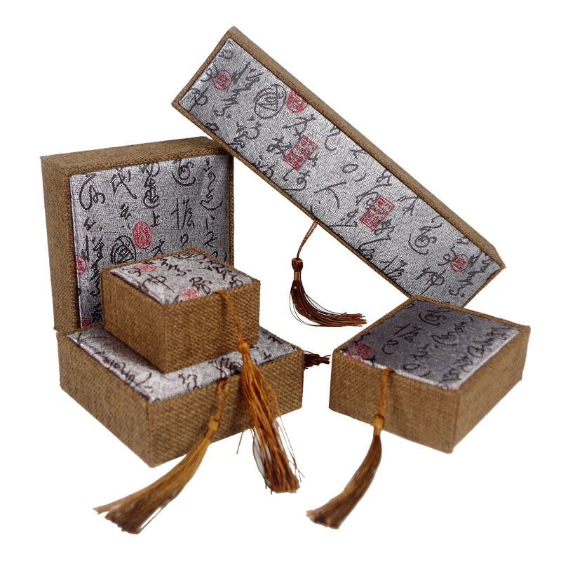 复古麻布首饰盒珠宝戒指盒红色文玩手串盒手镯吊坠项链包装盒批发