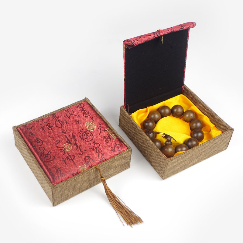古风流苏铜钱麻布首饰盒包装盒礼品锦盒佛珠手串手镯黄金收纳盒