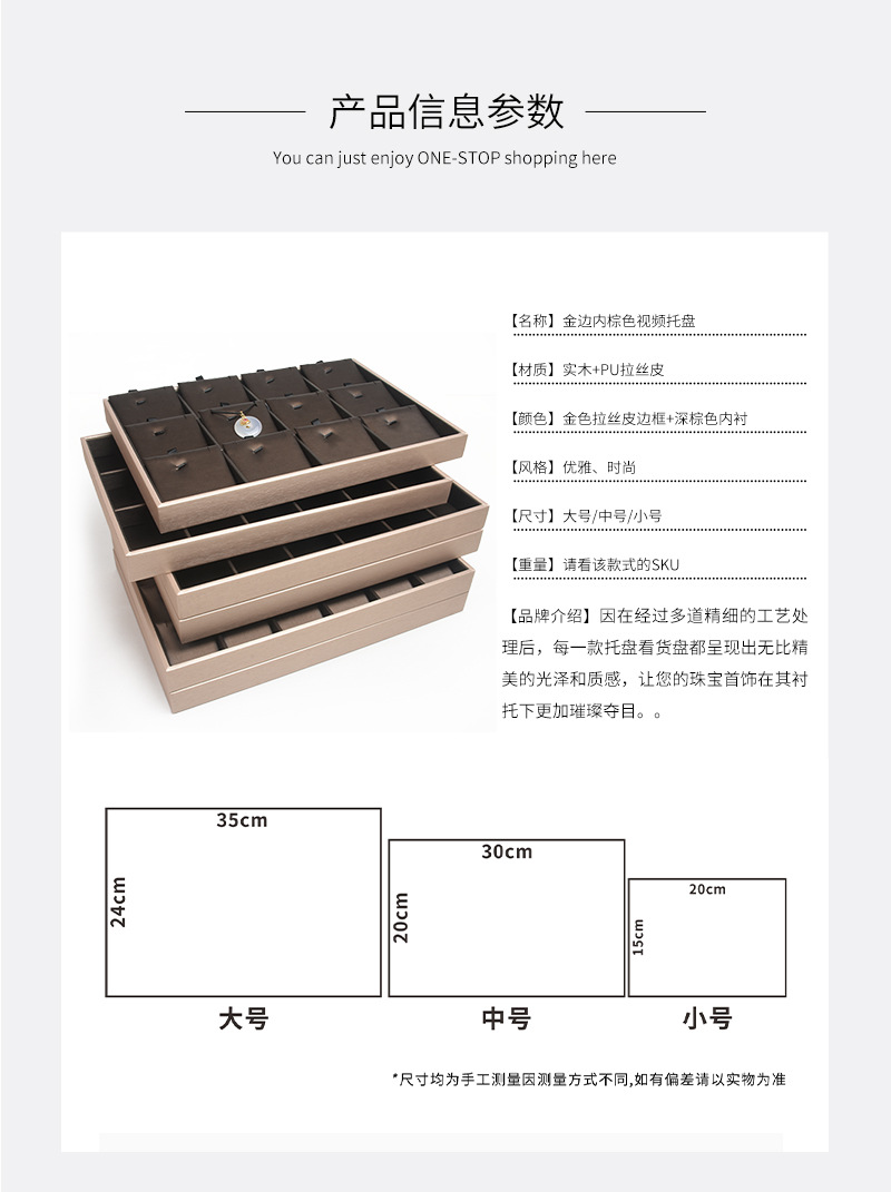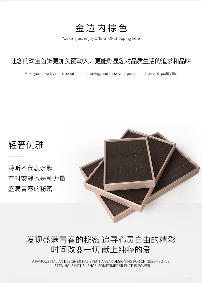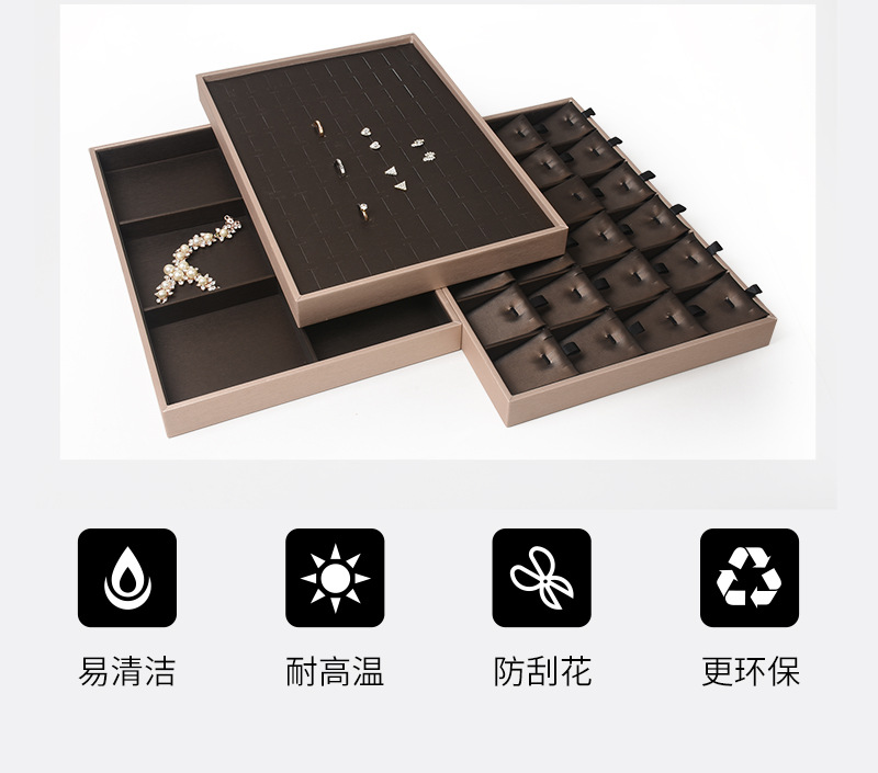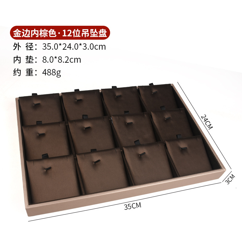 pu皮拉丝金边内棕色首饰看货展示托盘戒指挂件手镯吊坠手串展示盘