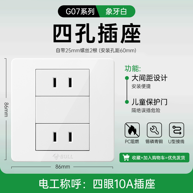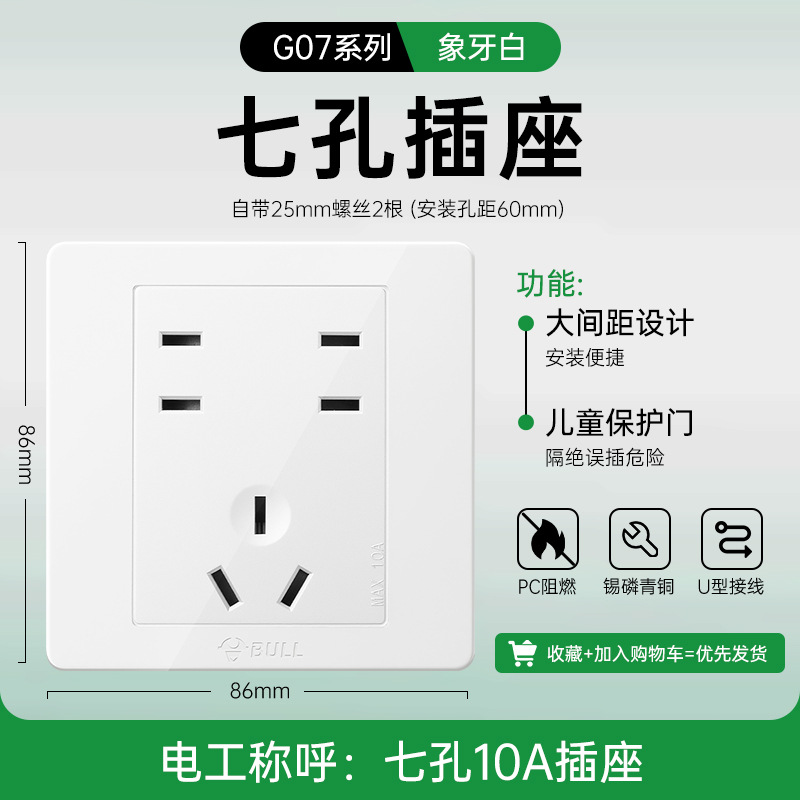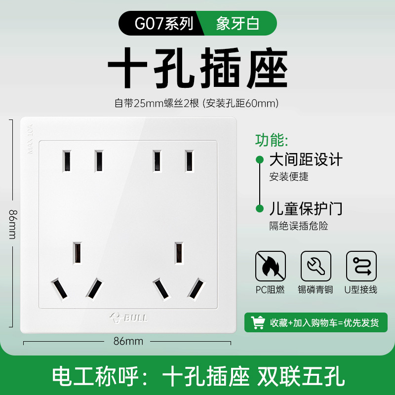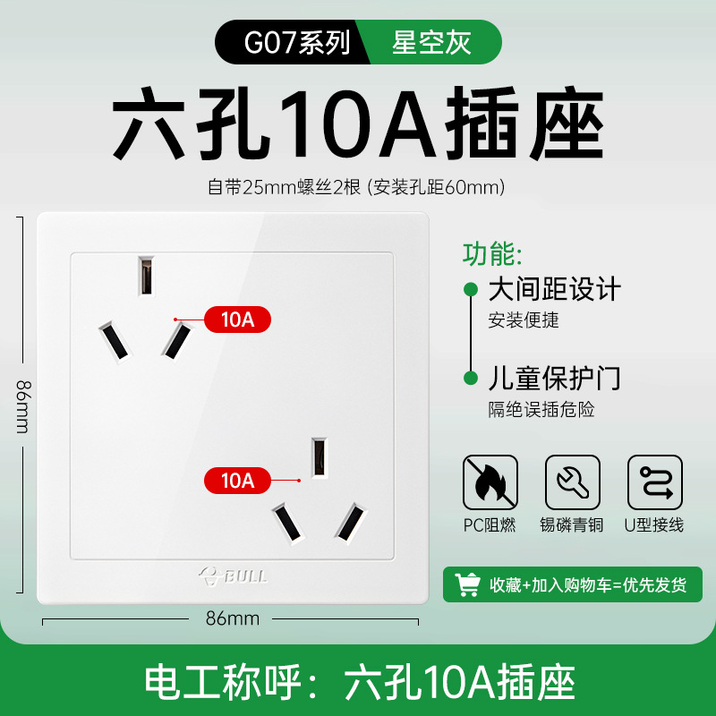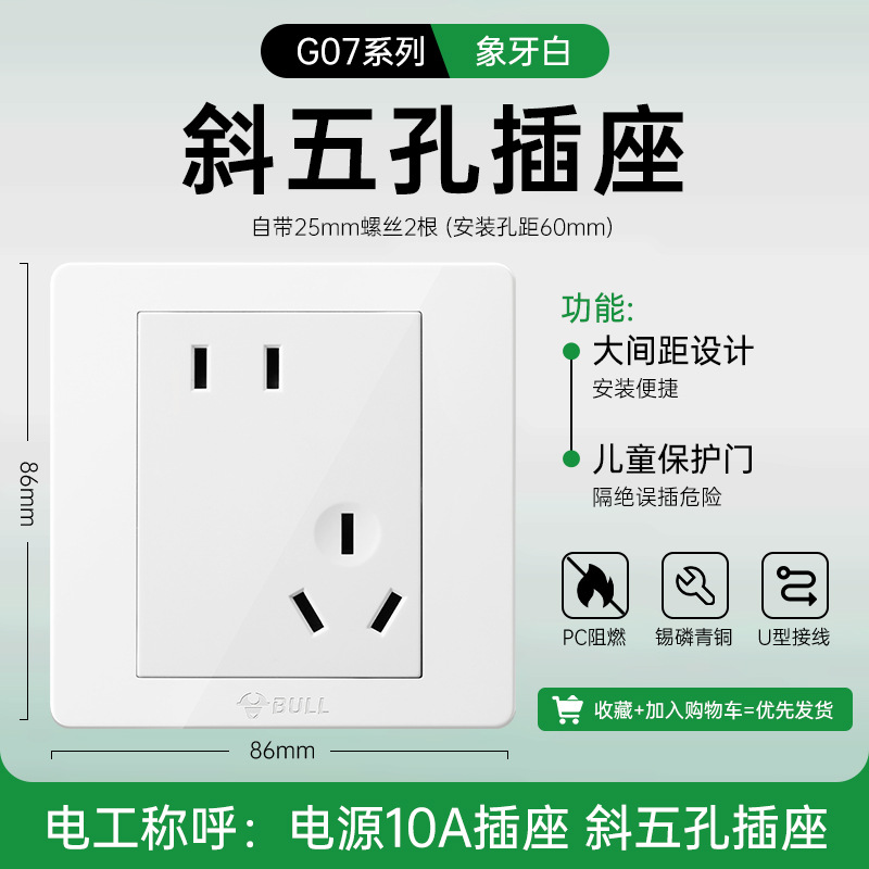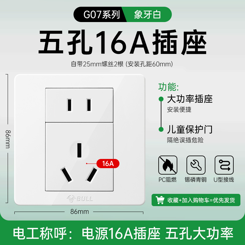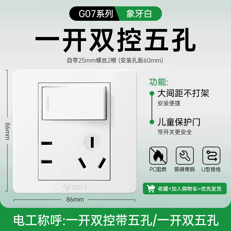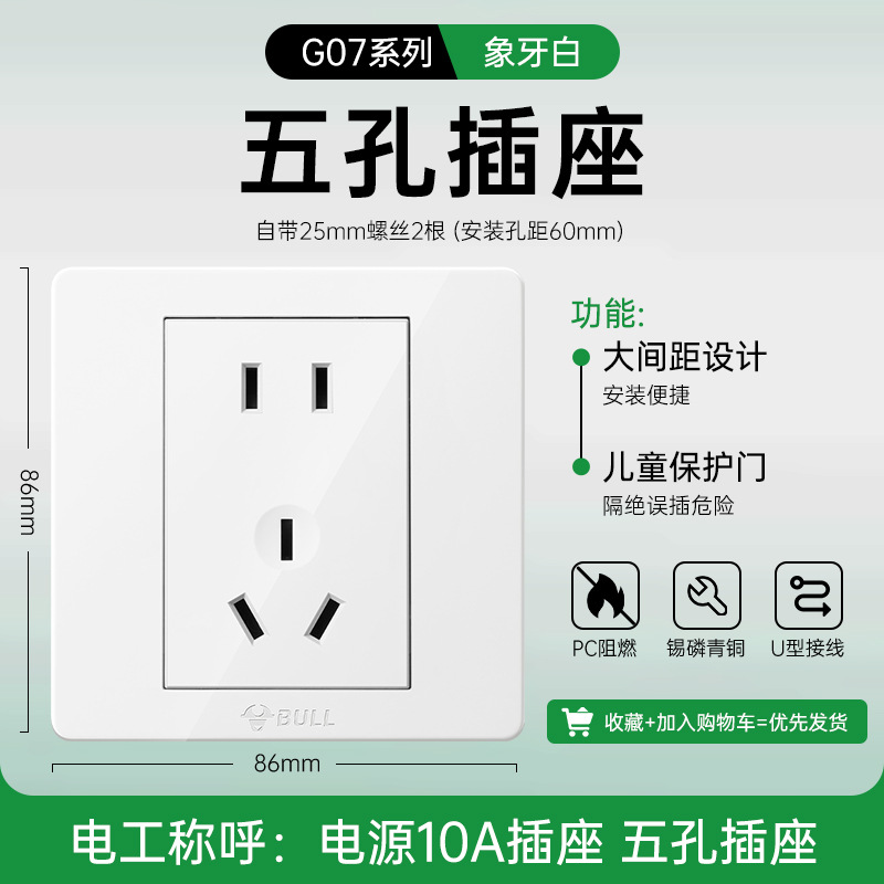 公牛开关插座面板86型暗装五孔家用电源5孔开关插坐86墙壁开关座