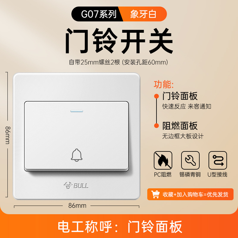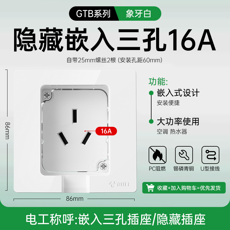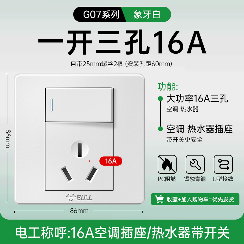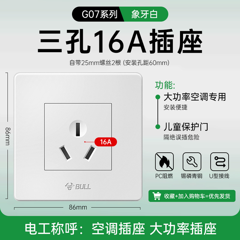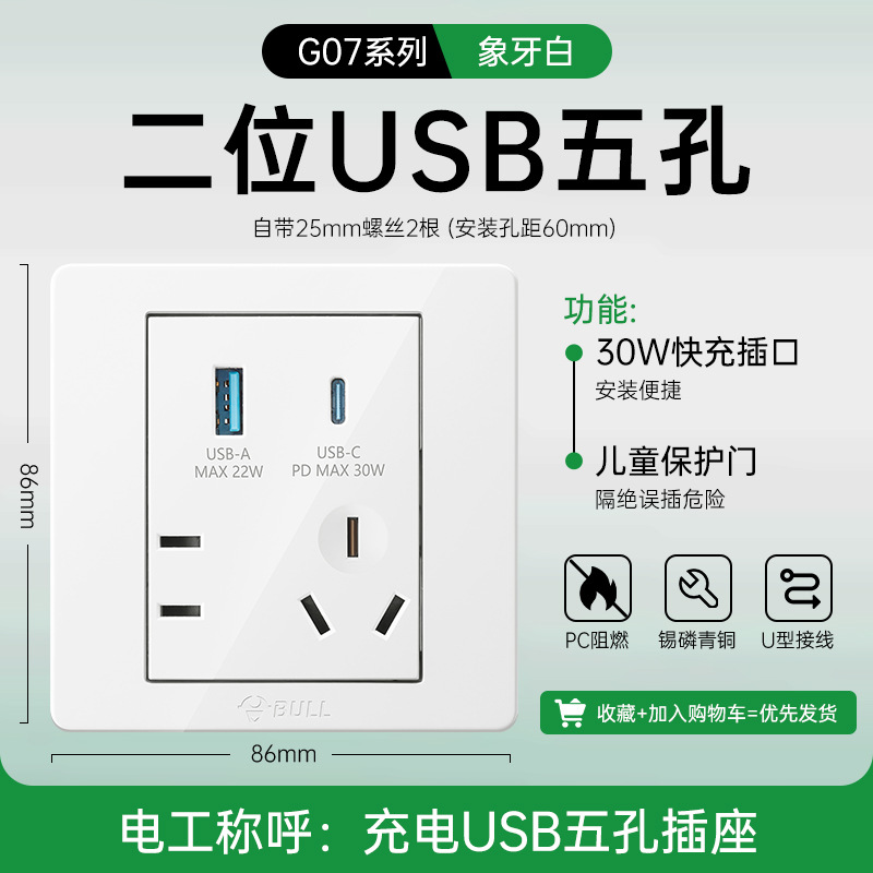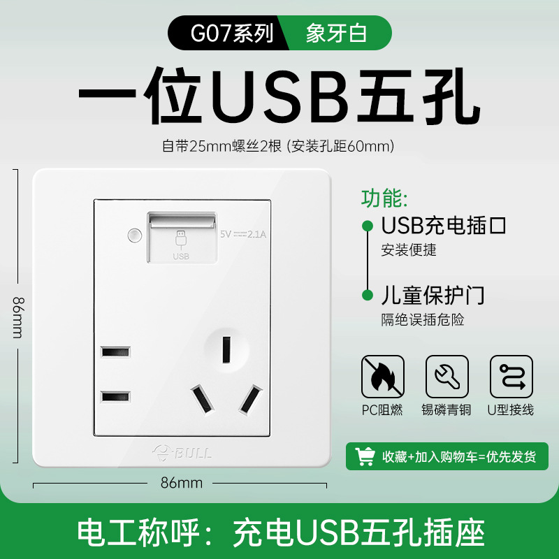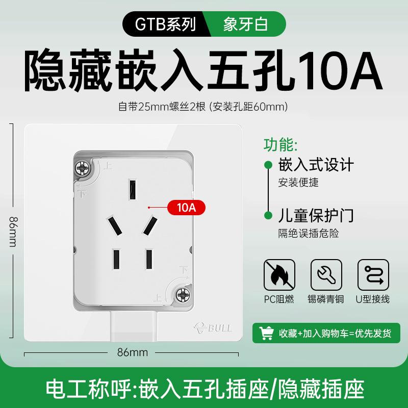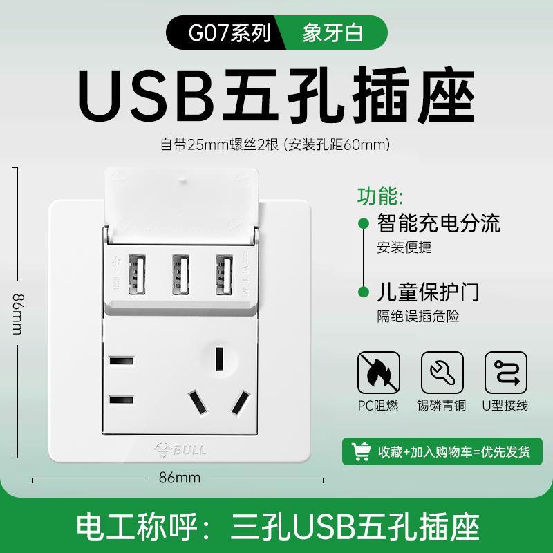 公牛开关插座面板86型暗装五孔家用电源5孔开关插坐86墙壁开关座