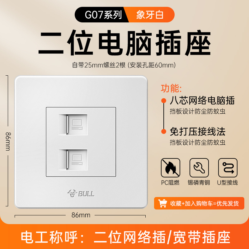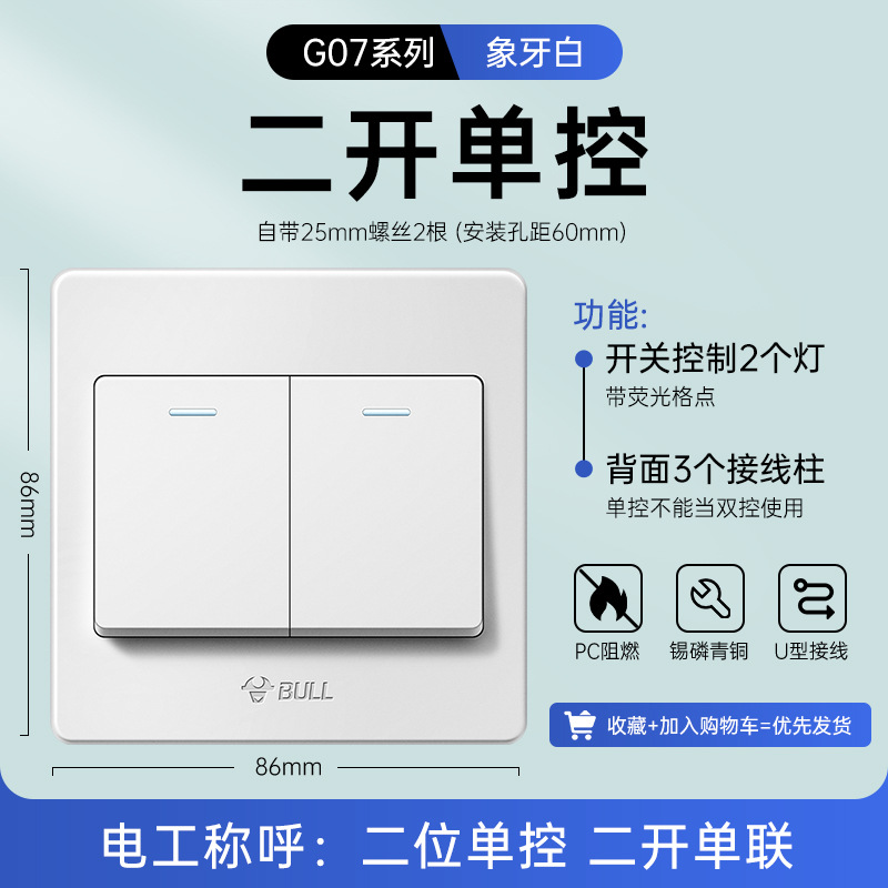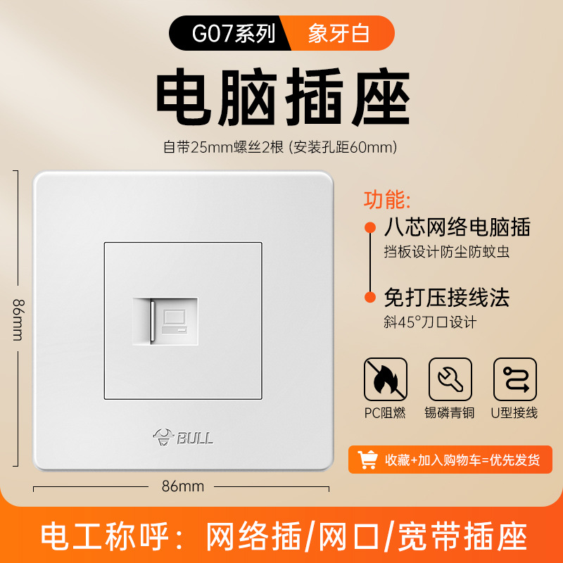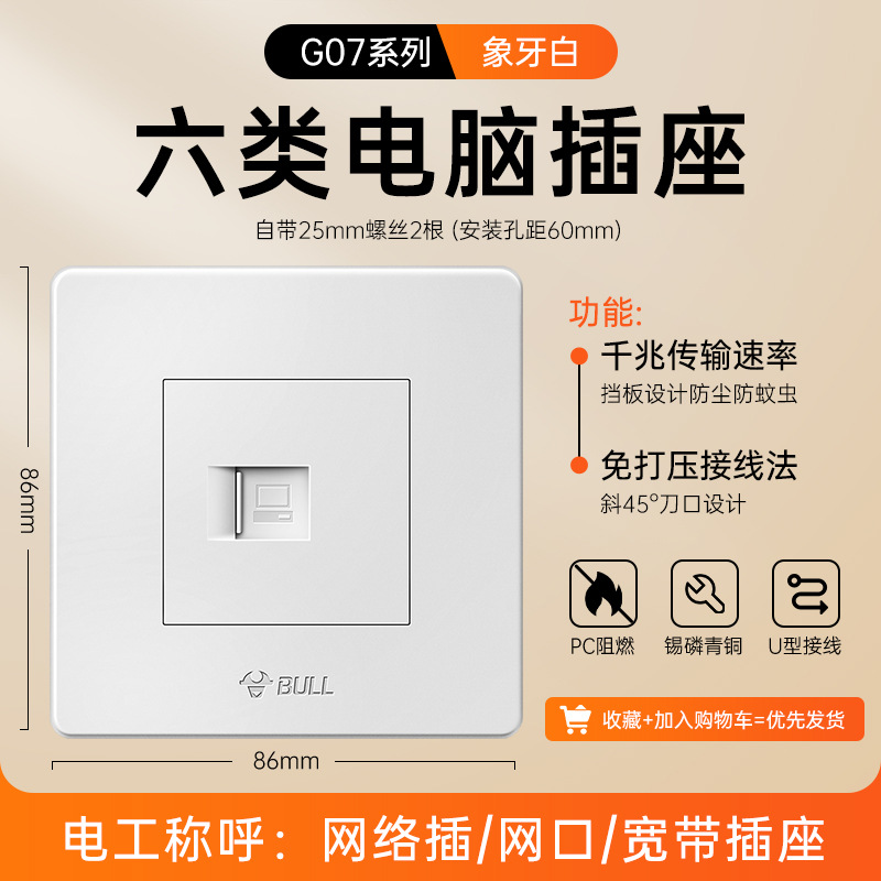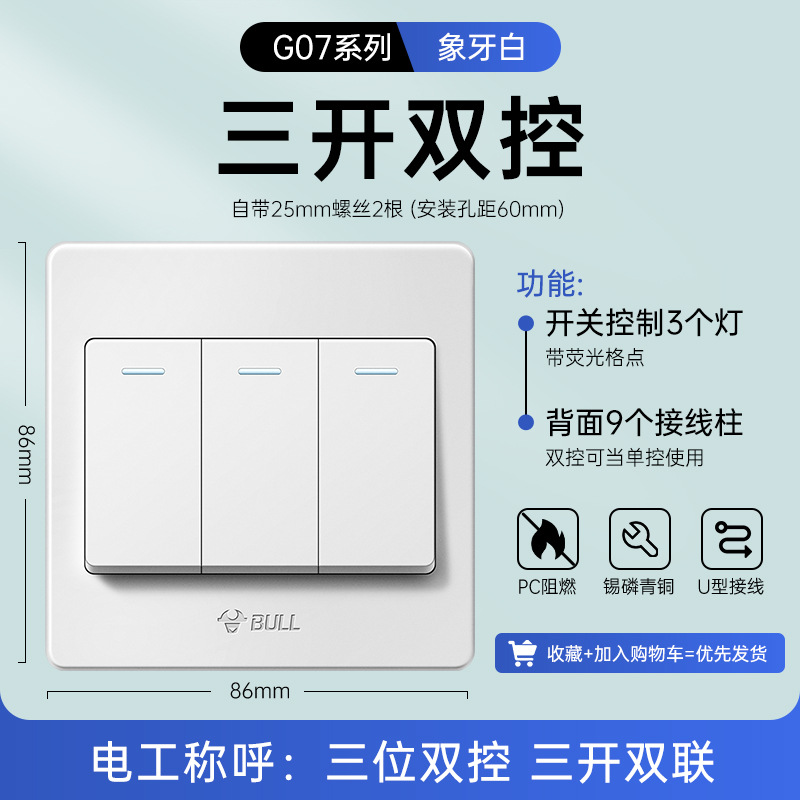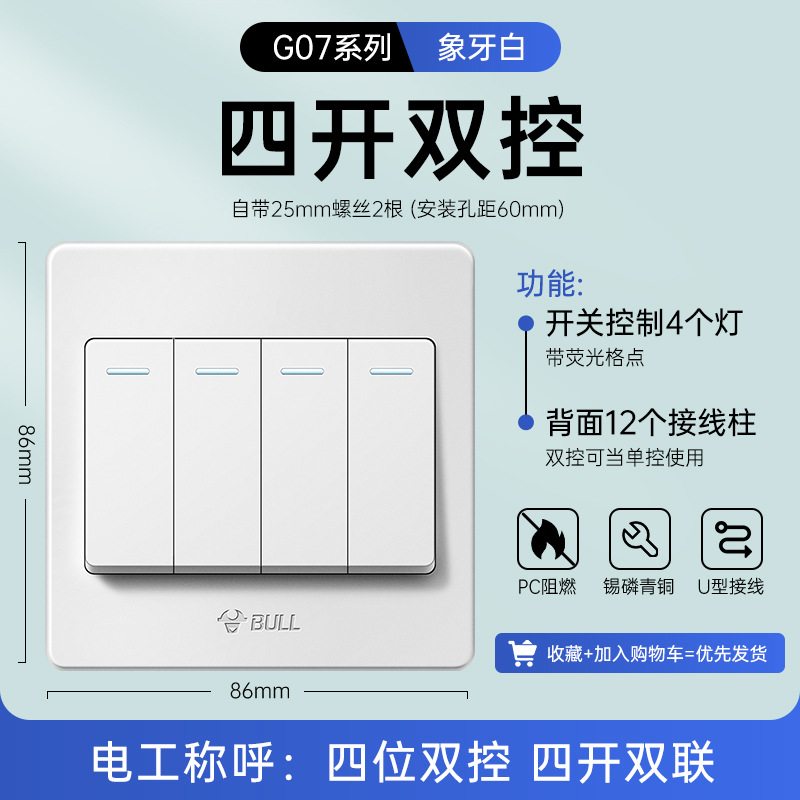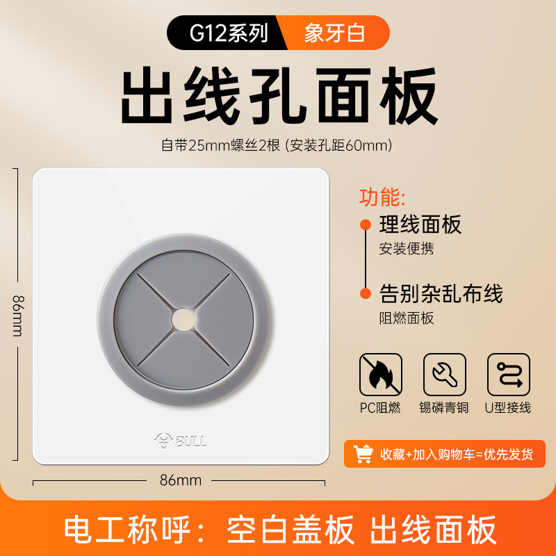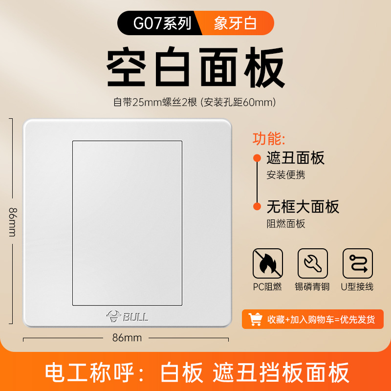 公牛开关插座面板86型暗装五孔家用电源5孔开关插坐86墙壁开关座