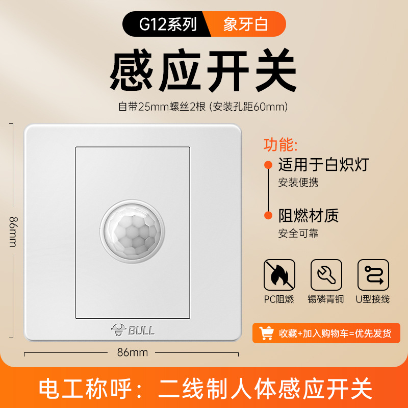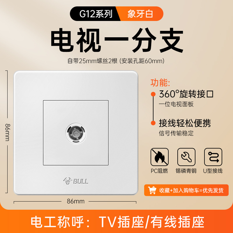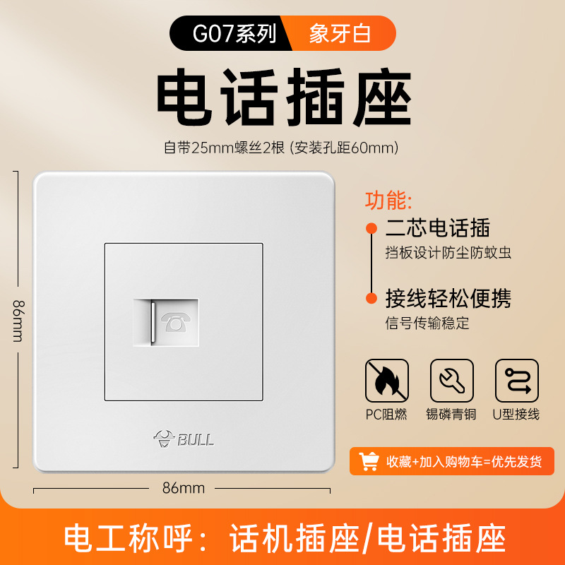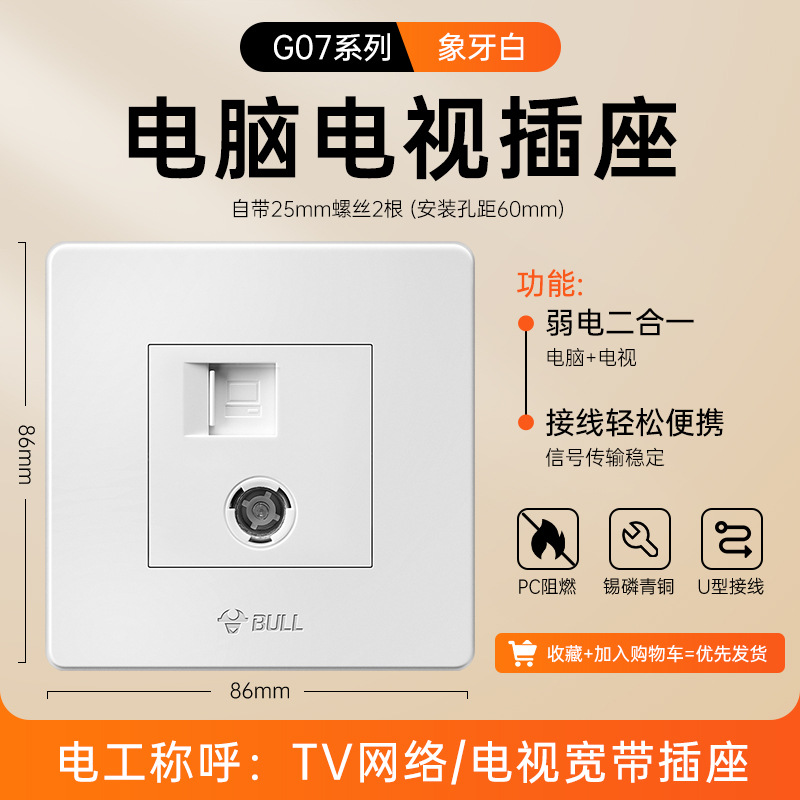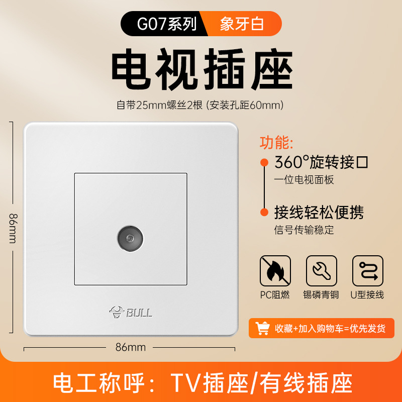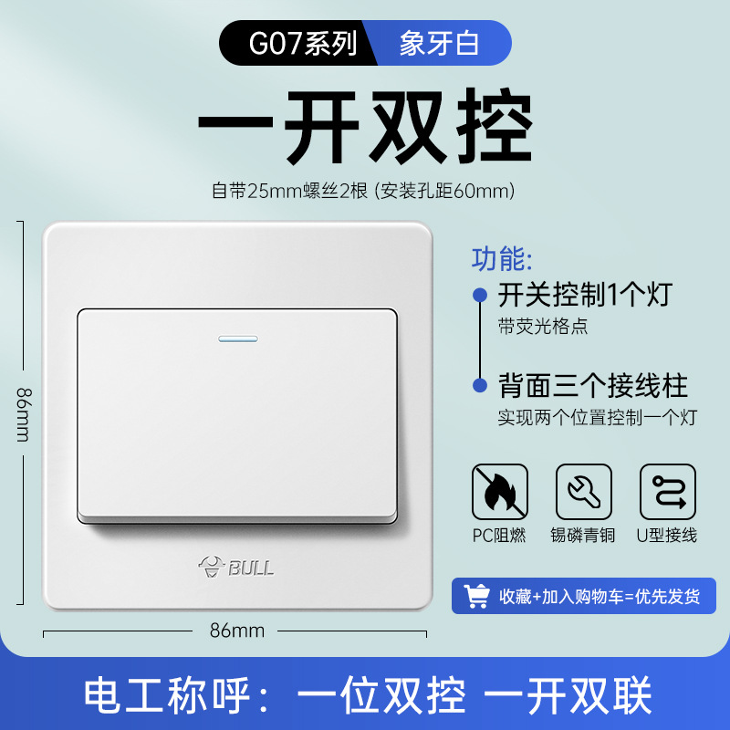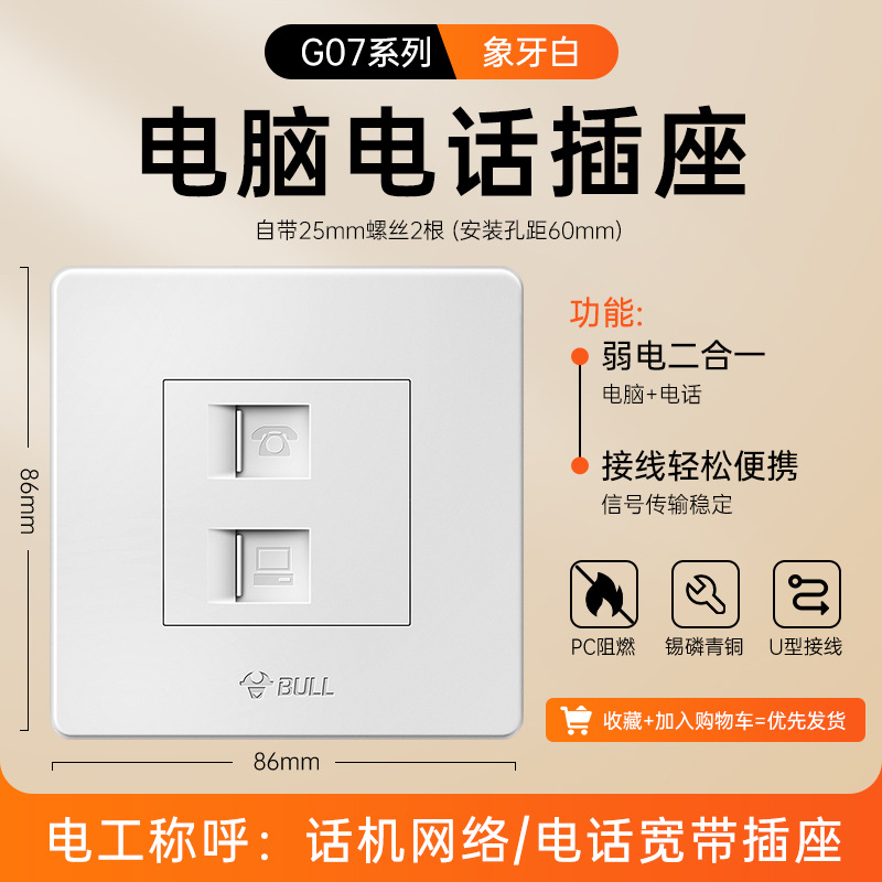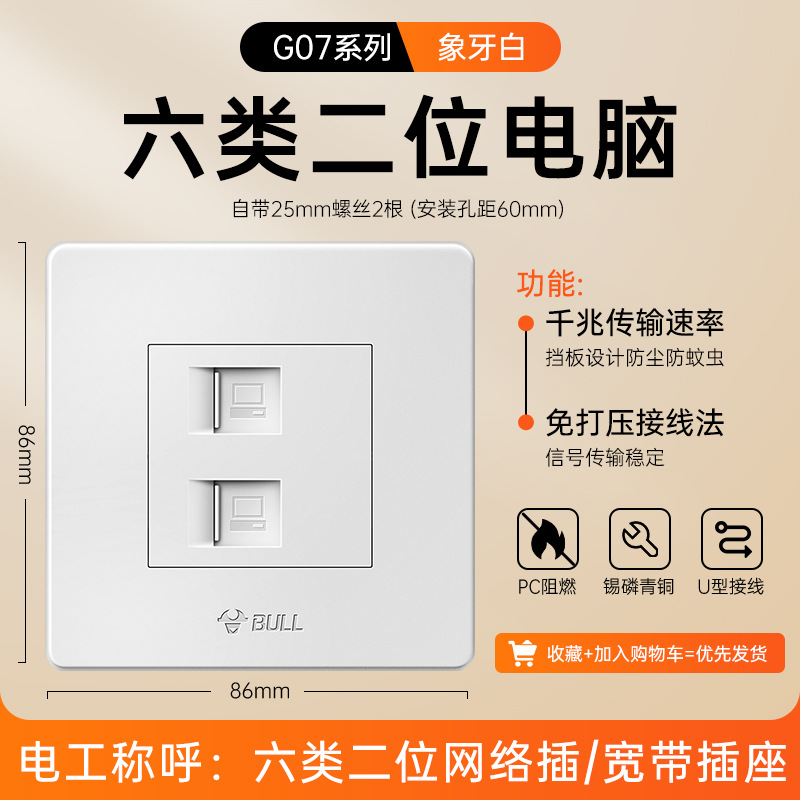 公牛开关插座面板86型暗装五孔家用电源5孔开关插坐86墙壁开关座