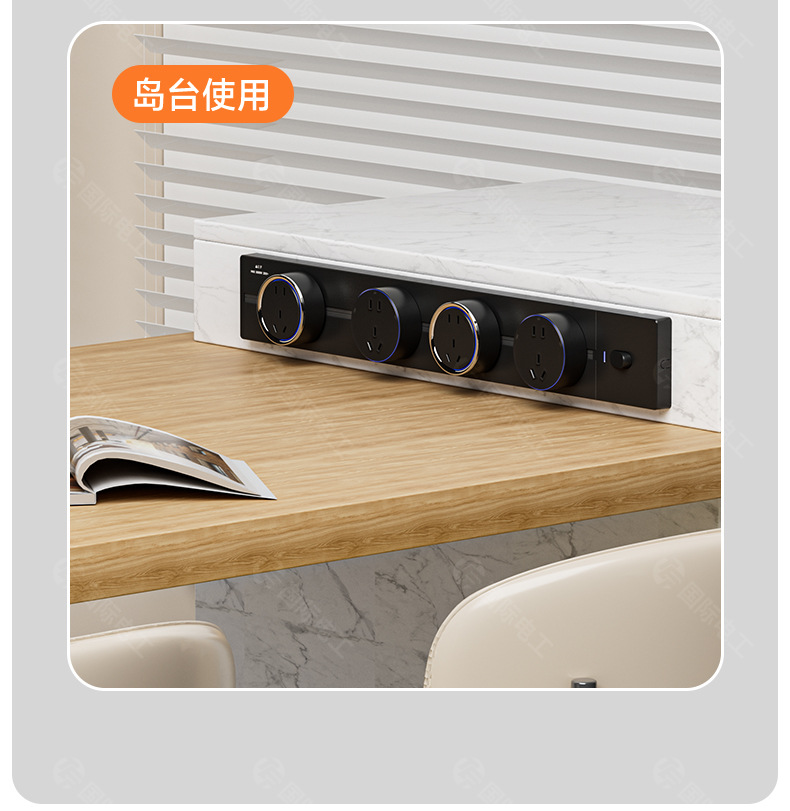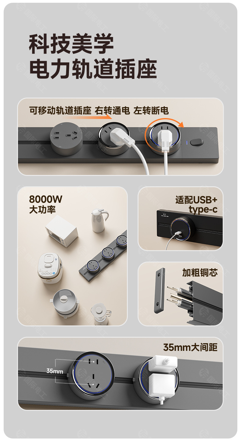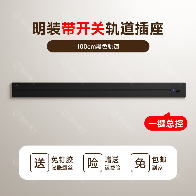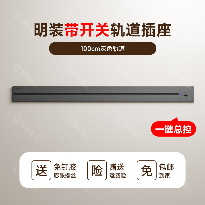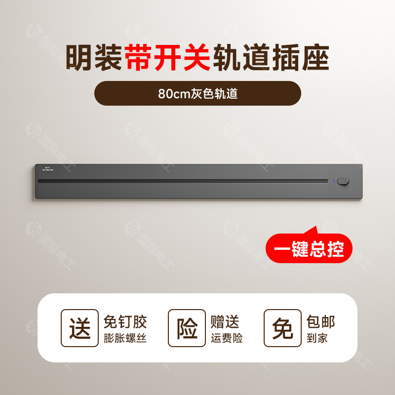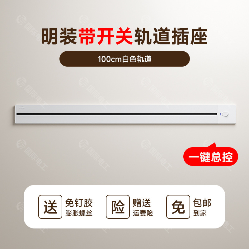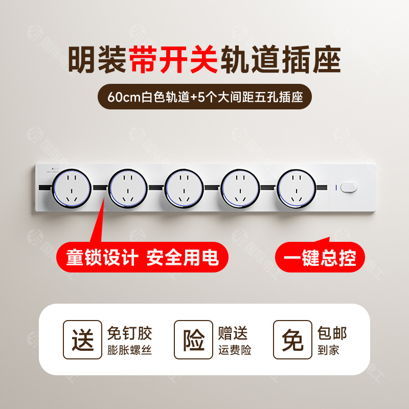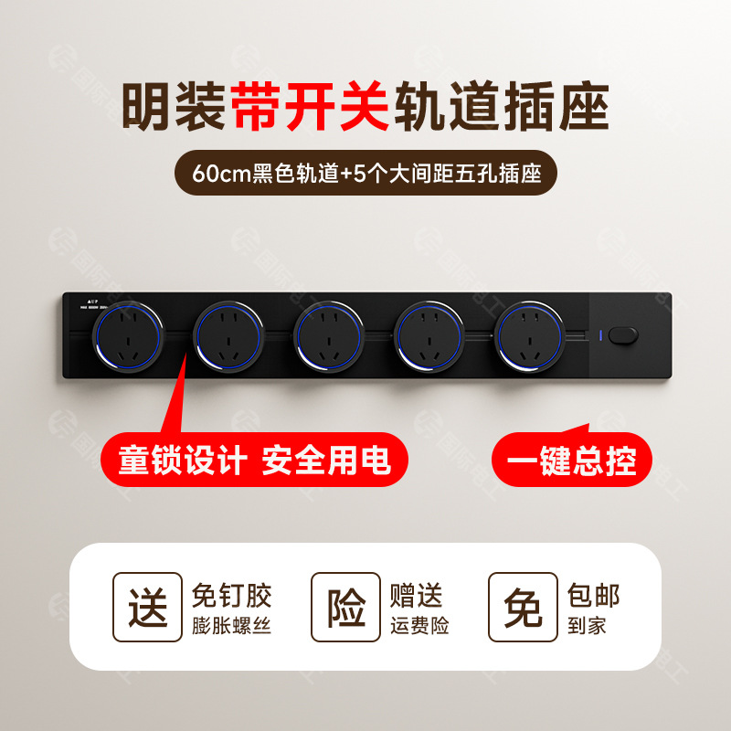 TEP国际电工明装轨道插座一键断电可移动排插橱柜大间距五孔插座