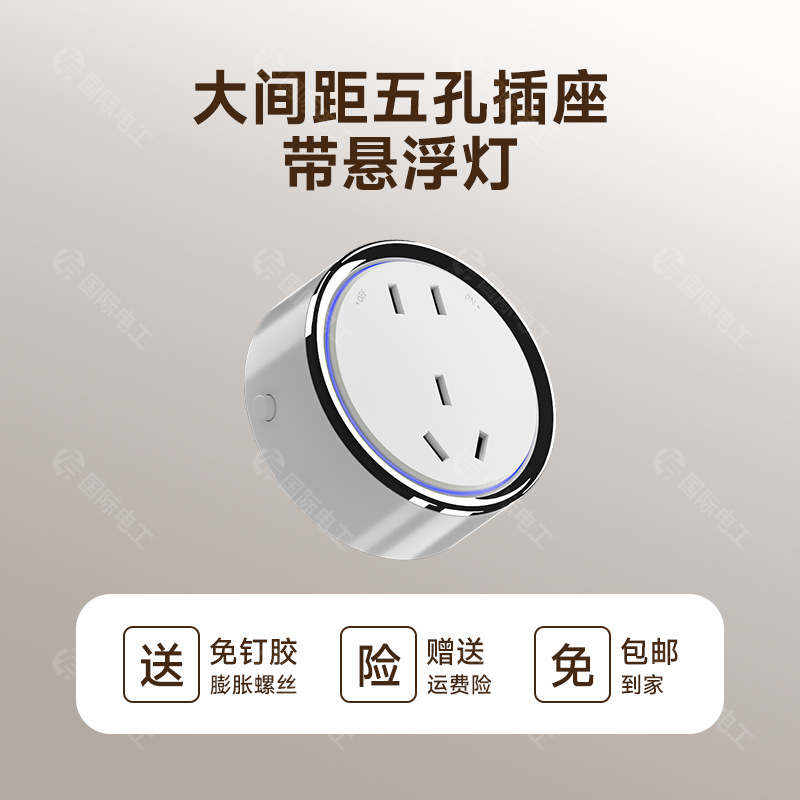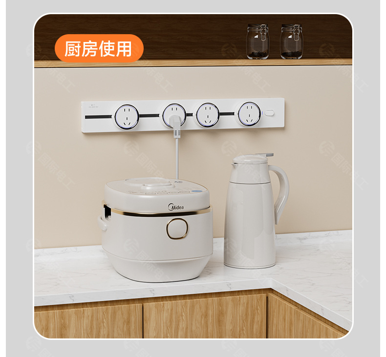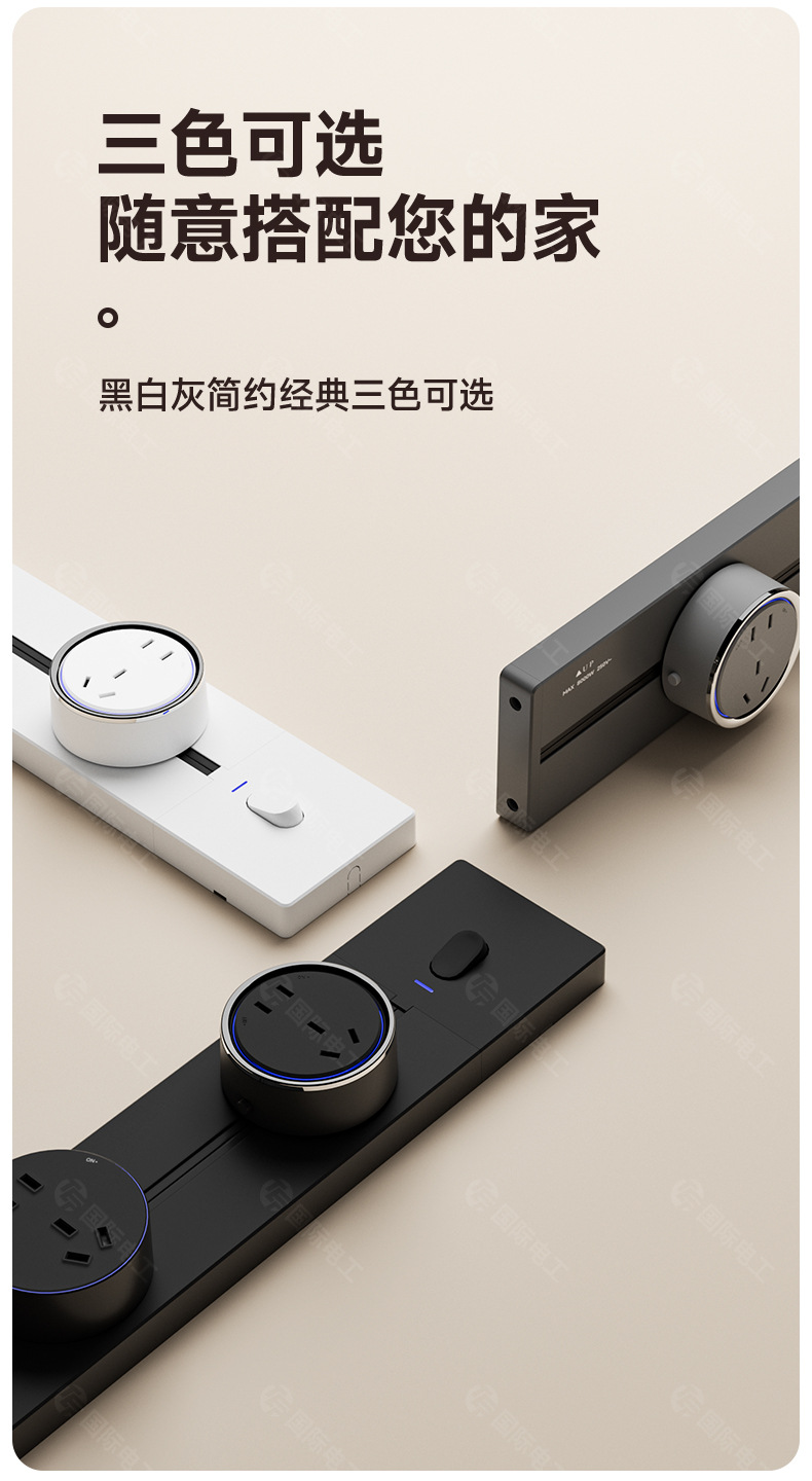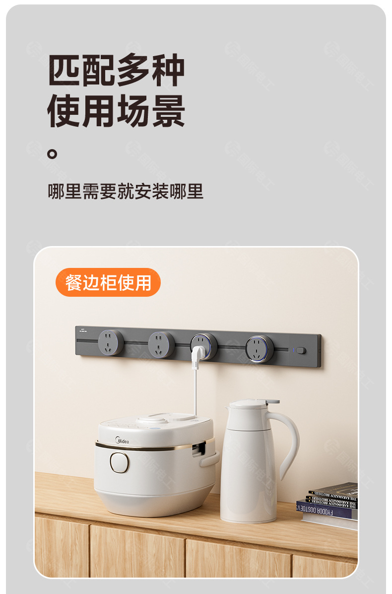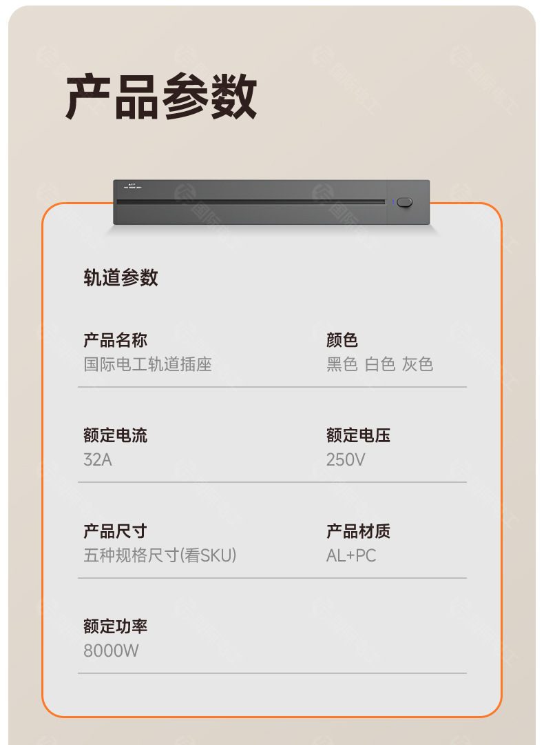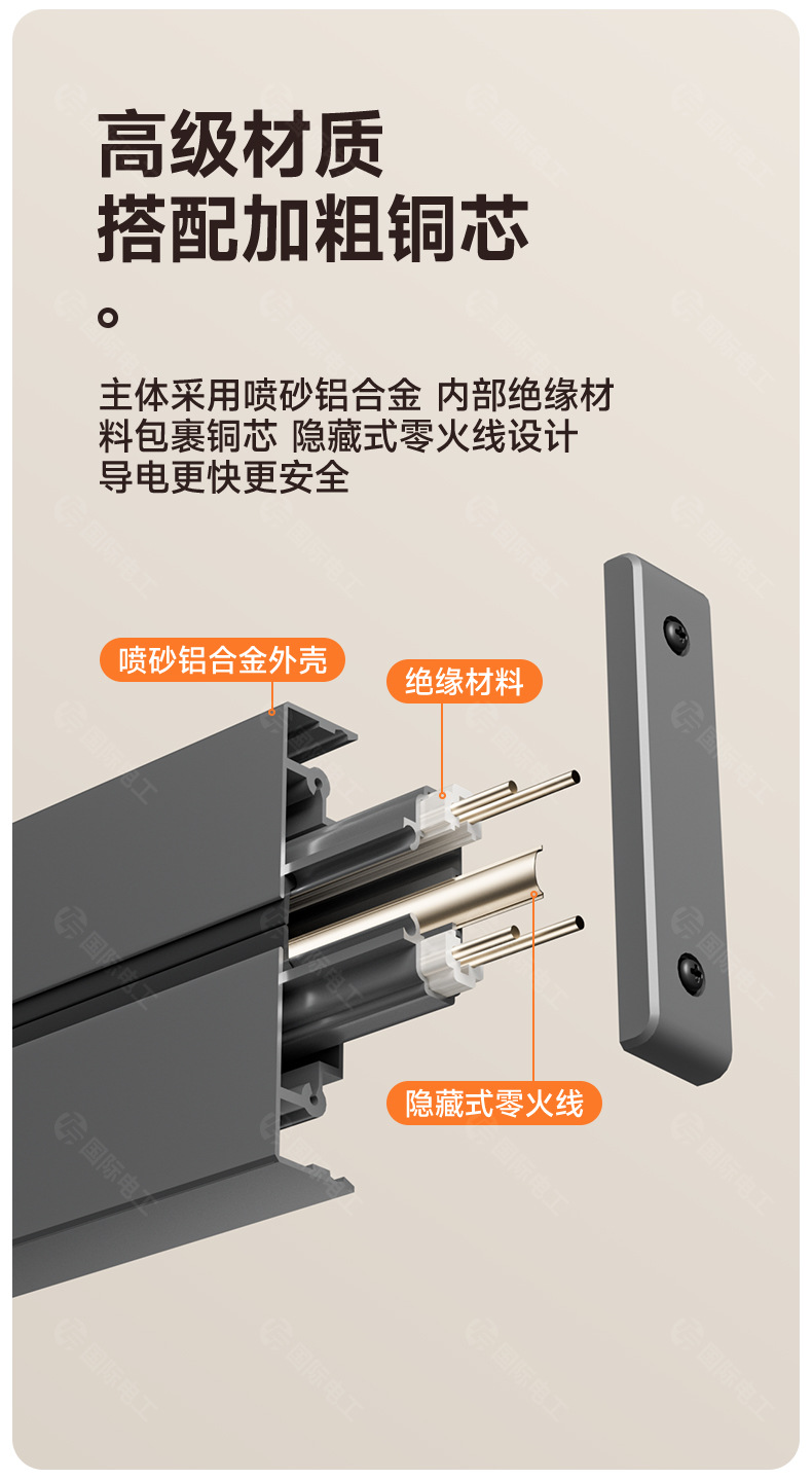 TEP国际电工明装轨道插座一键断电可移动排插橱柜大间距五孔插座