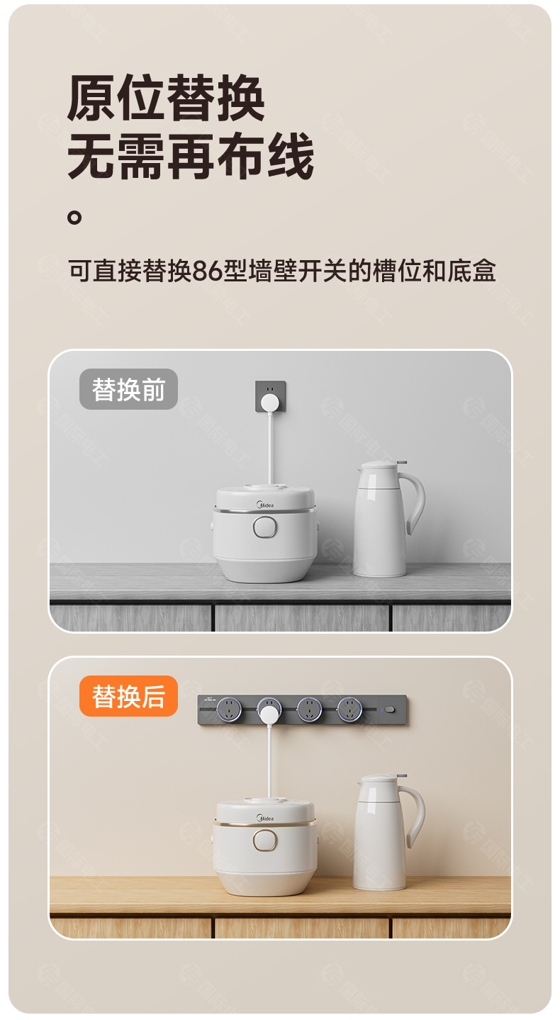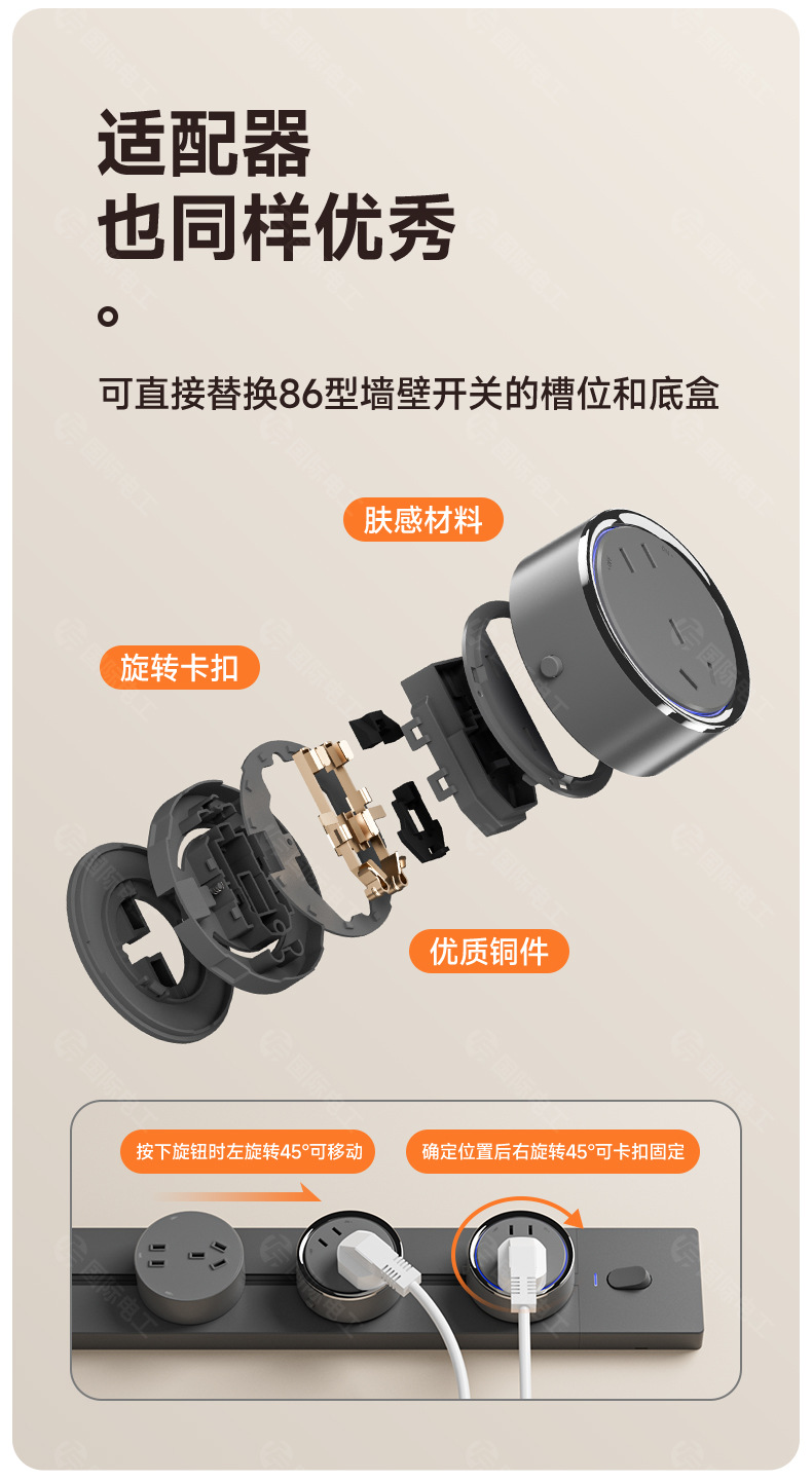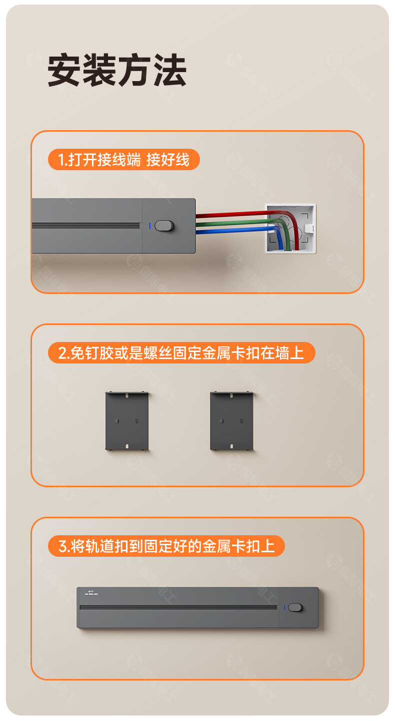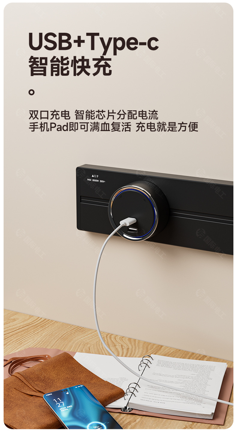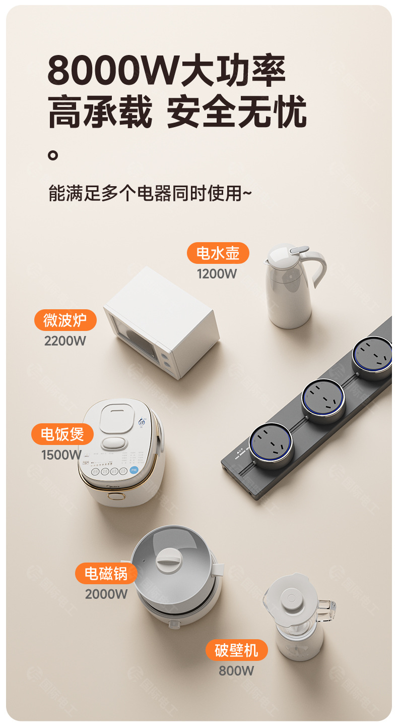 TEP国际电工明装轨道插座一键断电可移动排插橱柜大间距五孔插座