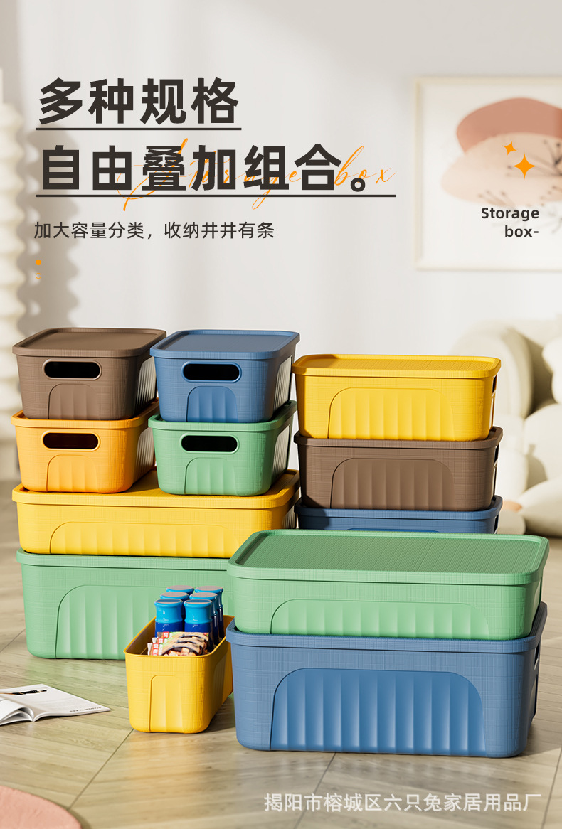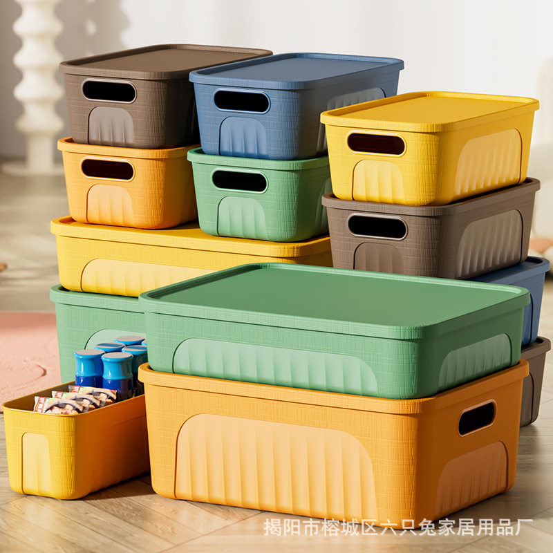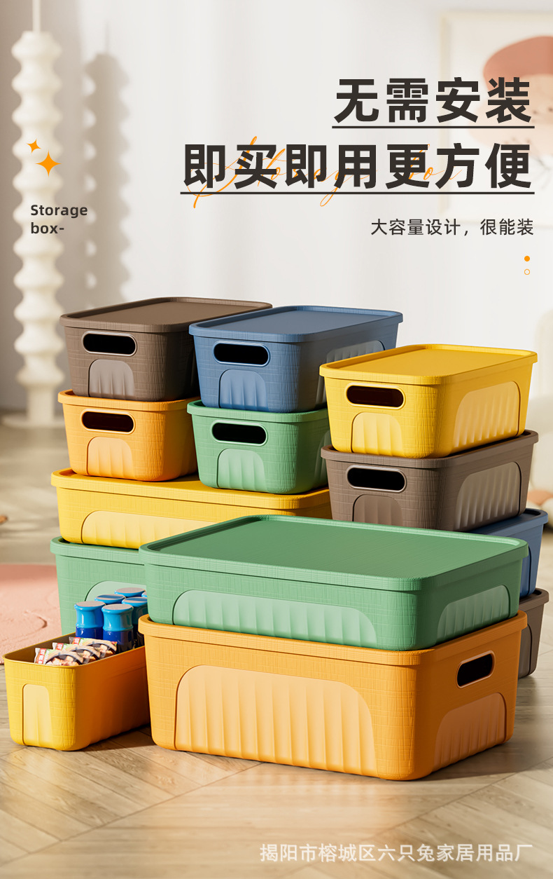 收纳盒桌面零食整理箱内衣裤收纳箱家用储物盒加厚带盖玩具杂物箱