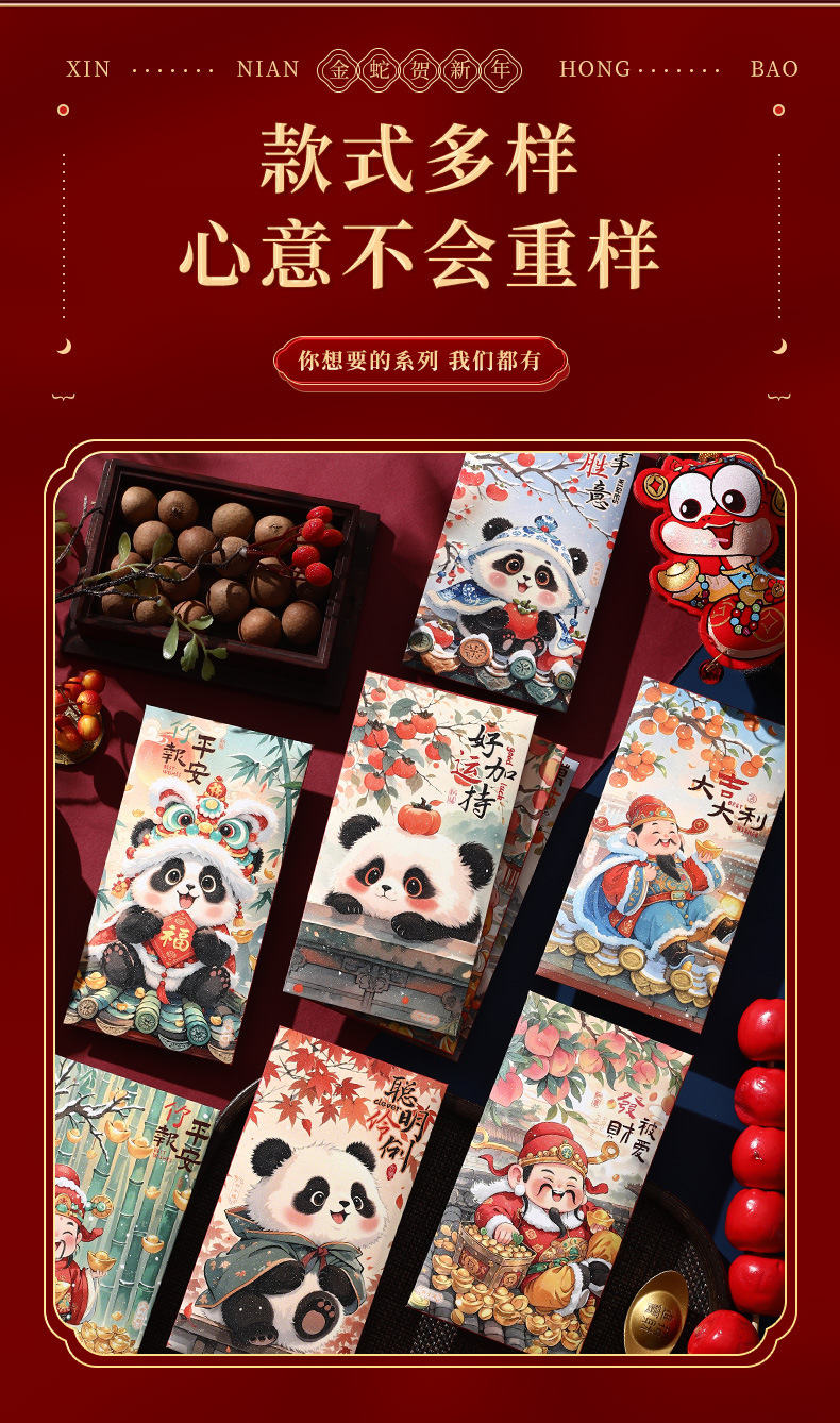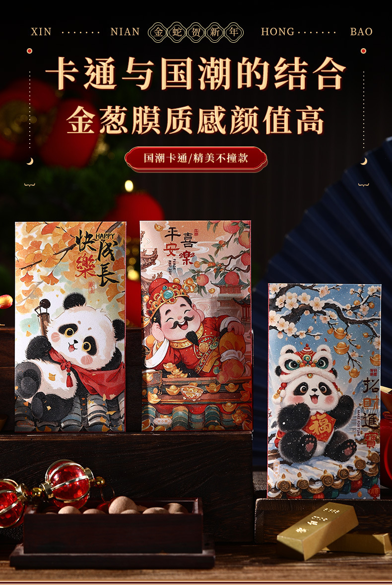 熊猫红包2025蛇年压岁钱可爱通用款利是封创意卡通新款过年春节