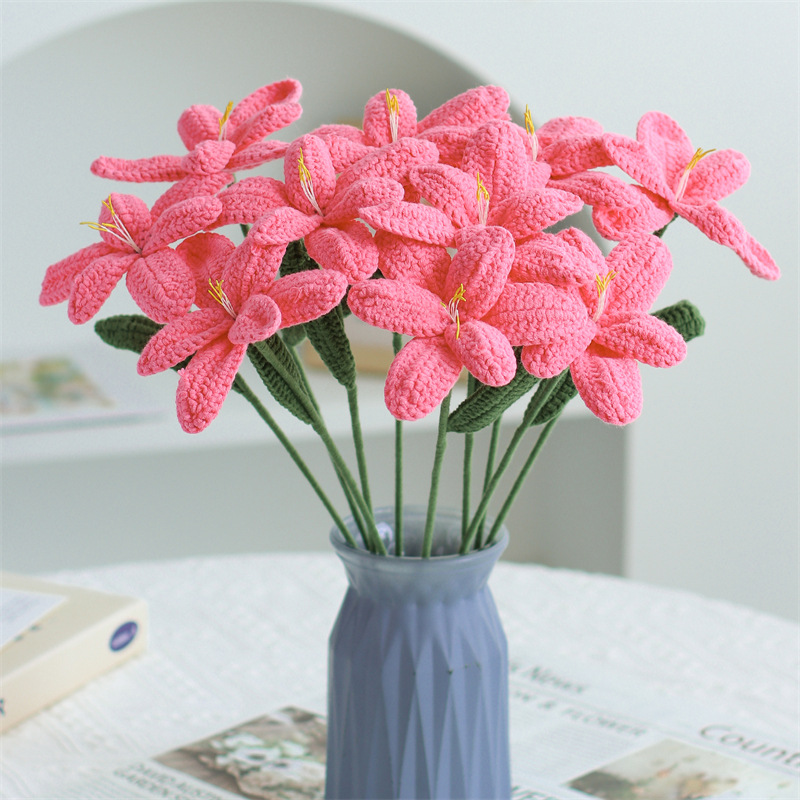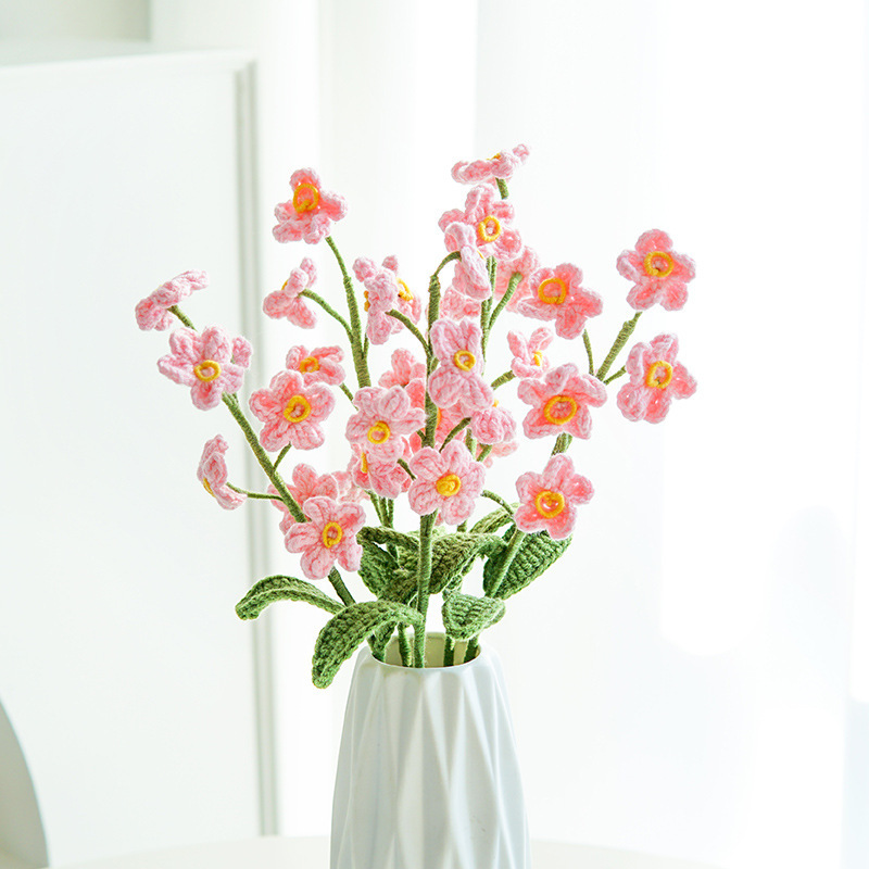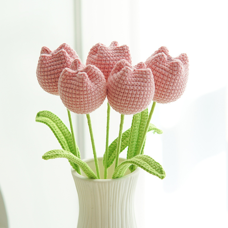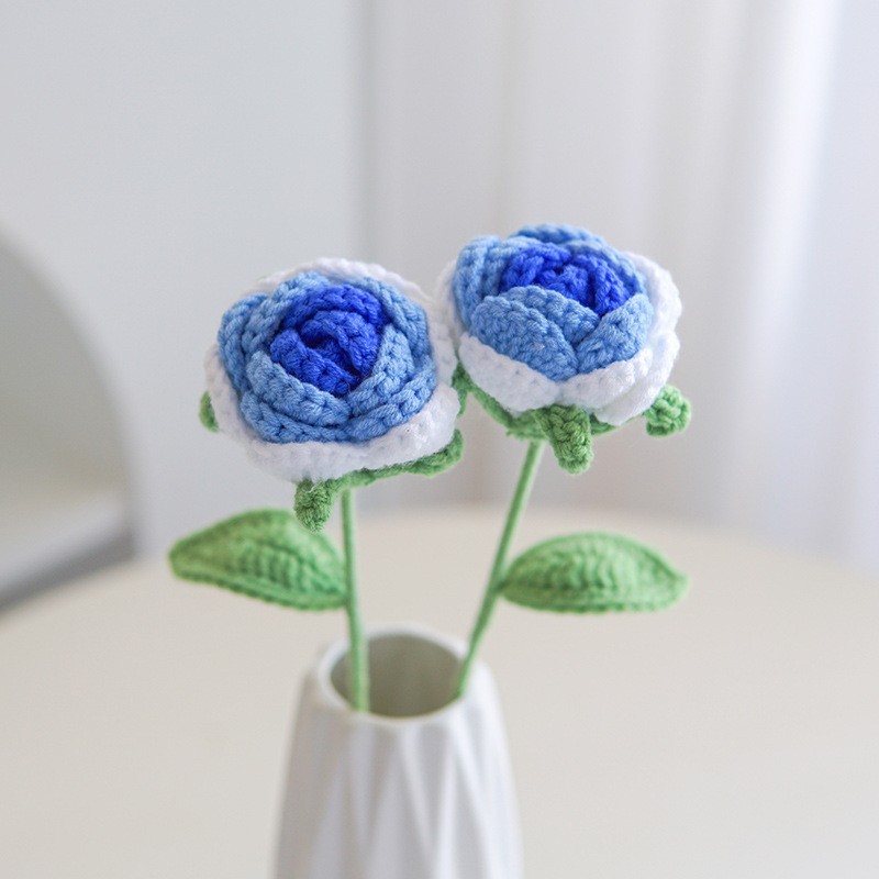 亚马逊手工编织成品花束牛奶棉玫瑰仿真花毛线针织假花教师节花束