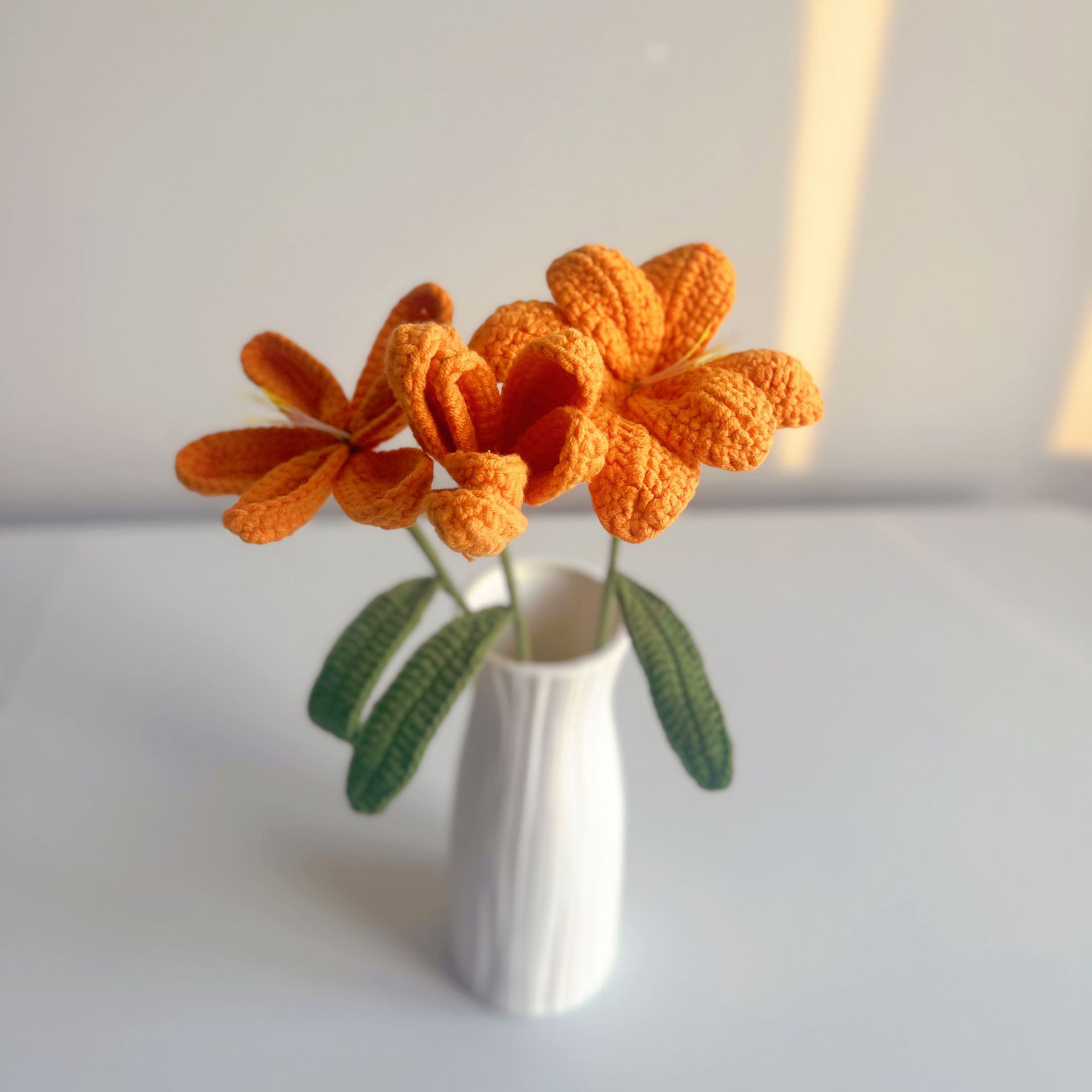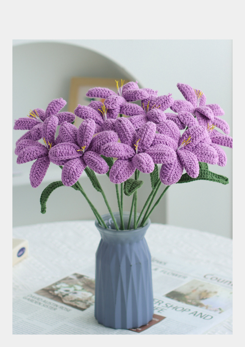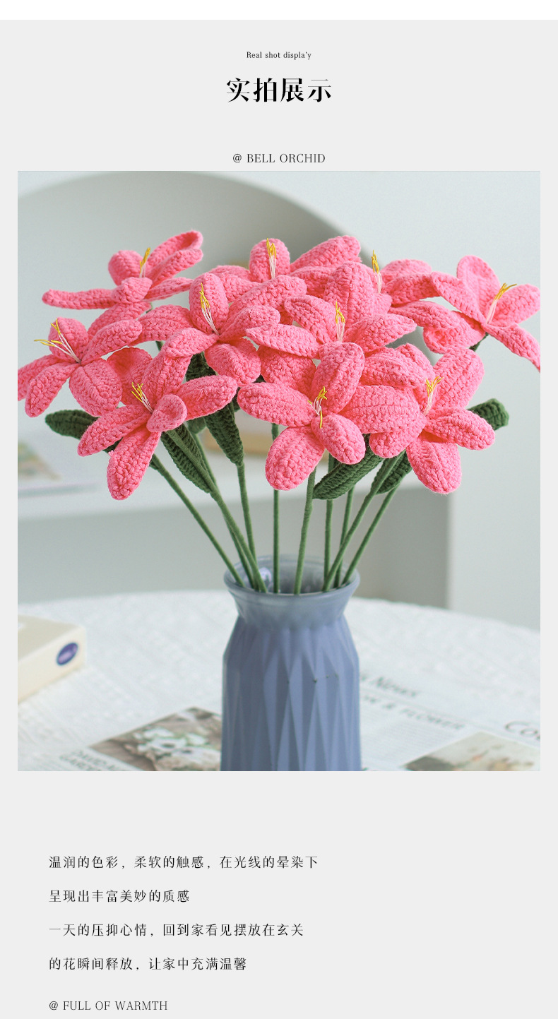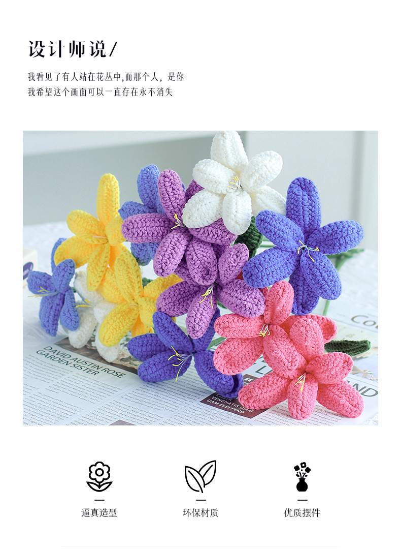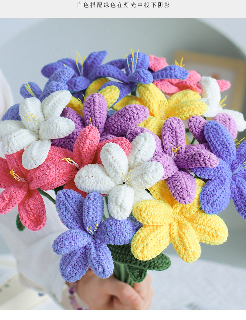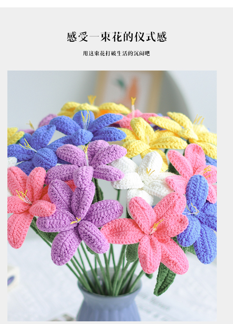 钩织郁金香仿真花成品手工编织花餐桌摆设送情侣闺蜜节日礼物花束