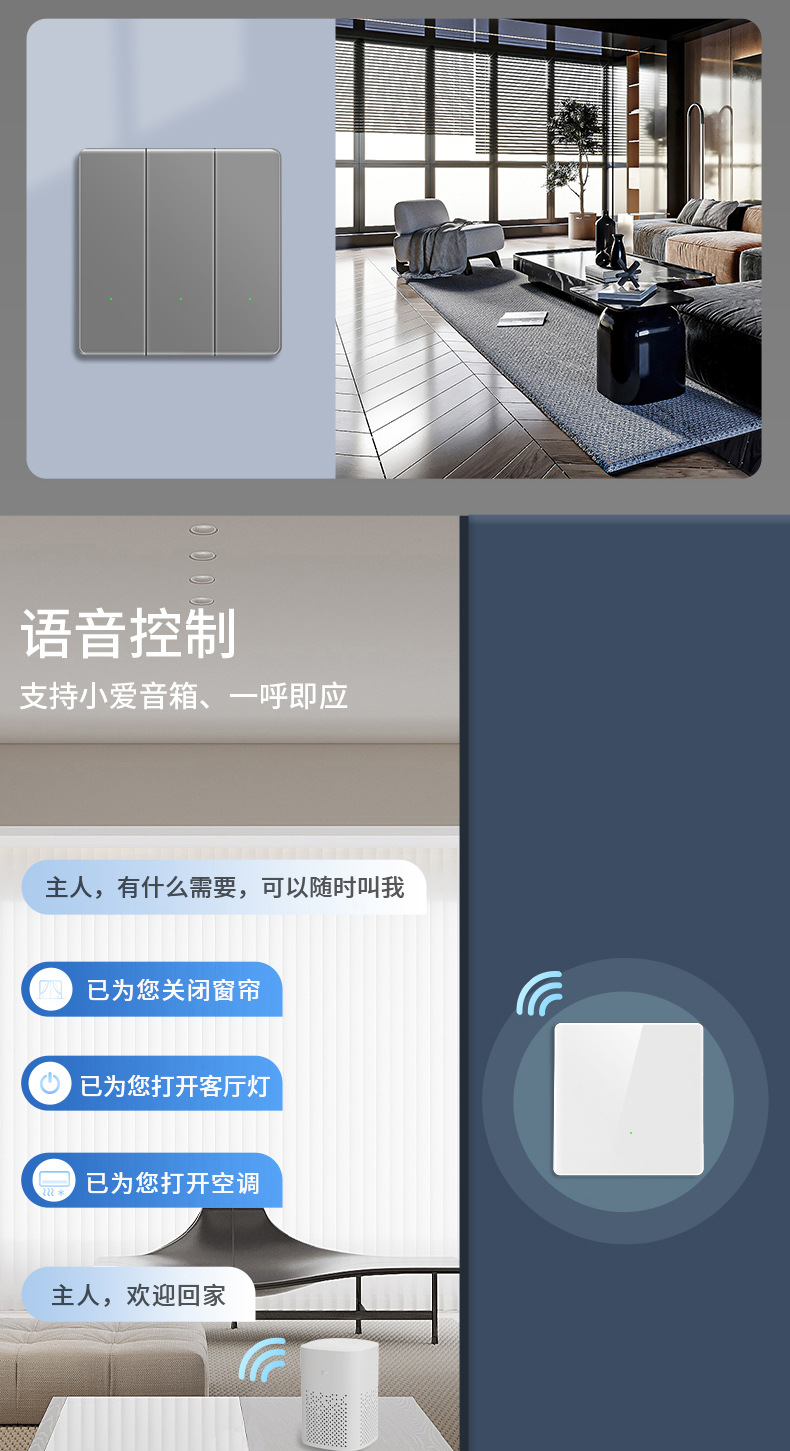 超薄智能开关已接入米家APP支持小爱同学控制无线远程单零火厂家