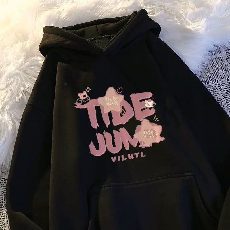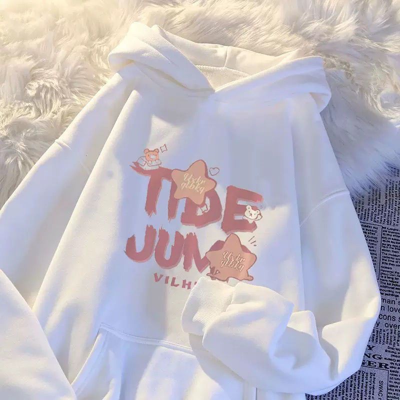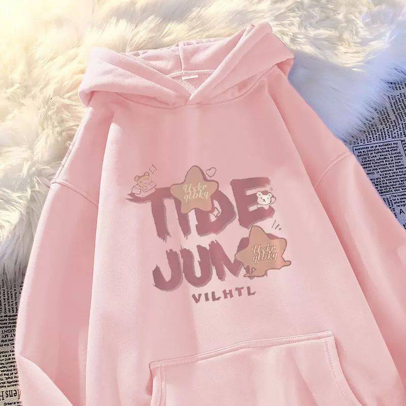 首单直降2024新款秋冬季中大童女童儿童字母印花连帽加绒卫衣上衣